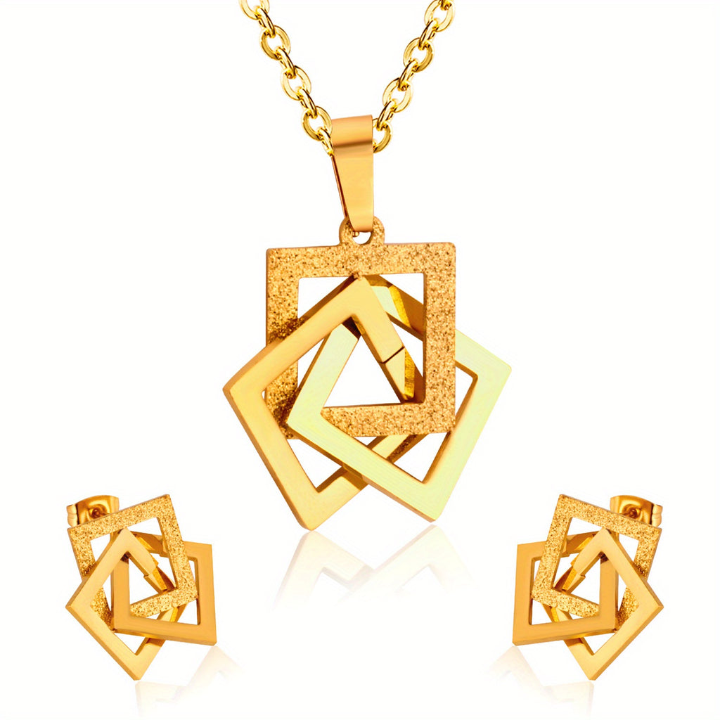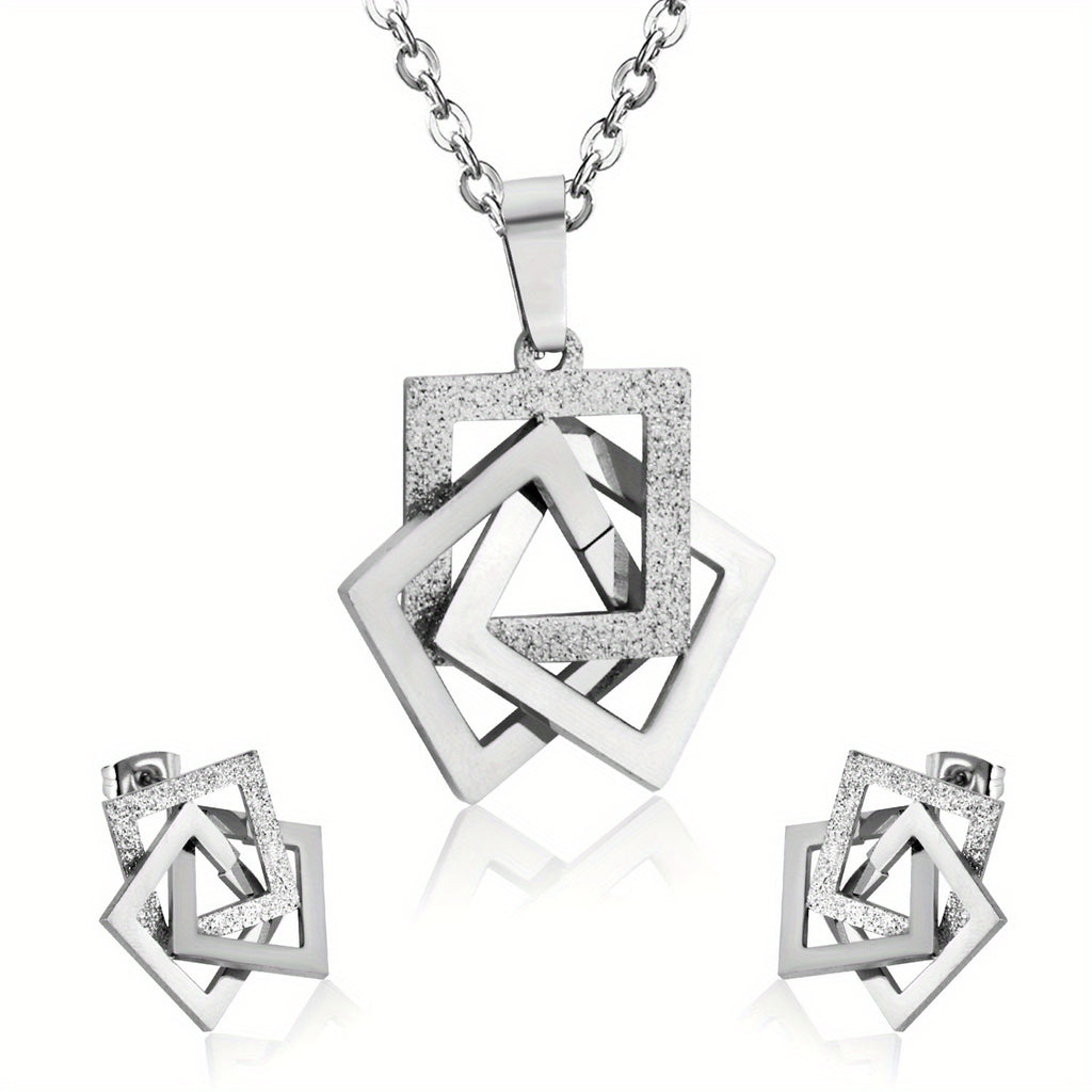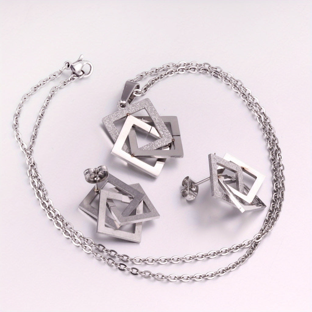 3pcs Stainless Steel Square Layered Necklace Earrings Set, Elegant and Stylish Minimalist Jewelry for Banquet, Ceremony, Party, Vacation Gift - French Luxury Fashion Accessory for Men and Women