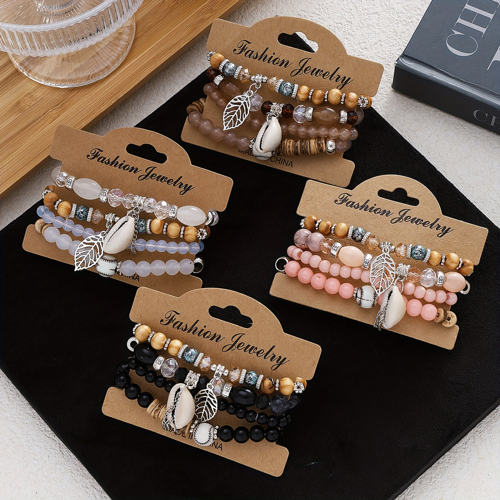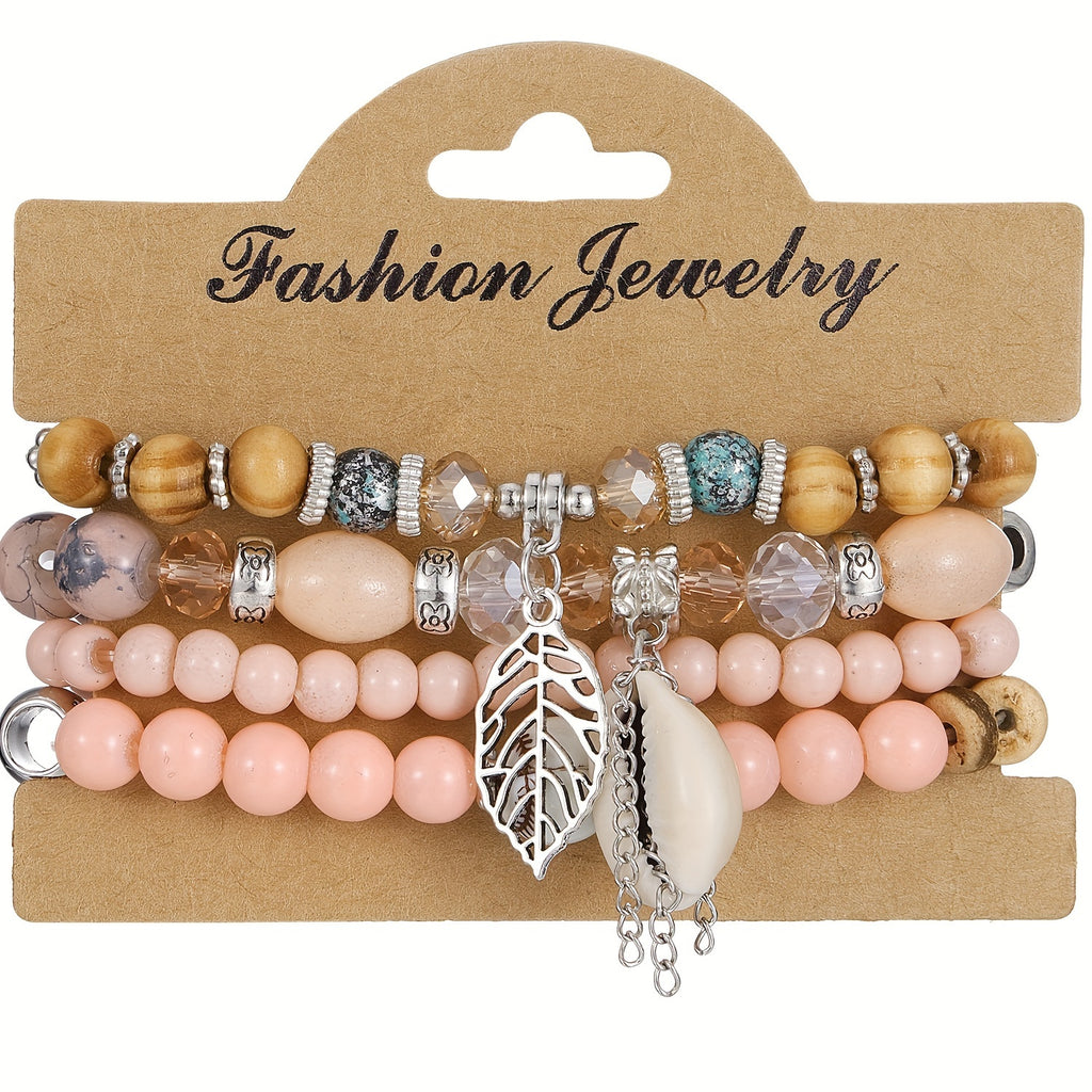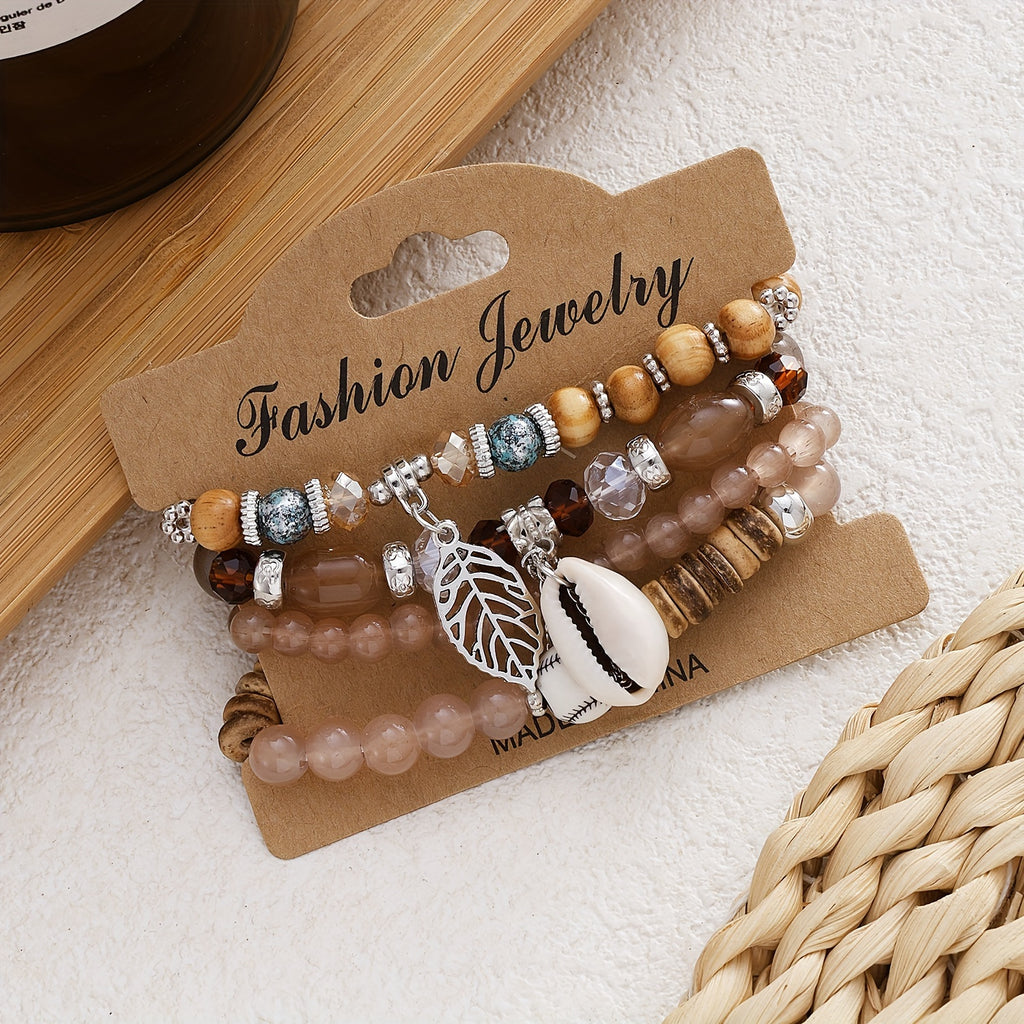 4pcs Conch Coconut Shell Beaded Bracelet Set, Perfect Beach Wedding Accessories for Women in Summer