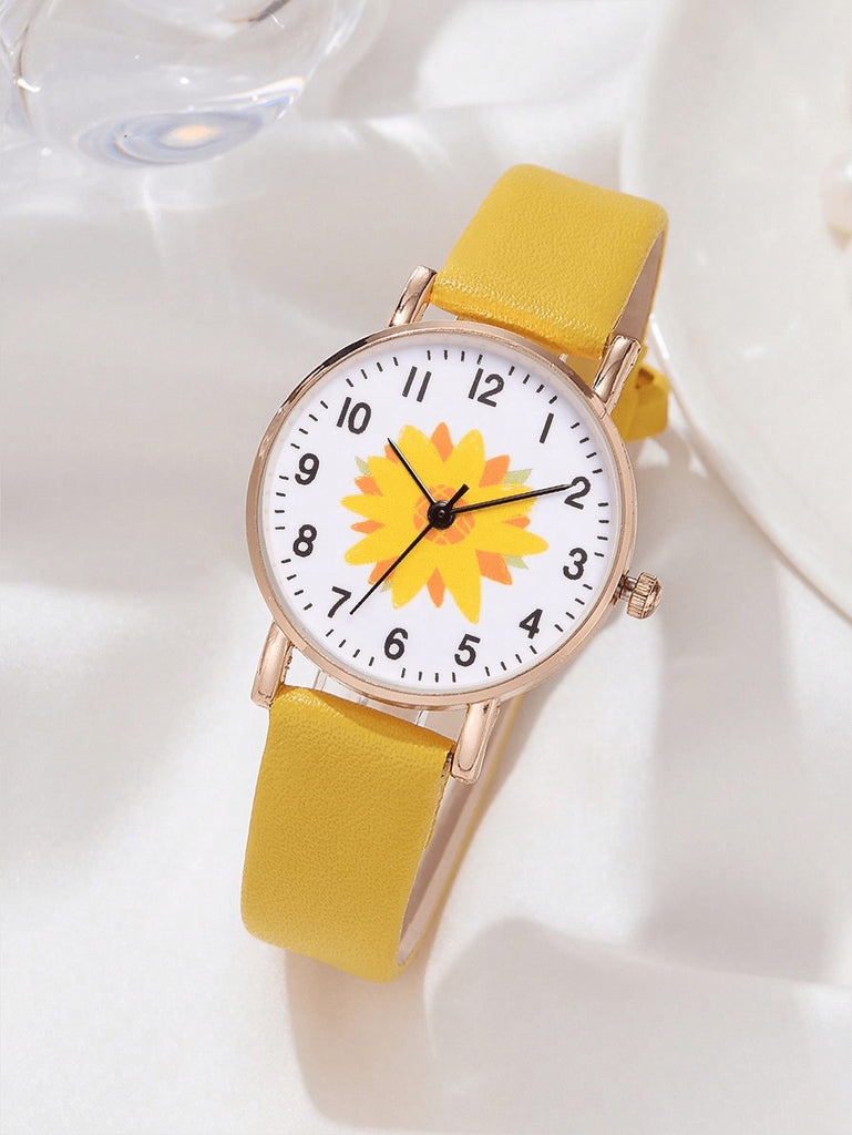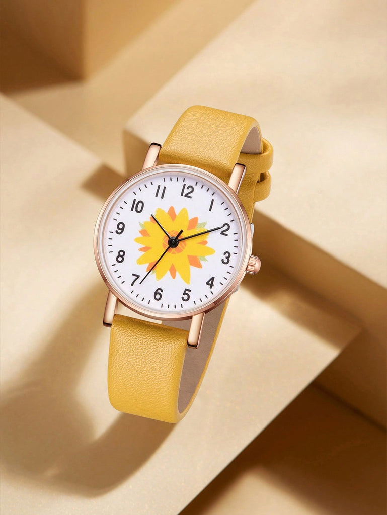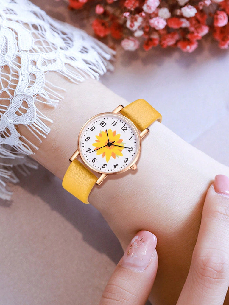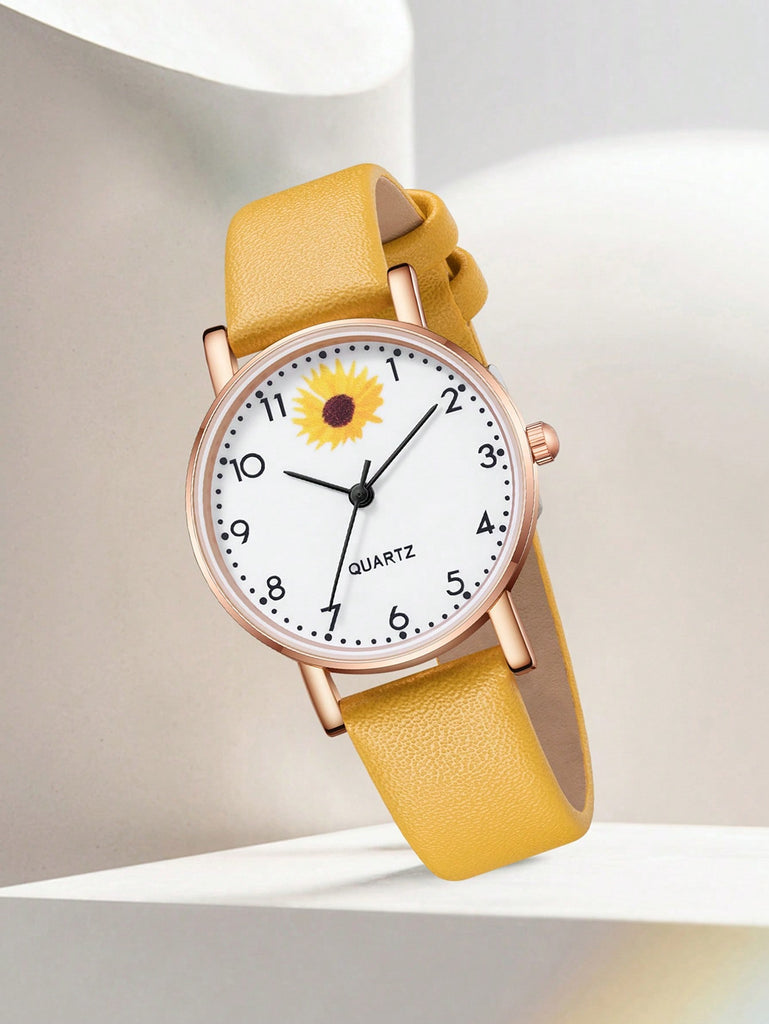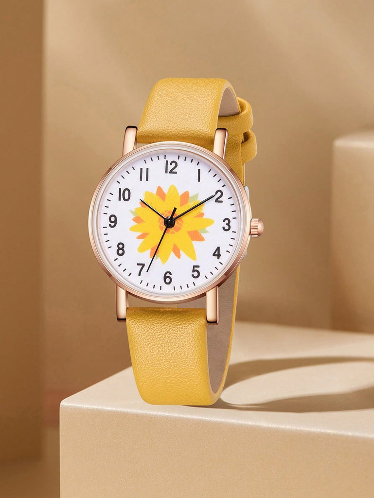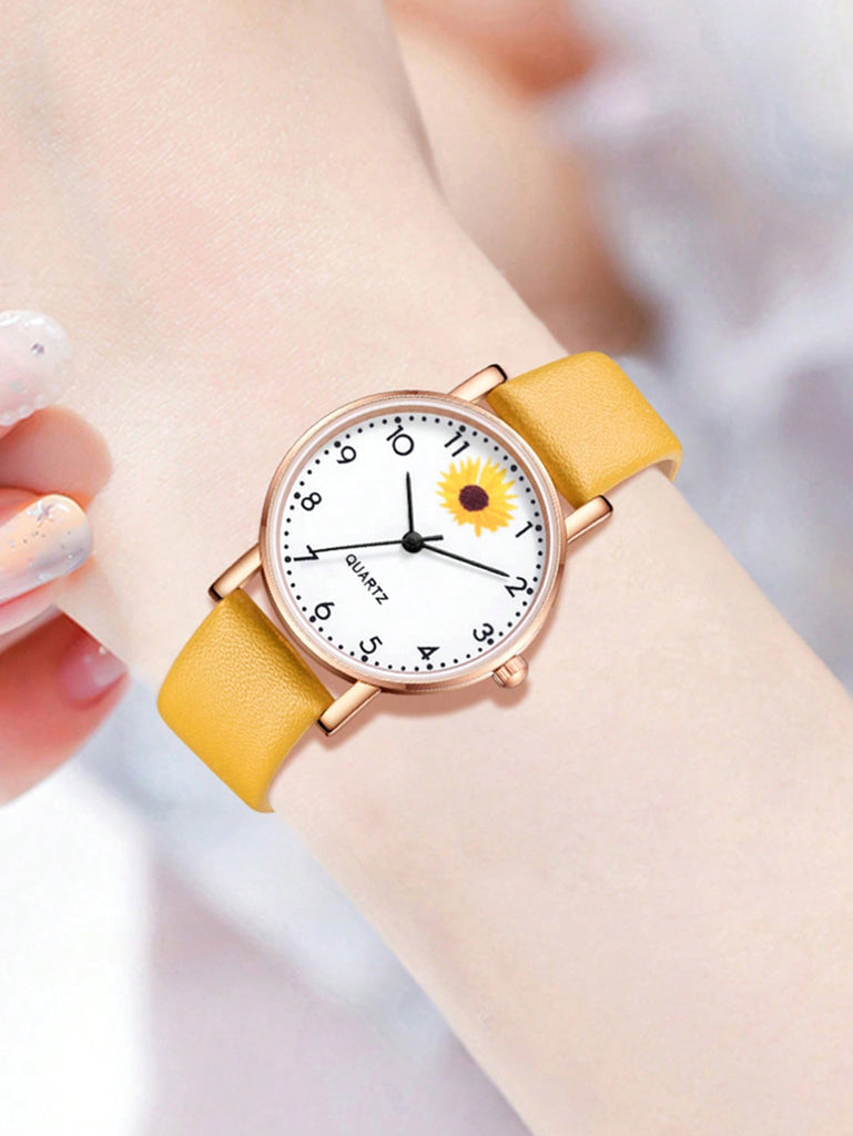 5-Piece Women's White Strap Fashionable And Simple Arabic Numeral Scale Quartz Watch Bracelet Jewelry Set Suitable For Daily Wear Decoration Or Holiday Gifts