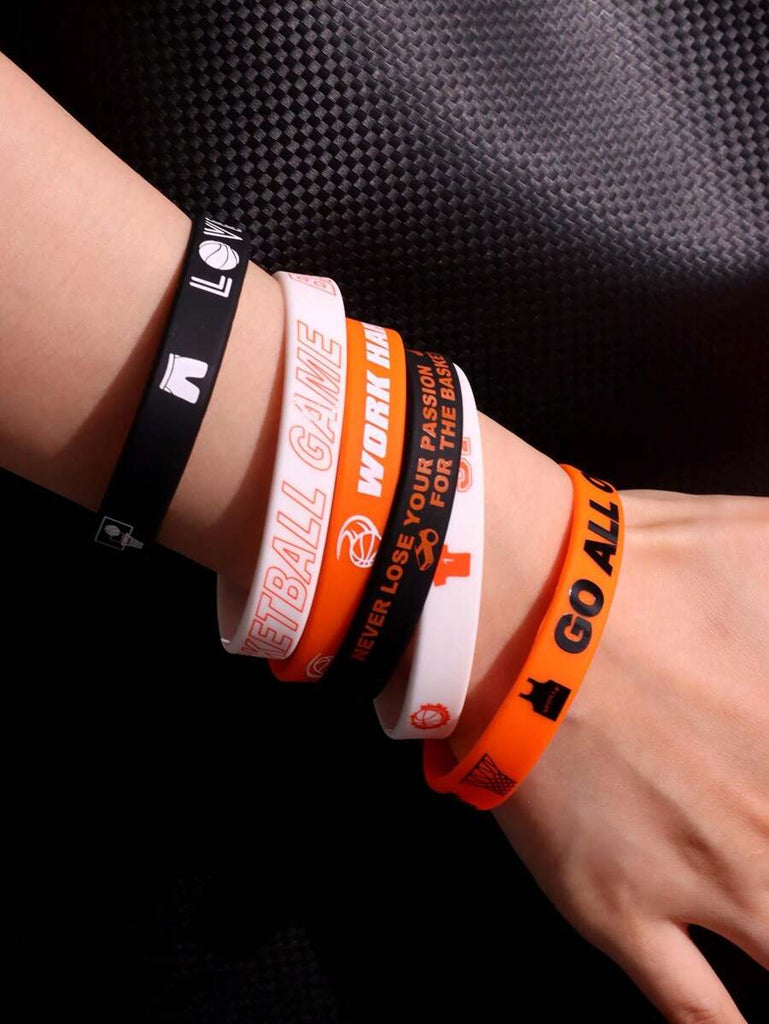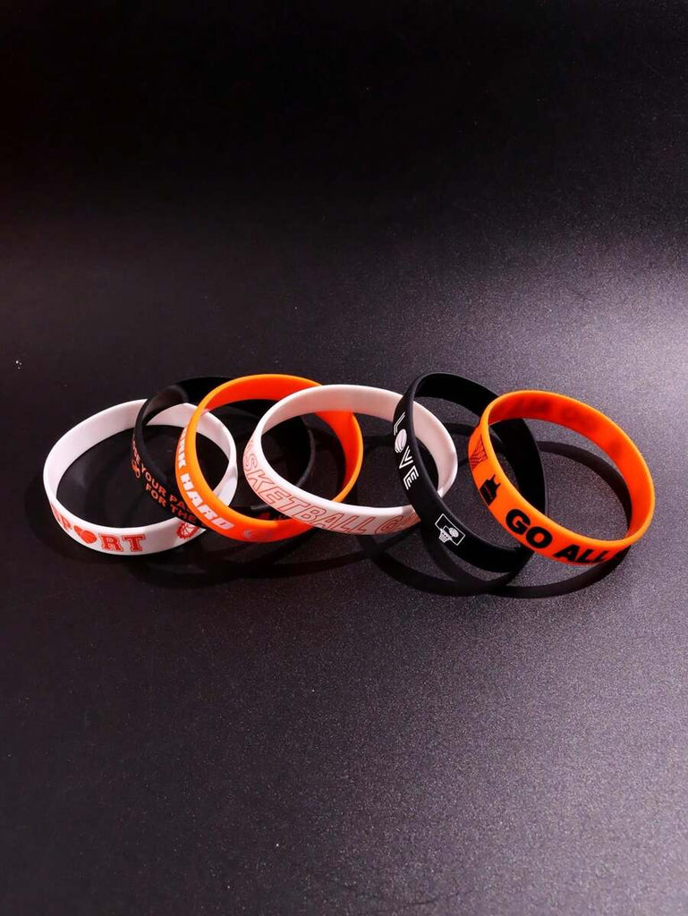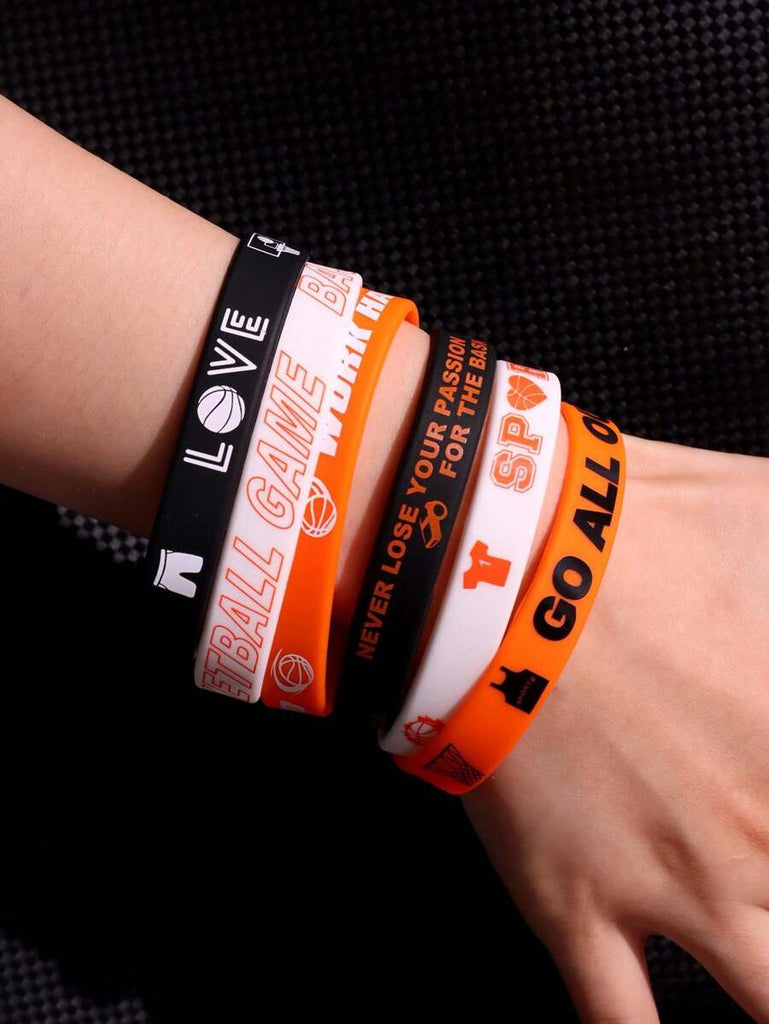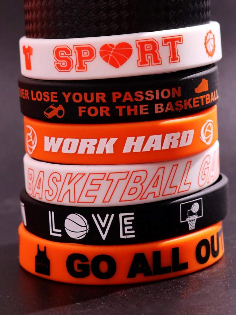 6pcs/Set Sports Basketball Silicone Bracelets, I Love Sports Men's Gift Jewelry For Matches & Festivals Valentines