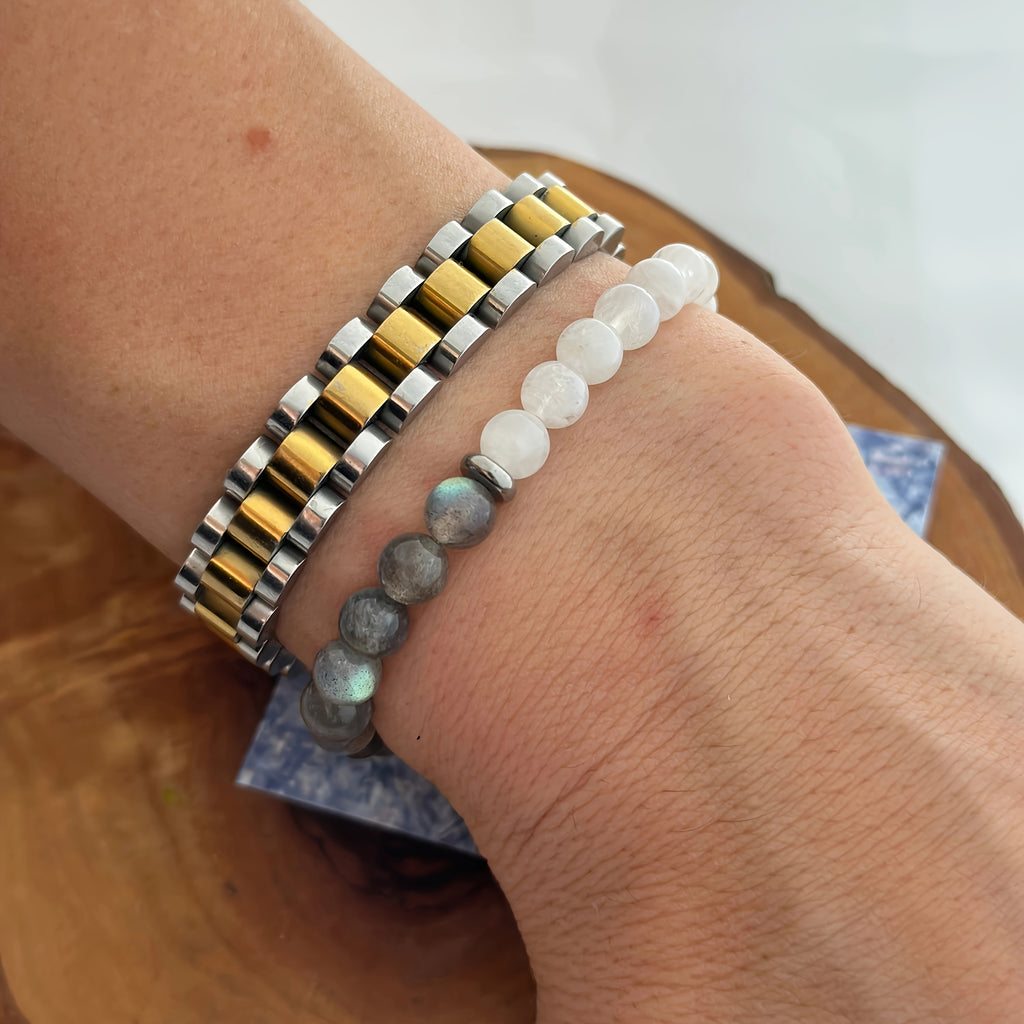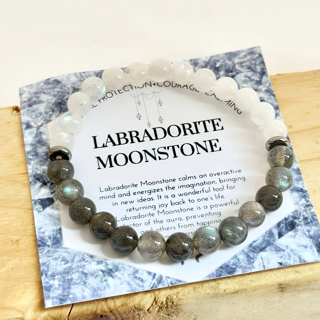 8mm Labradorite & Moonstone Beaded Bracelet - Bohemian Style, Handmade, Heart Chakra Jewelry for Inner Peace & Emotional Balance, Ideal Gift for Family & Loved Ones, Bohemian Jewelry