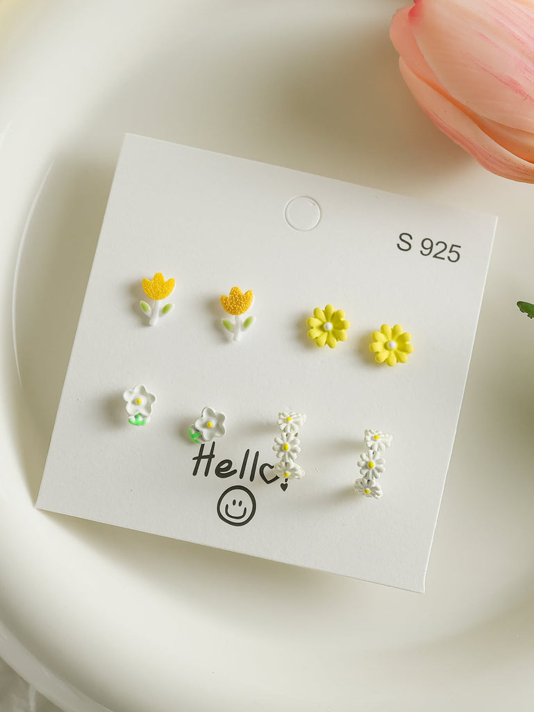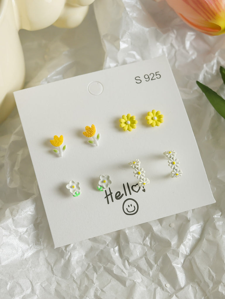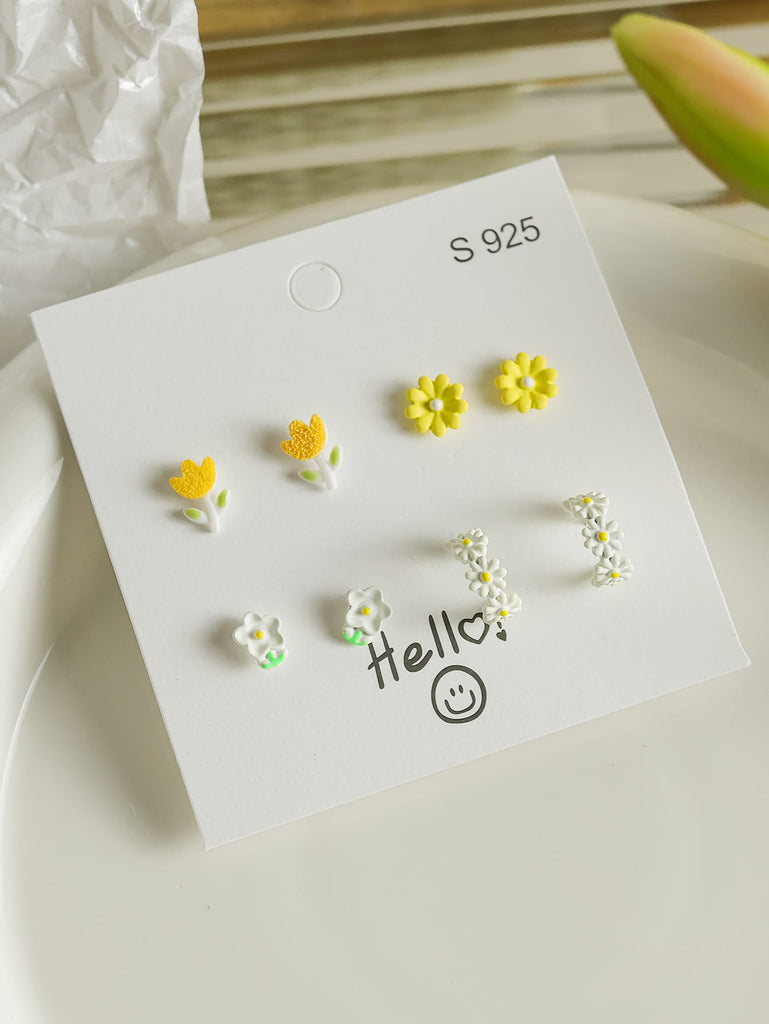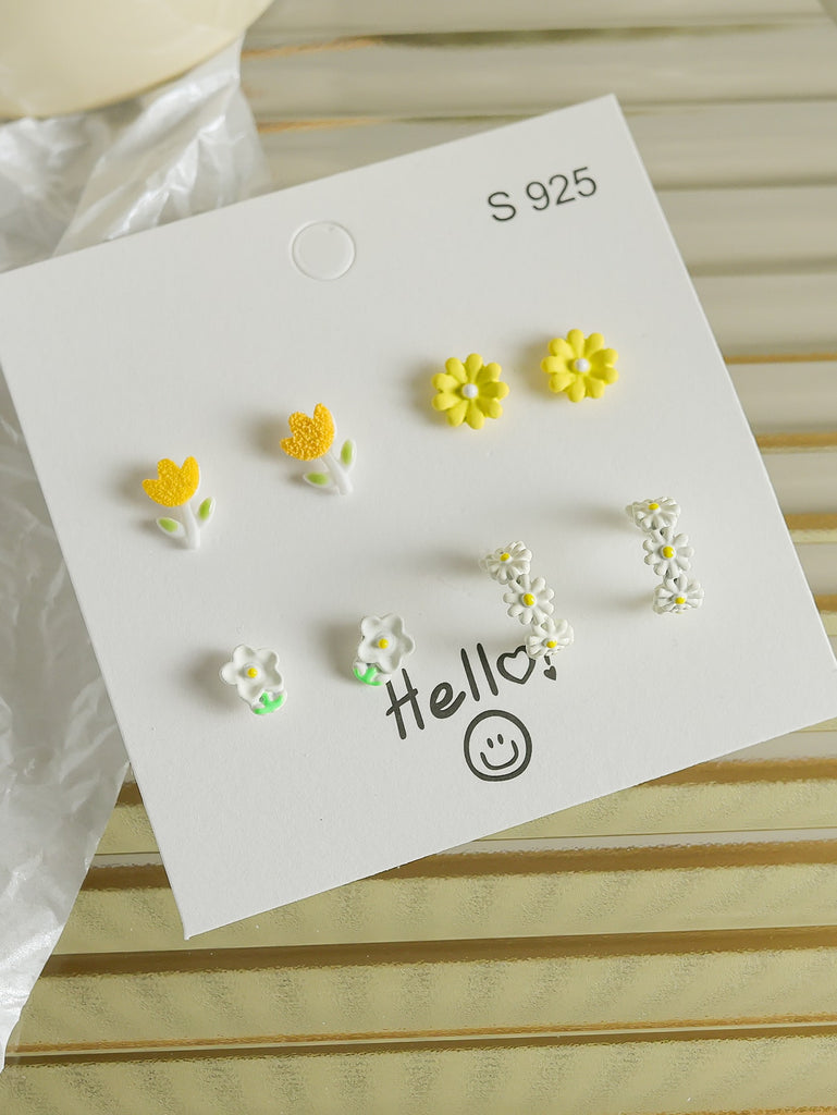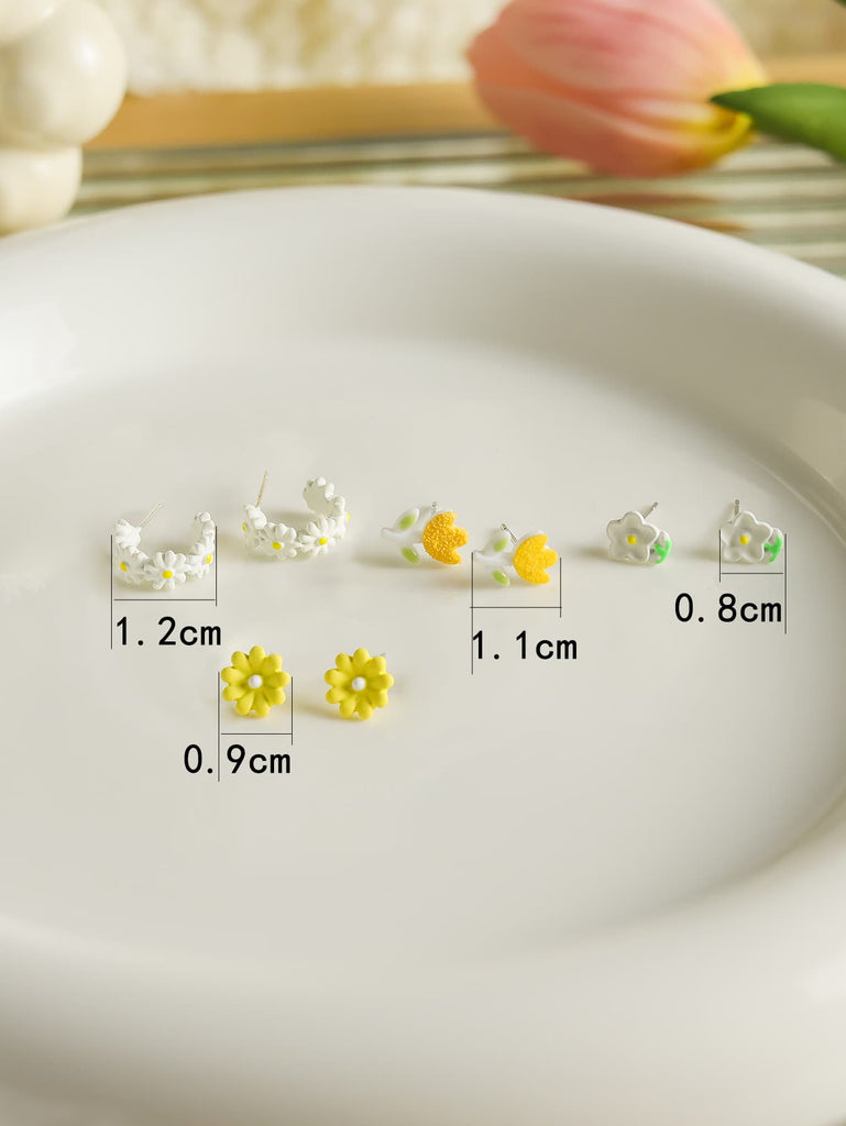 8PCS Ceramic Spray Paint Simple Week Stud Set Combination Female Fresh Elegant Student Earrings