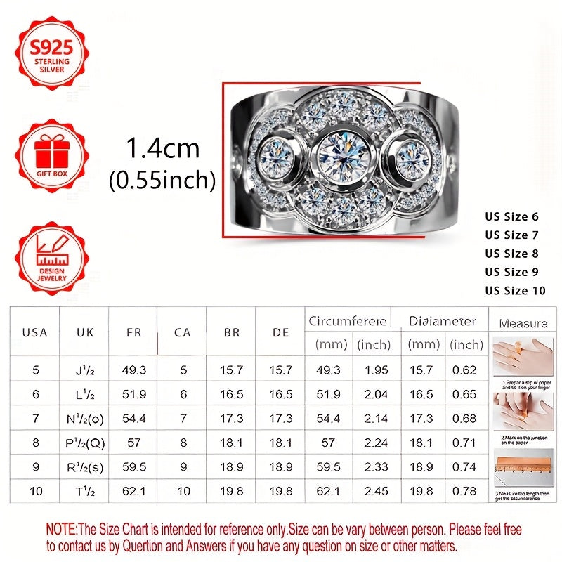 925 Sterling Silver Women'S Fashion Ring, Inlaid with Cubic Zirconia, Light Luxury, Exquisite, Elegant and Stylish, Suitable for Festive Gifts, Vacation Travel, Engagement, Wedding Ring, Perfect Jewelry for Self-Gifting or Family, Comes with Gift Box