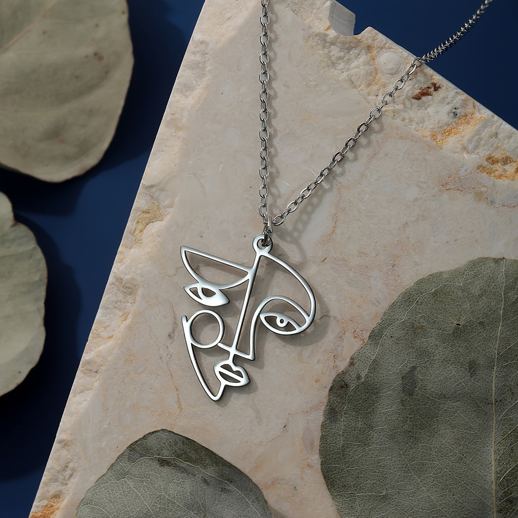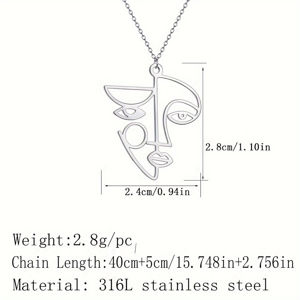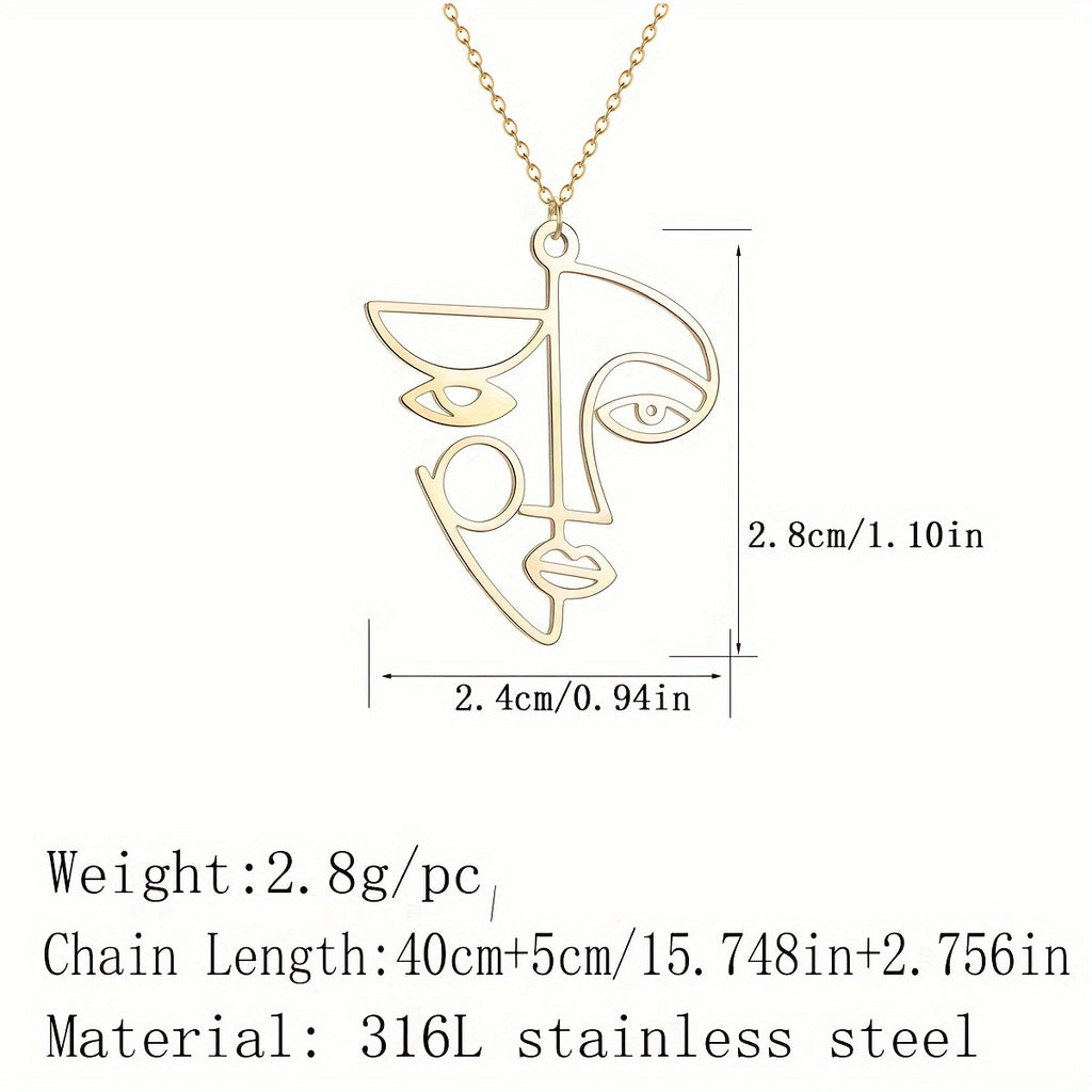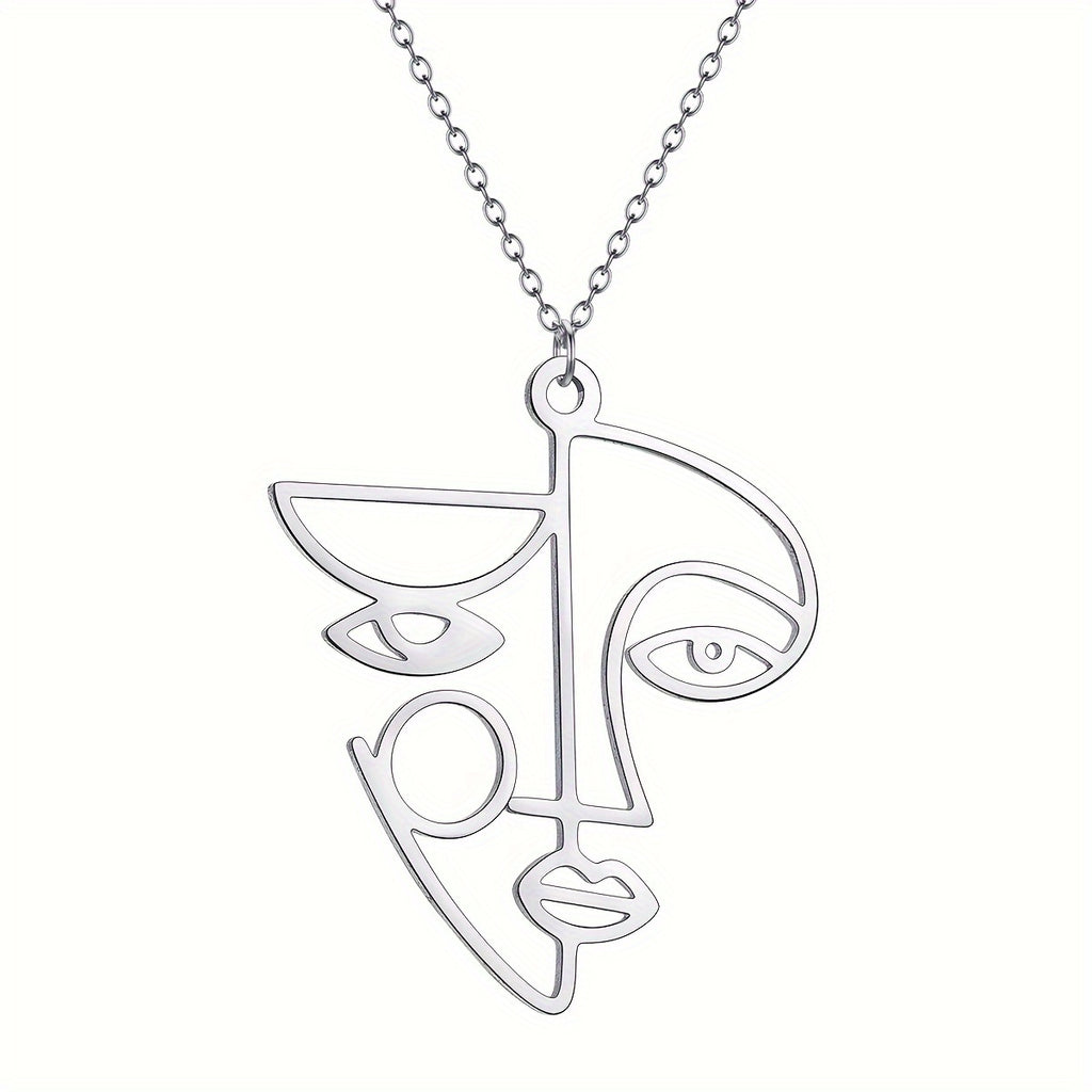 Abstract Woman Face Pendant Necklace - Boho Style, 316L Stainless Steel Hollow Charm with Intricate Design, Perfect for Birthdays & Parties, Birthday Party Accessory | Bohemian Jewelry | Detailed Craftsmanship, Necklace