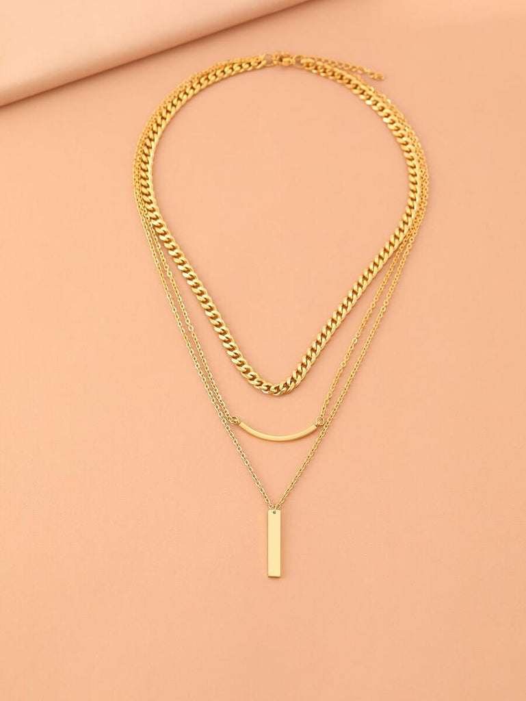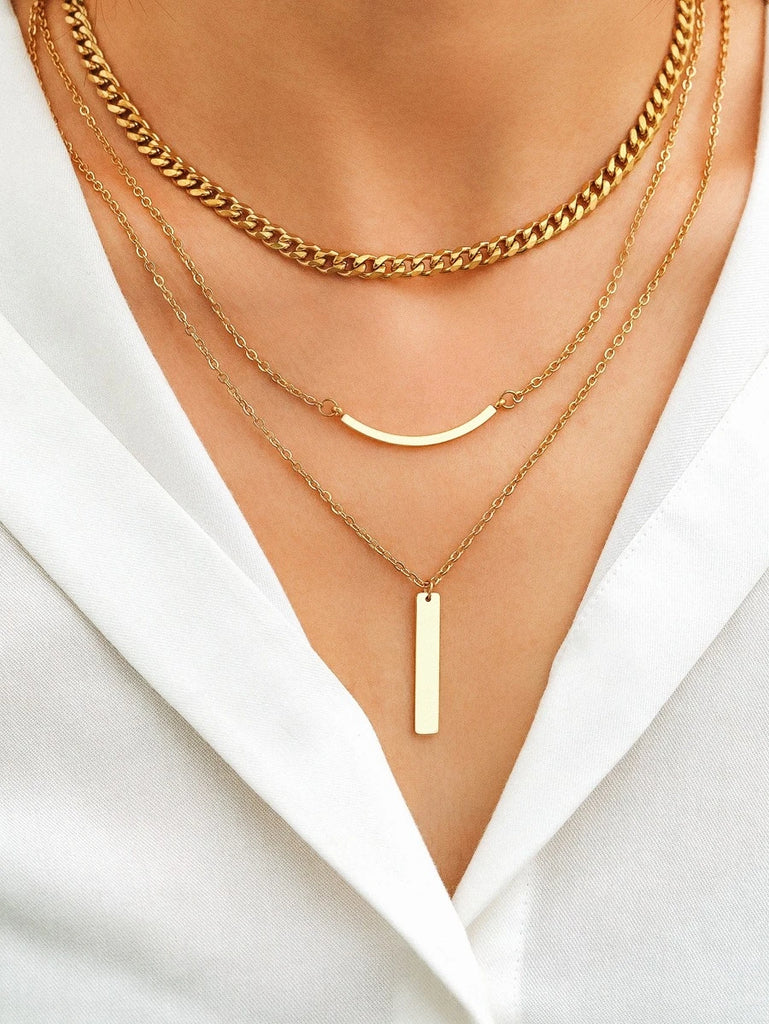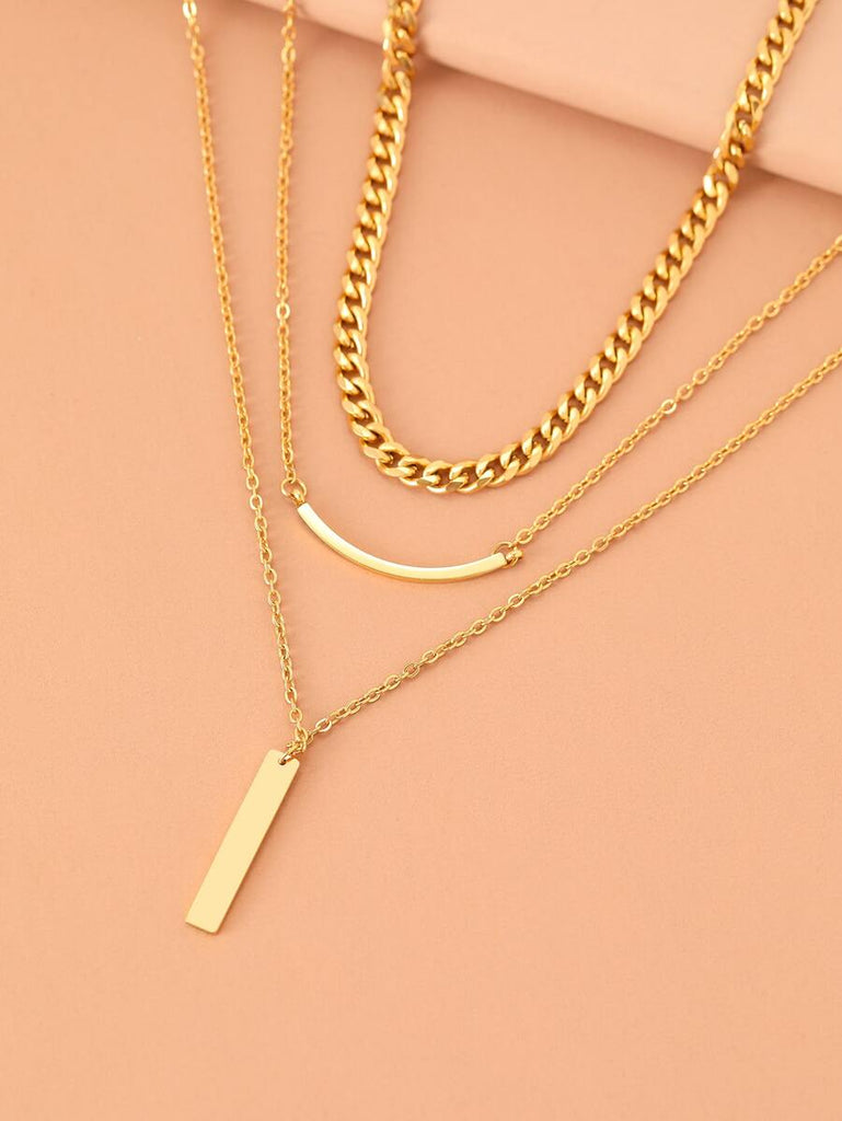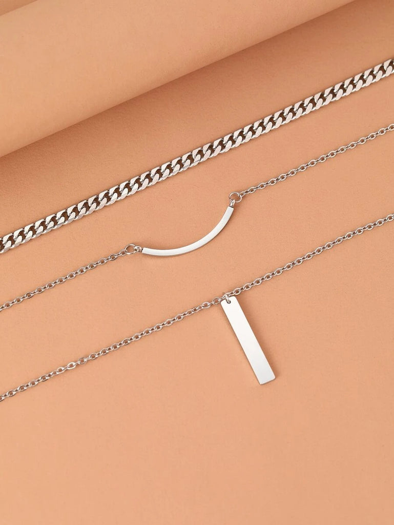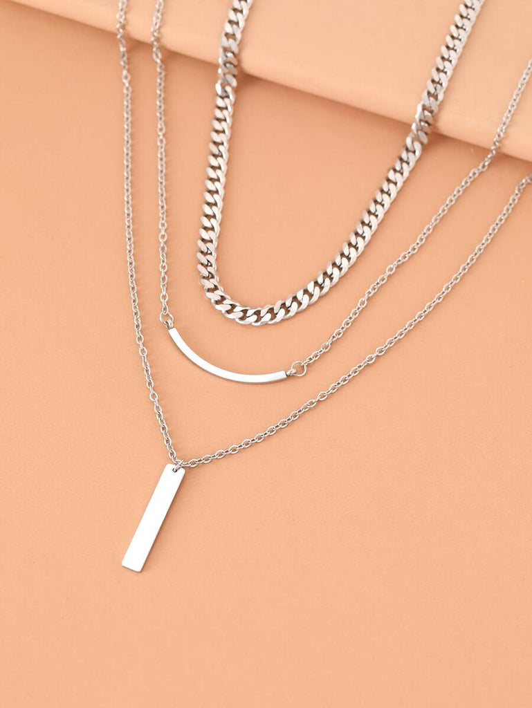 Aomogo Stainless Steel Necklaces Geometry Rectangle Pendant Choker Multilayer Thick Chain Streetwear Gothic Necklace For Women Jewelry