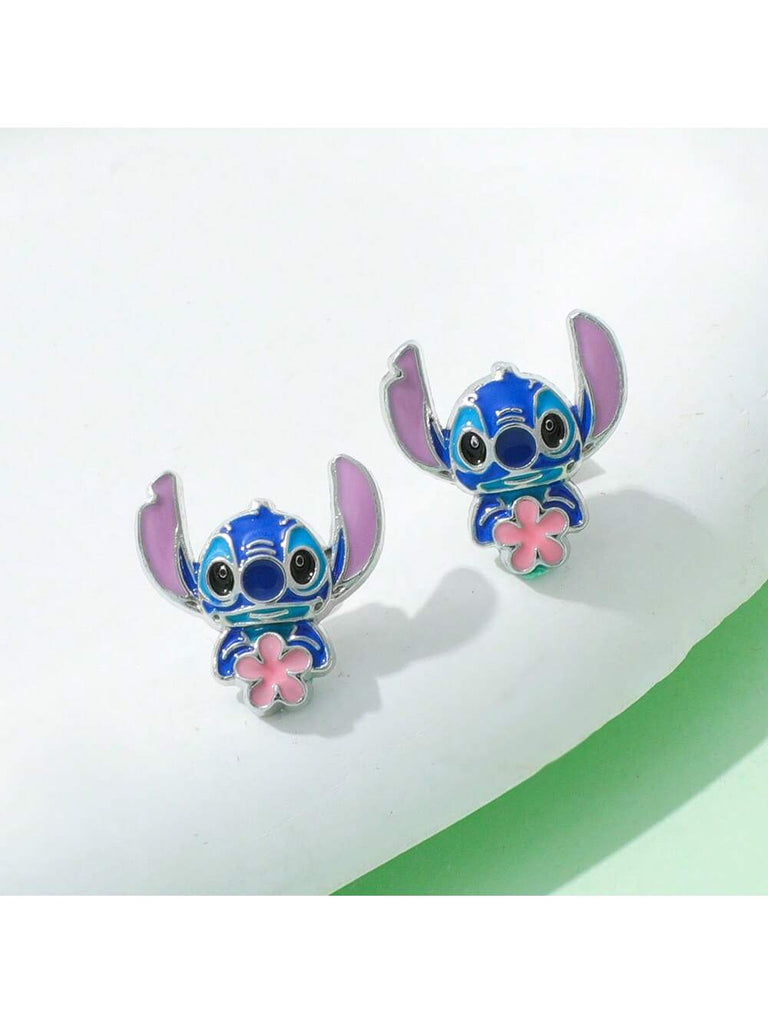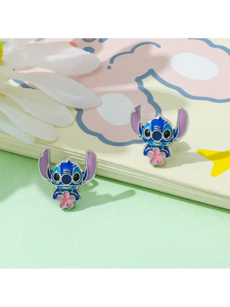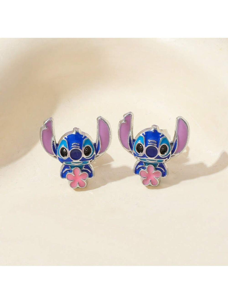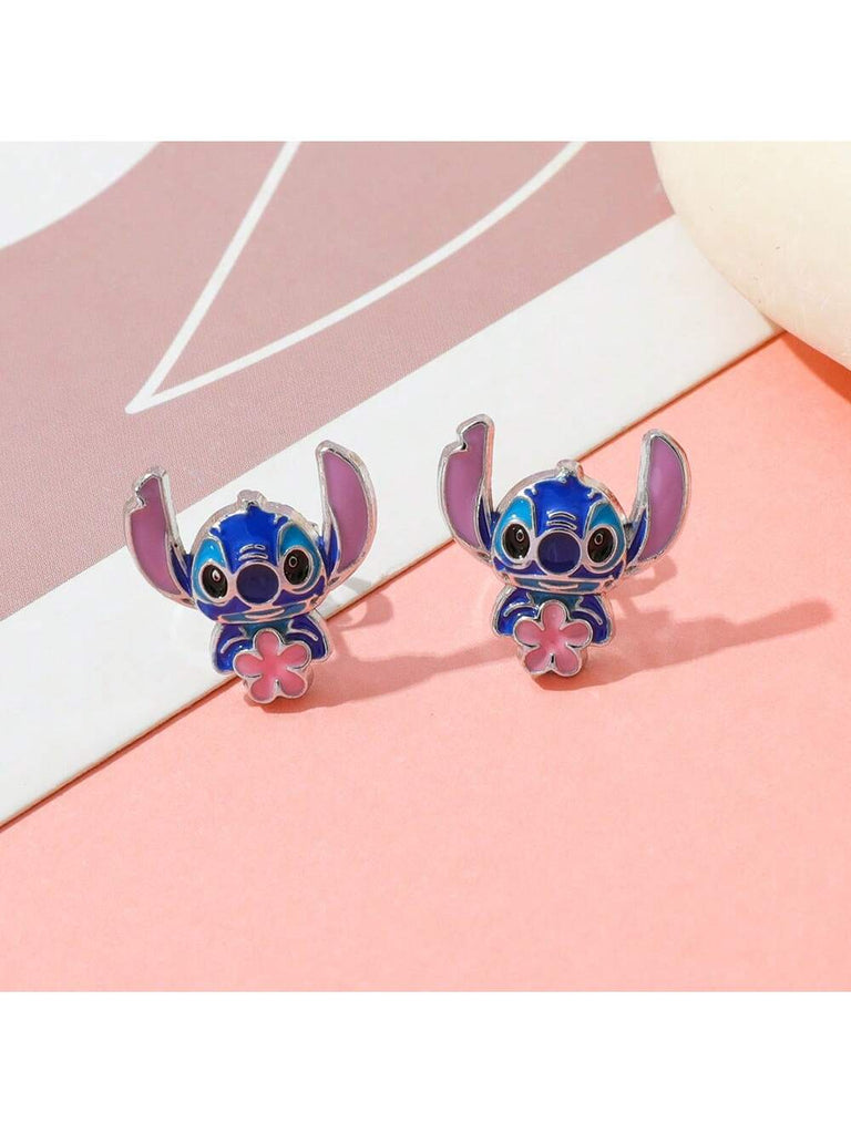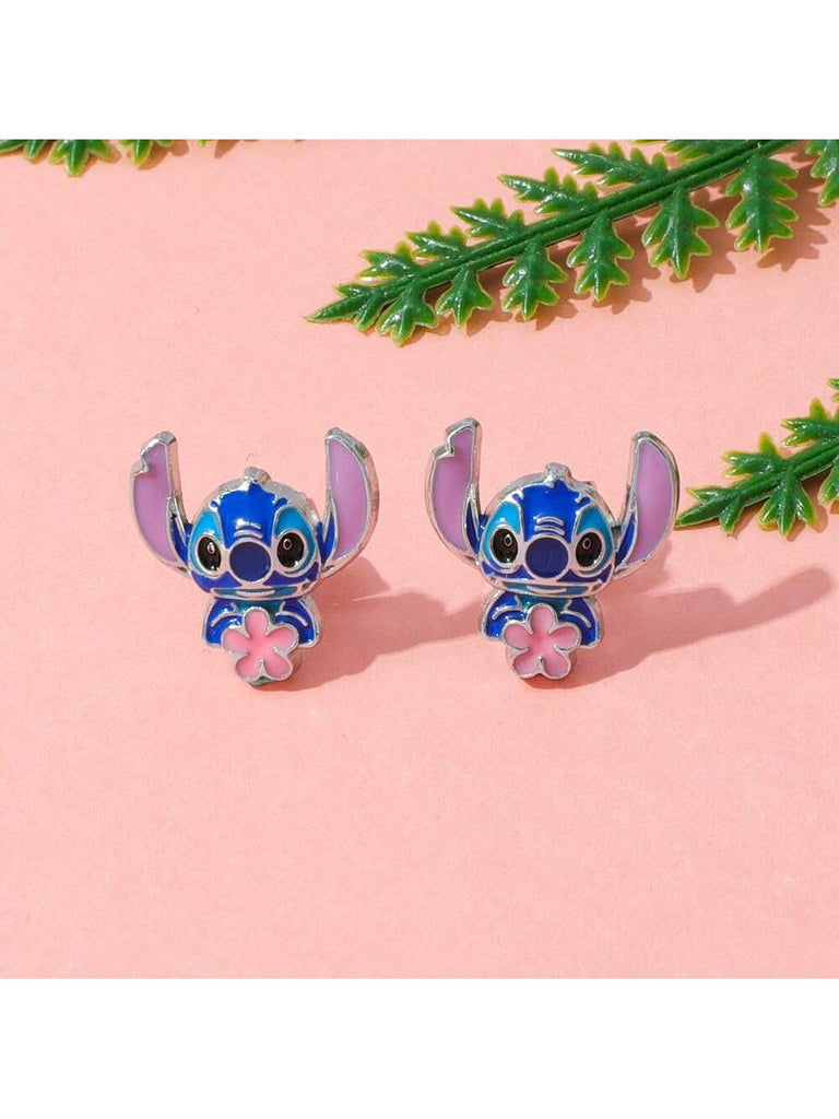 bandai 1pair Disney Cartoon Lilo & Stitch Ear Pendants Kawaii Stitch Metal Earring Delicate Female Jewelry Accessories Girl Party Gifts