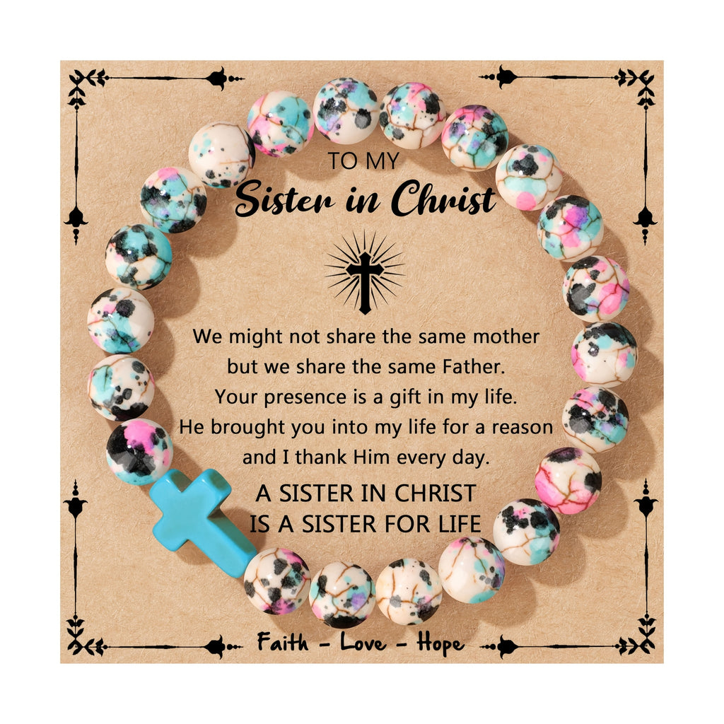 Bohemian Style Turquoise Cross Bracelet for Women - Christian Religious Jewelry, Meaningful Baptism & Eucharist Gift, Stretch Beaded Bracelet, No Card Included, Resurrection, Catholic