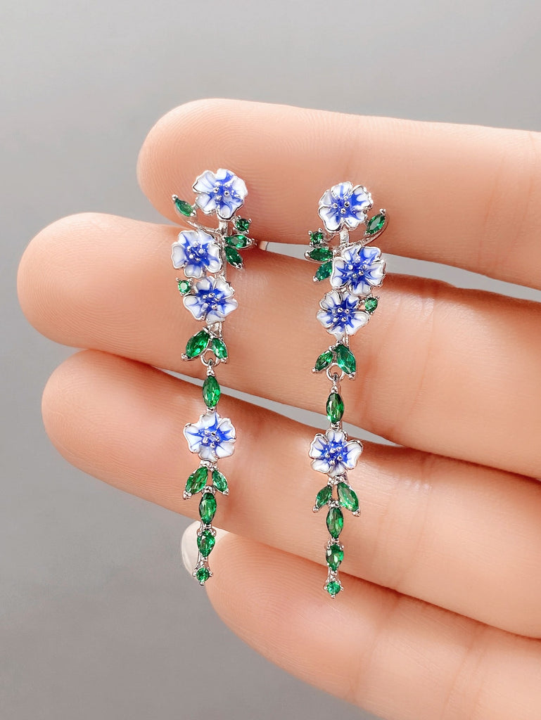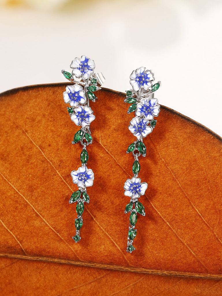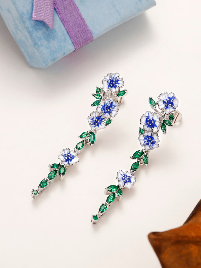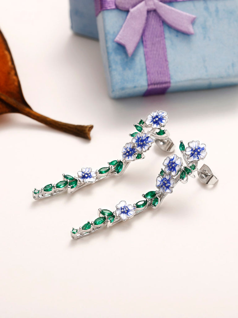 Cubic Zirconia & Flower Drop Earrings Valentines,Mom,Mother,Mother's Day,Gift