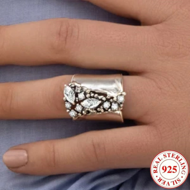 Elegant 925 Sterling Silver Shield Ring with Cubic Zirconia - Long, Full-Finger, Thick Band for Weddings & Gifts, Valentine'S Day Jewelry, Wedding Jewelry