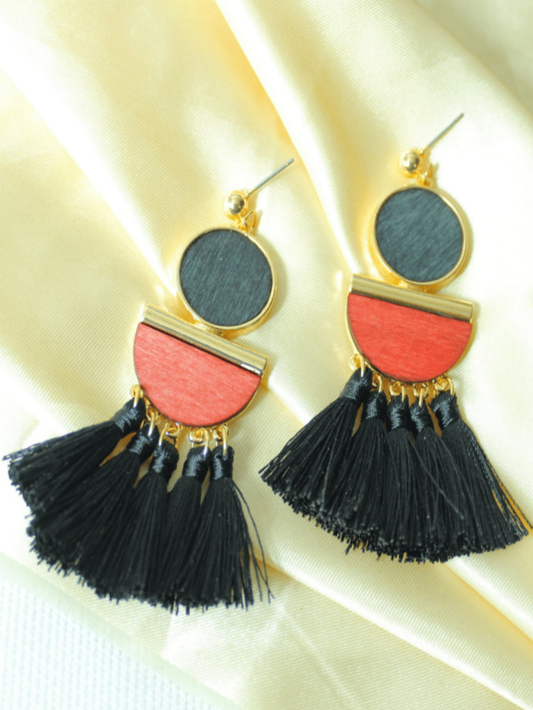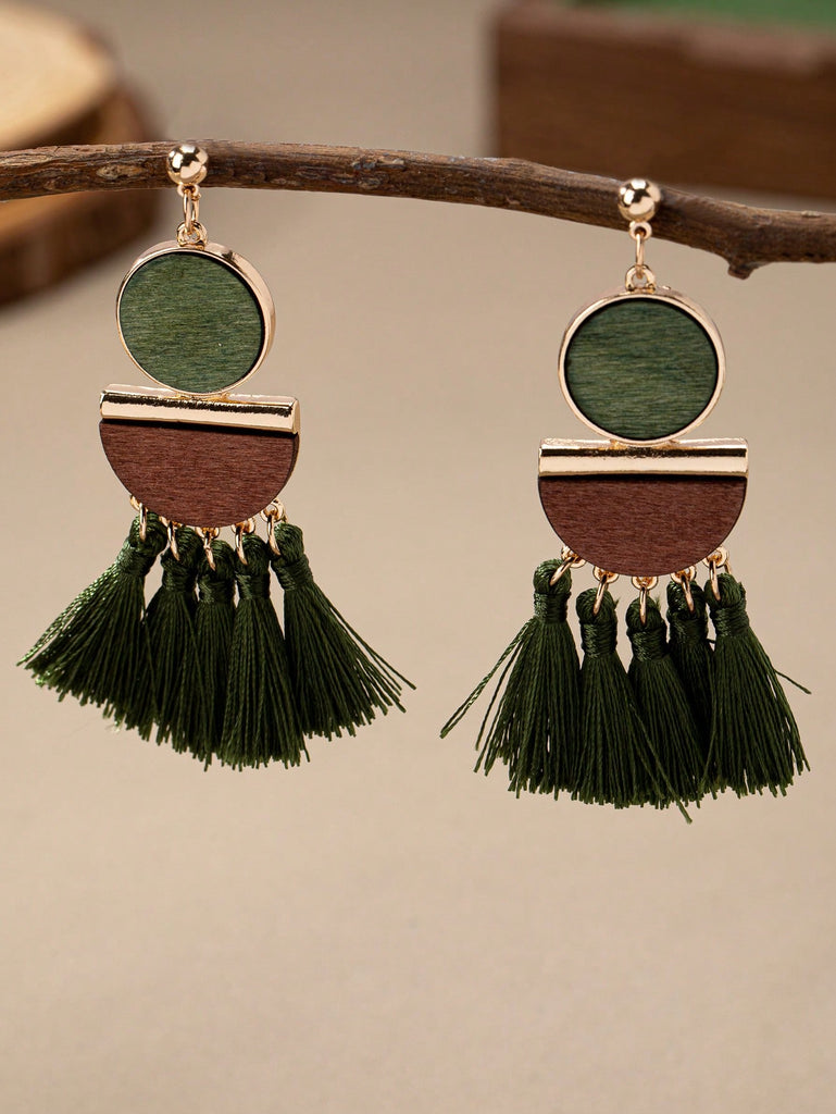 Elegant Boho Style Handmade Wood Wrapped Wire Dangle Earrings, Versatile & High-Quality For Commute & Daily Wear, Long Tassel Earrings