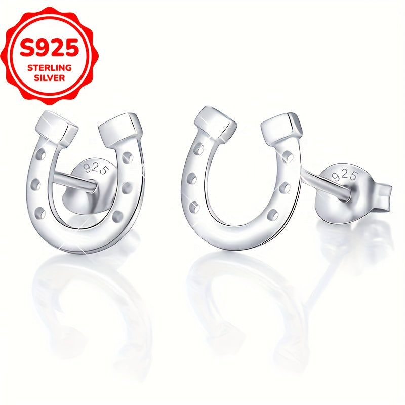 Elegant Horseshoe-Shaped Stud Earrings for Women - 925 Sterling Silver, Hypoallergenic, Perfect Gift, Low Allergy, 4g