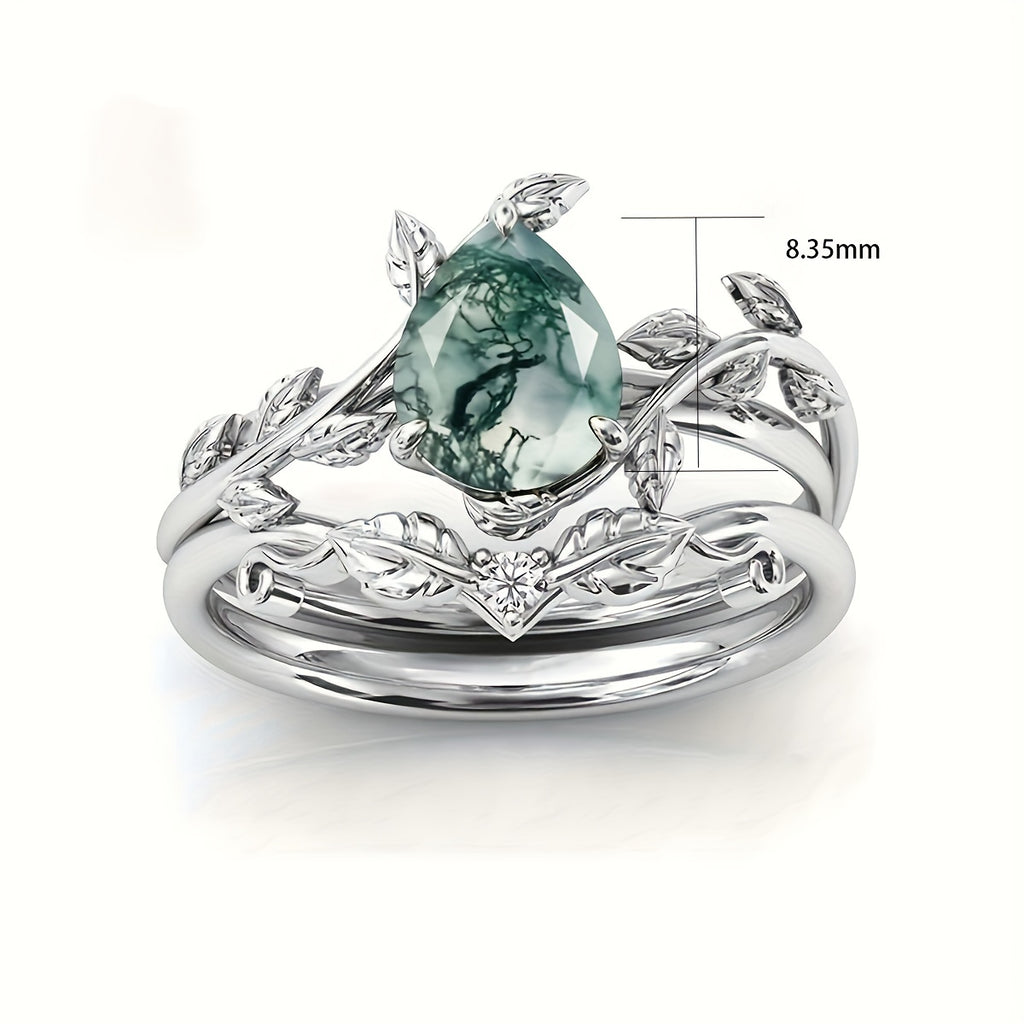 Elegant S925 Sterling Silvery Natural Water Grass Agate Ring Set for Women - Bohemian Style, Ideal for Weddings & Engagements, 4.5g, Wedding Jewelry|Elegant Ring Design|S925 Sterling Silvery