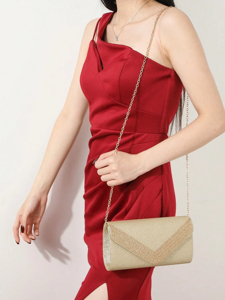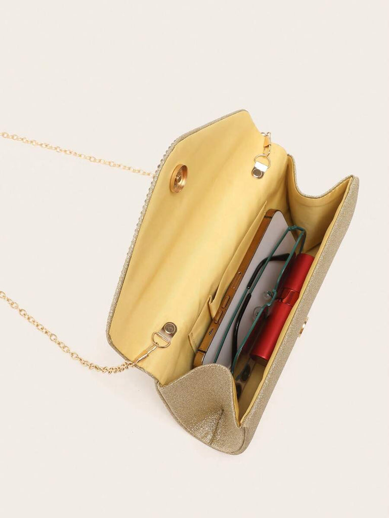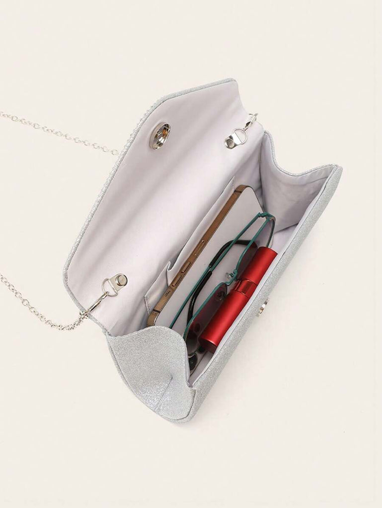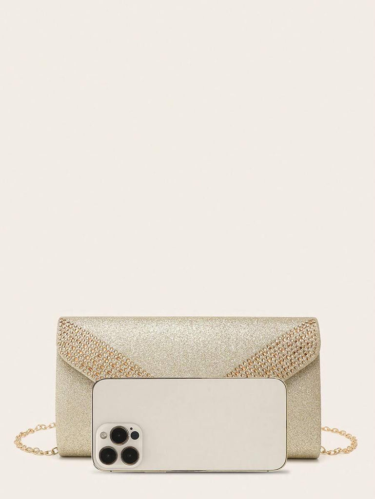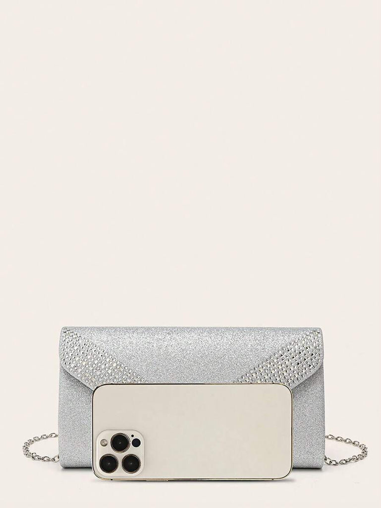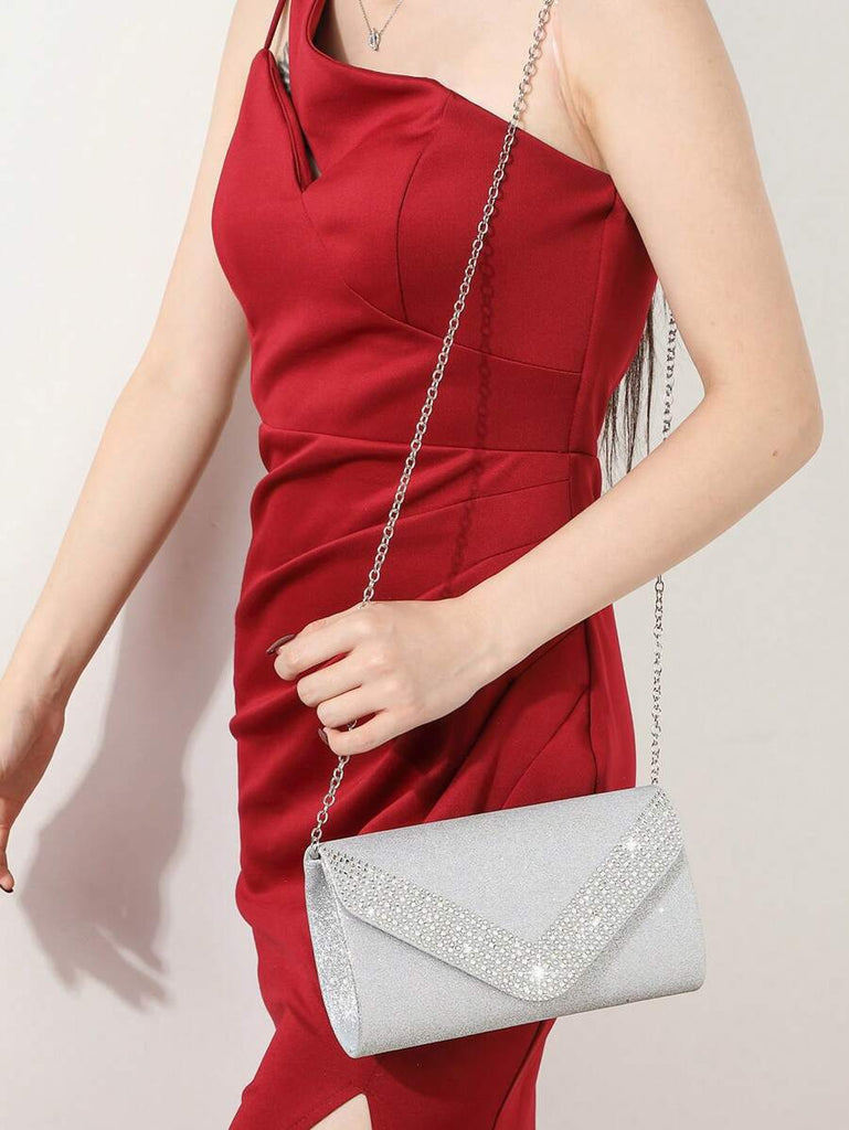 GZCS BAG 4 Pieces Rhinestone Jewelry Set Bling Necklace Earrings Bracelets Set For Sparkling Glitter Hot Diamond Elegant V-Shaped Flap Envelope Purse For Women Prom With Detachable Metal Chain For Wedding And Party Shoulder Bag For Women Clutch For Ladies
