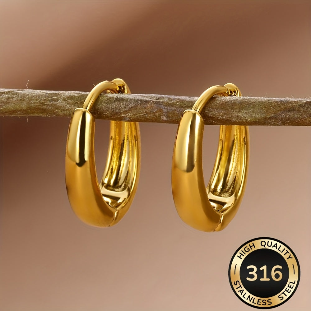 Hypoallergenic Stainless Steel Oval Hoop Earrings, Fade-Resistant, Comfortable and Versatile, Simple and Elegant High-Quality Fashionable Women'S Jewelry for Daily Use and Parties, Perfect Gift for Sophisticated Women