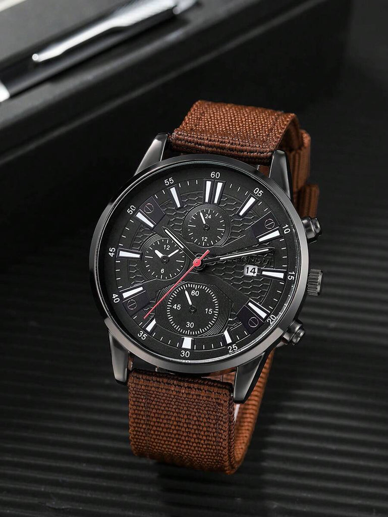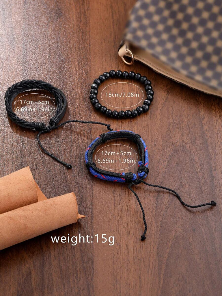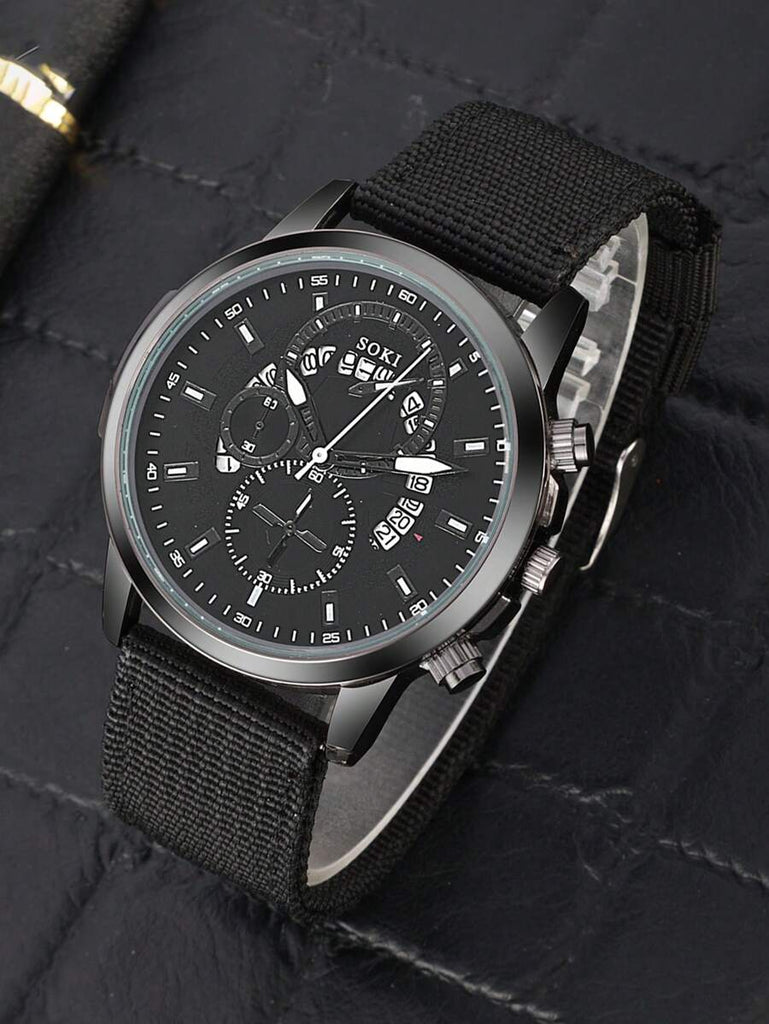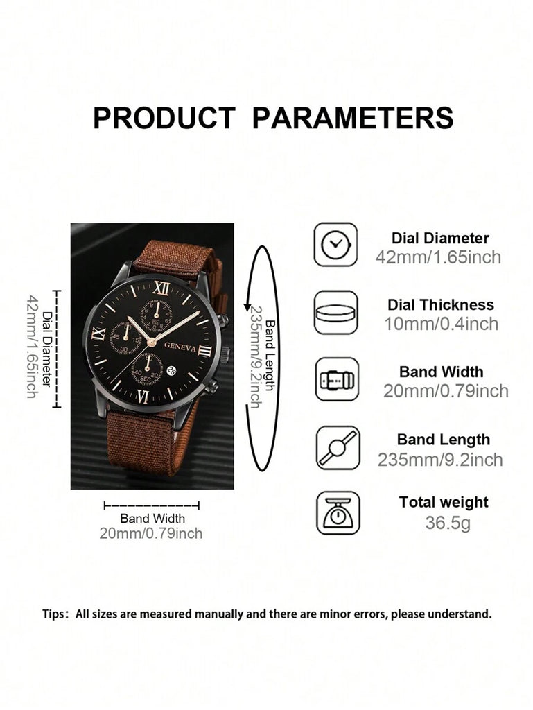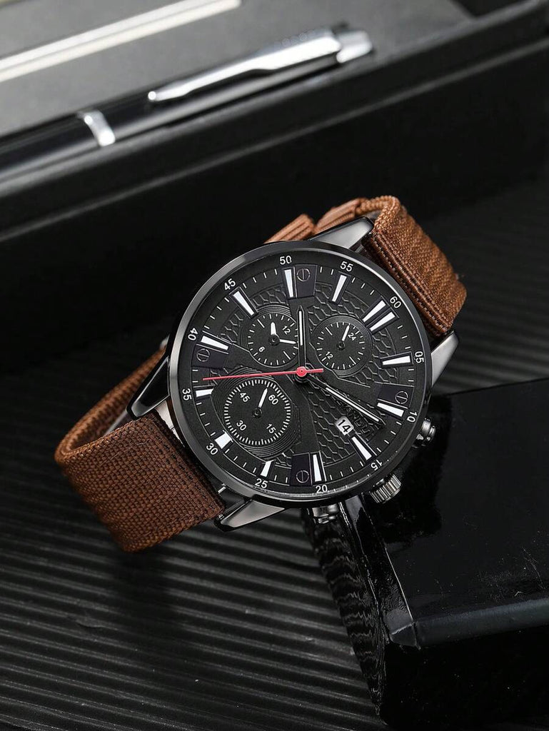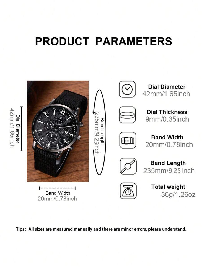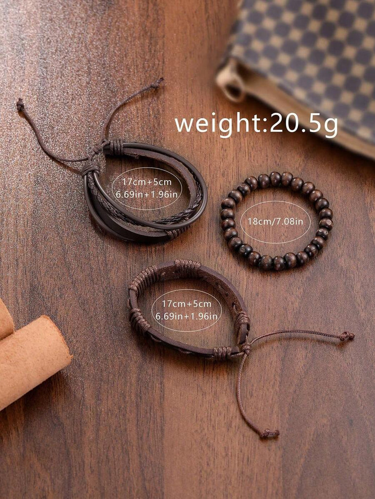 LIANDU LIANDU 4Pcs/Set Men's Watch Calendar Casual Sports Fashion Industrial Style Round Dial Quartz Watch And Leather Bracelet For Men, Punk Bracelet Set, PU Woven Wrap Wristband Suitable For Daily Wear, Back-To-School Season, Graduation Season, Thanksgi