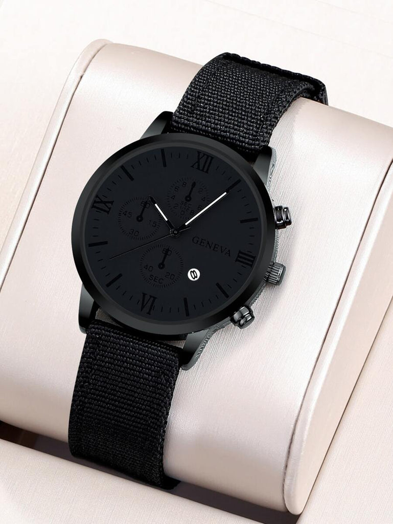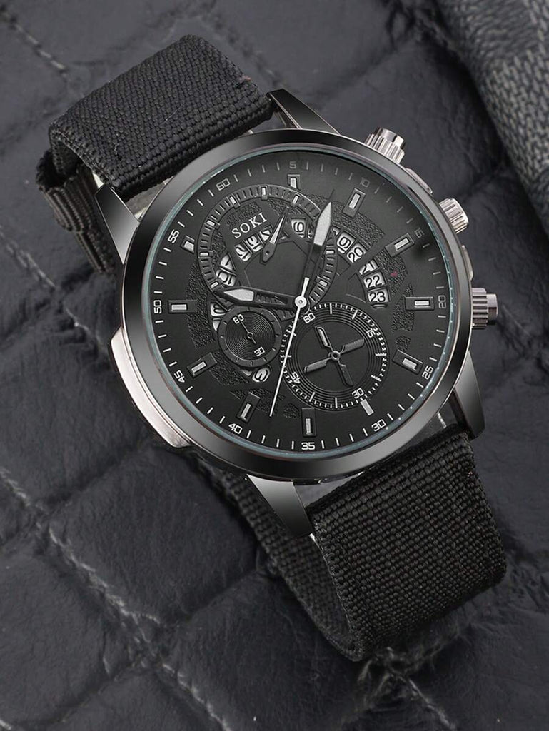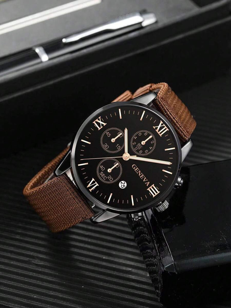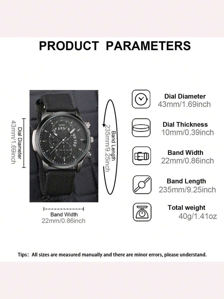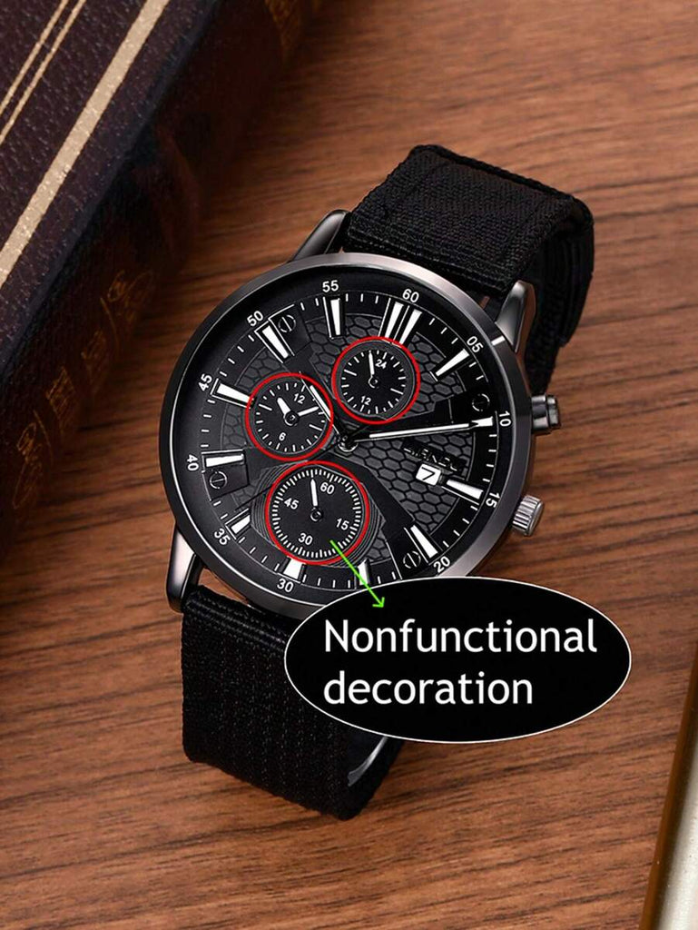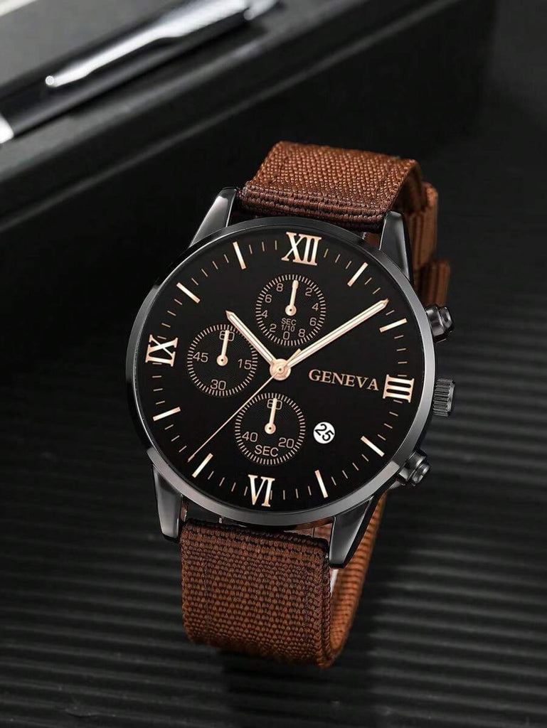 LIANDU LIANDU 4Pcs/Set Men's Watch Calendar Casual Sports Fashion Industrial Style Round Dial Quartz Watch And Leather Bracelet For Men, Punk Bracelet Set, PU Woven Wrap Wristband Suitable For Daily Wear, Back-To-School Season, Graduation Season, Thanksgi