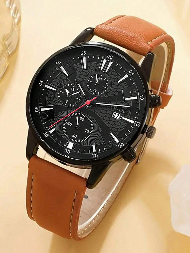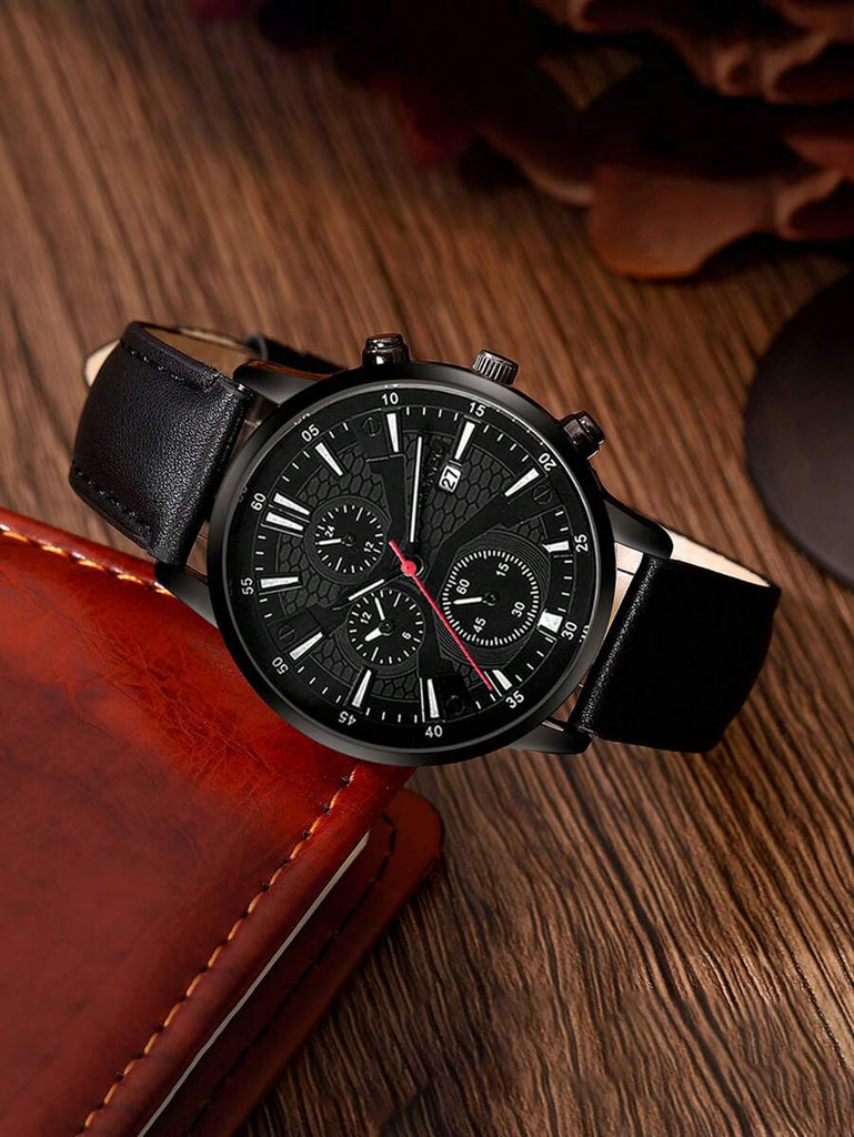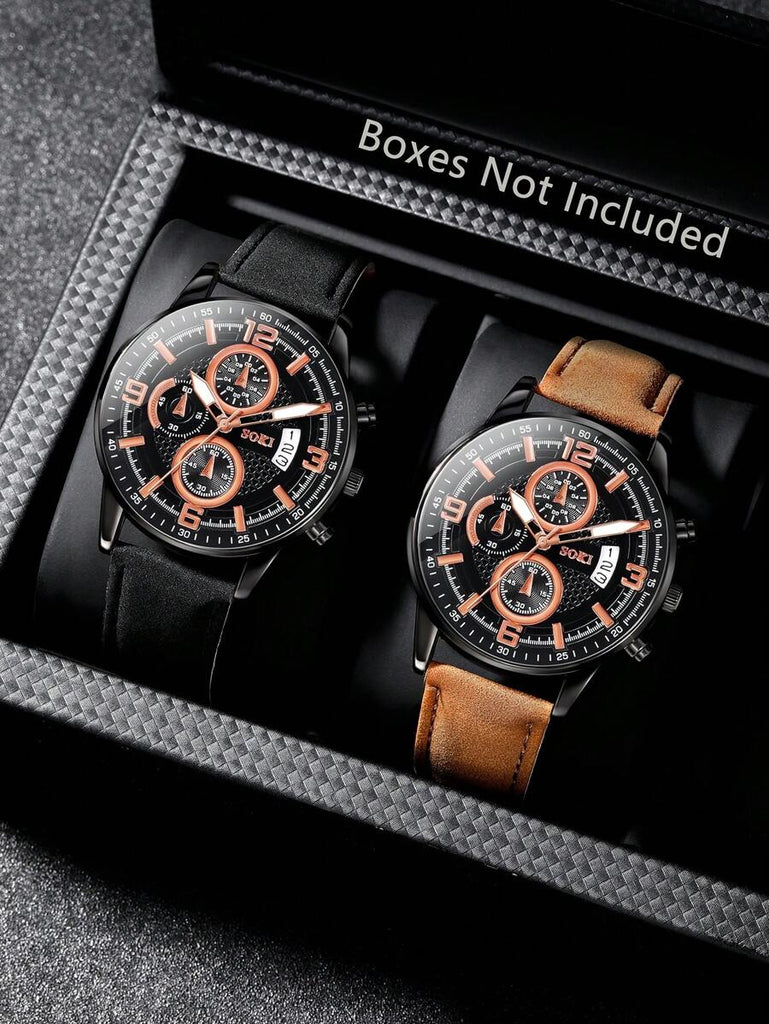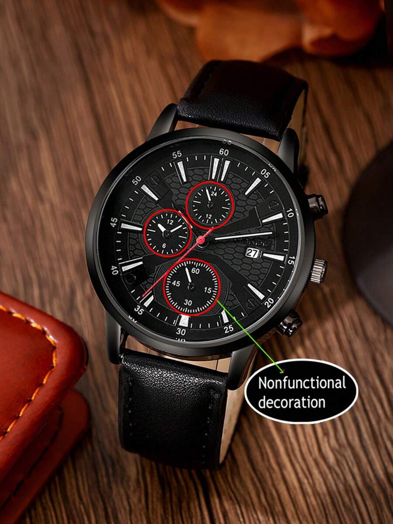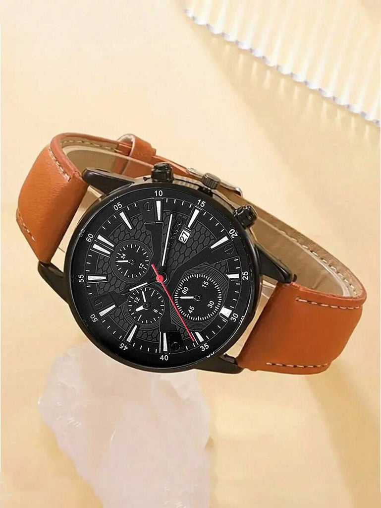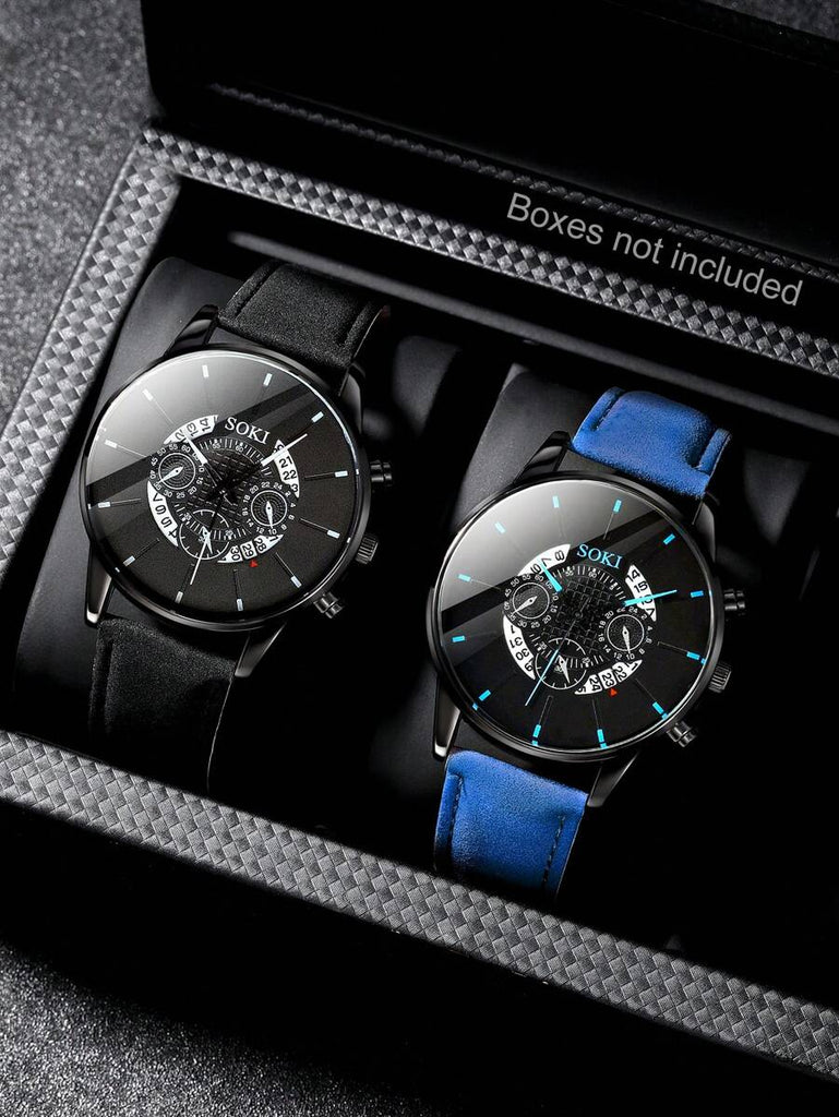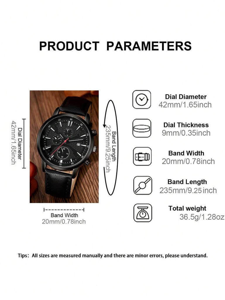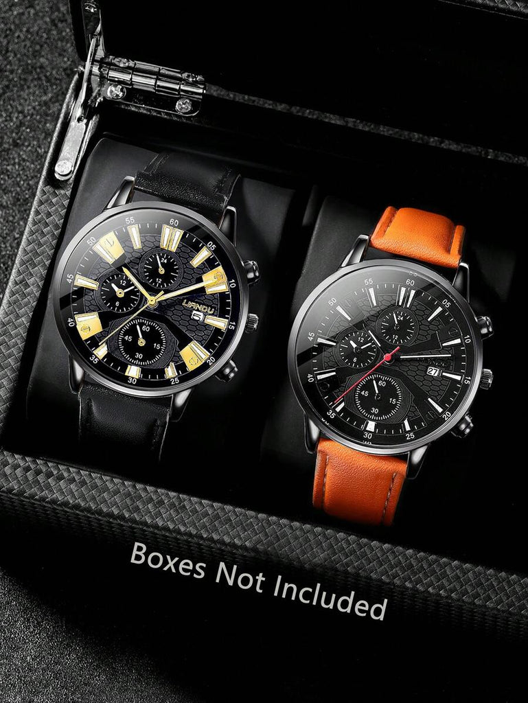 LIANDU LIANDU National Day 2pcs Set Men's Wristwatch Fashion,Casual,Simple,Numeral Calendar Dial Quartz Wristwatch,Suitable For Everyday Wear, Thanksgiving, Halloween, Christmas, Birthday Parties, Ramadan, And As The Perfect Gift No Box