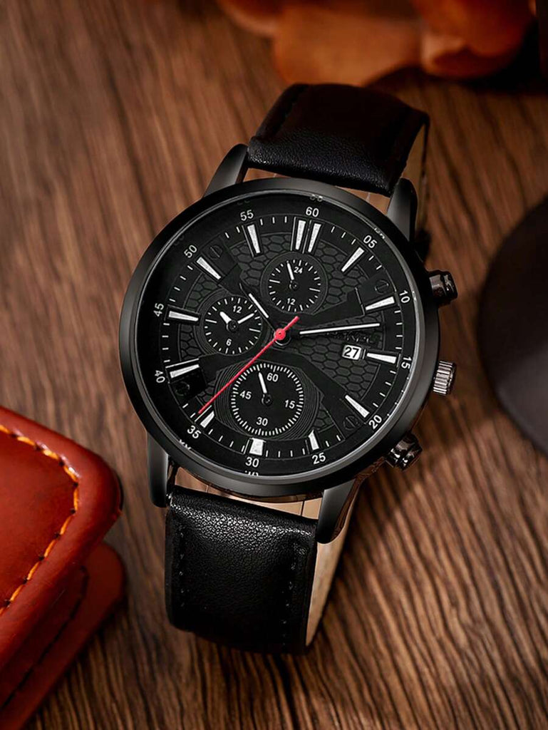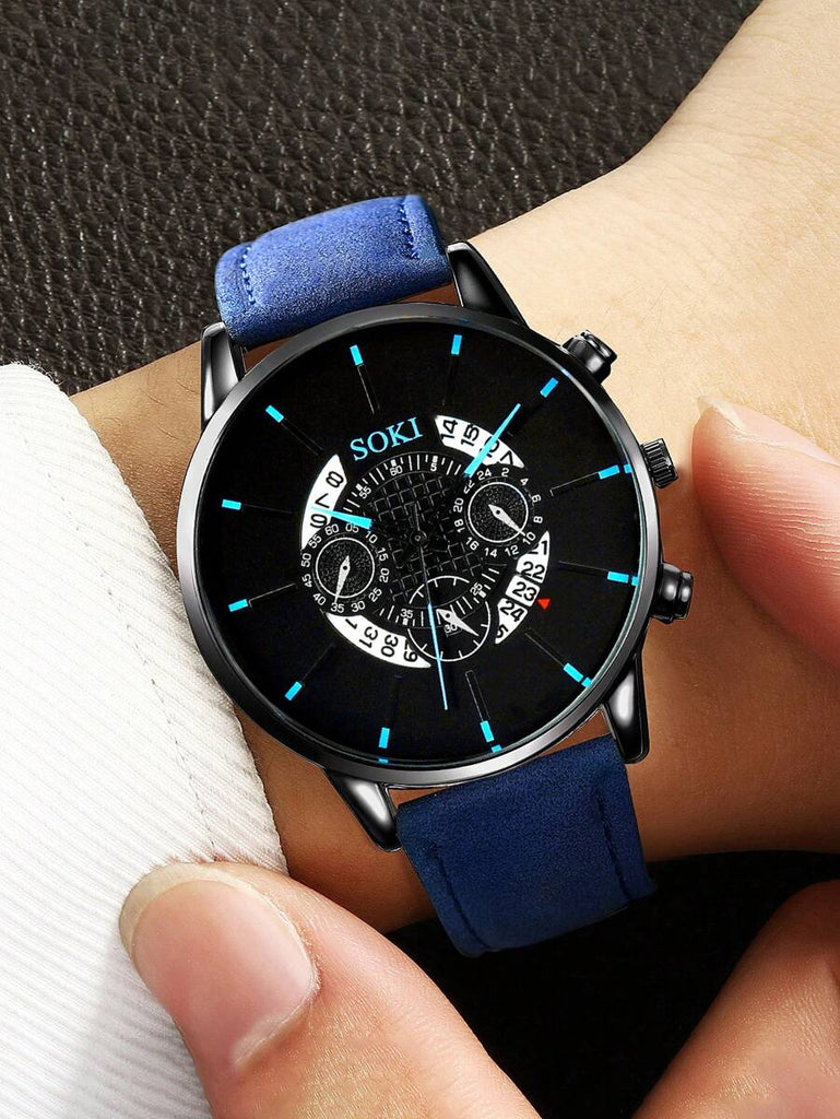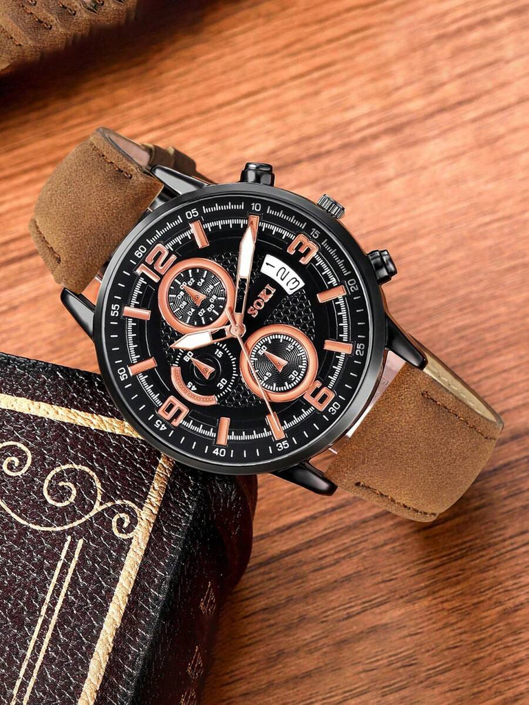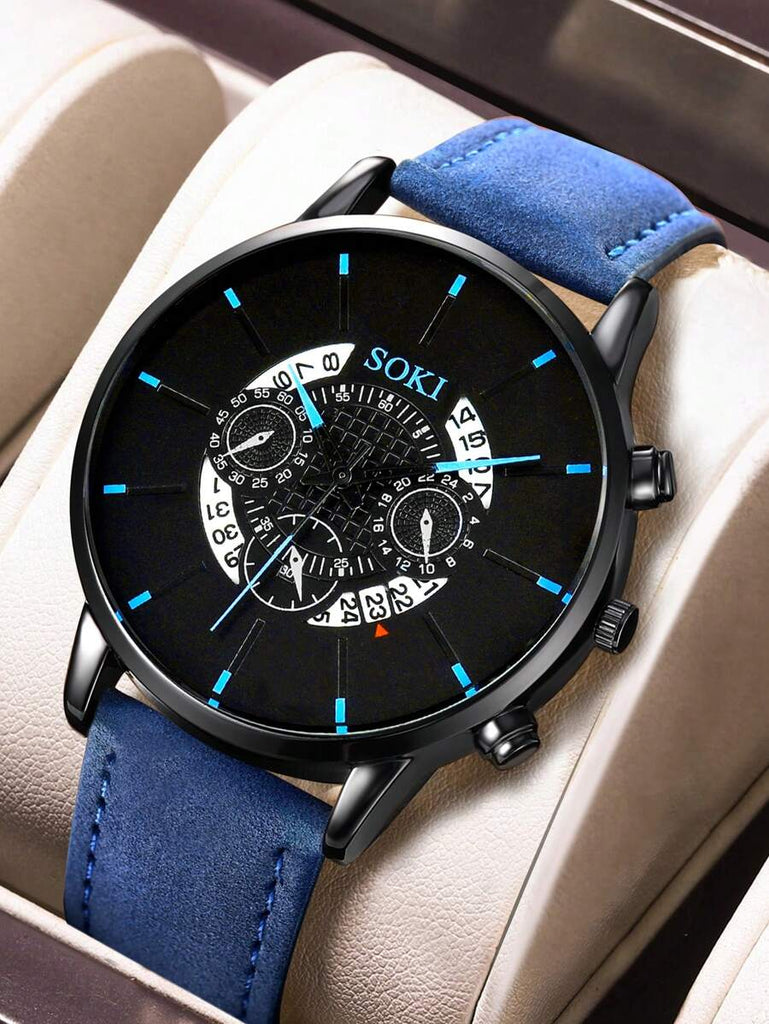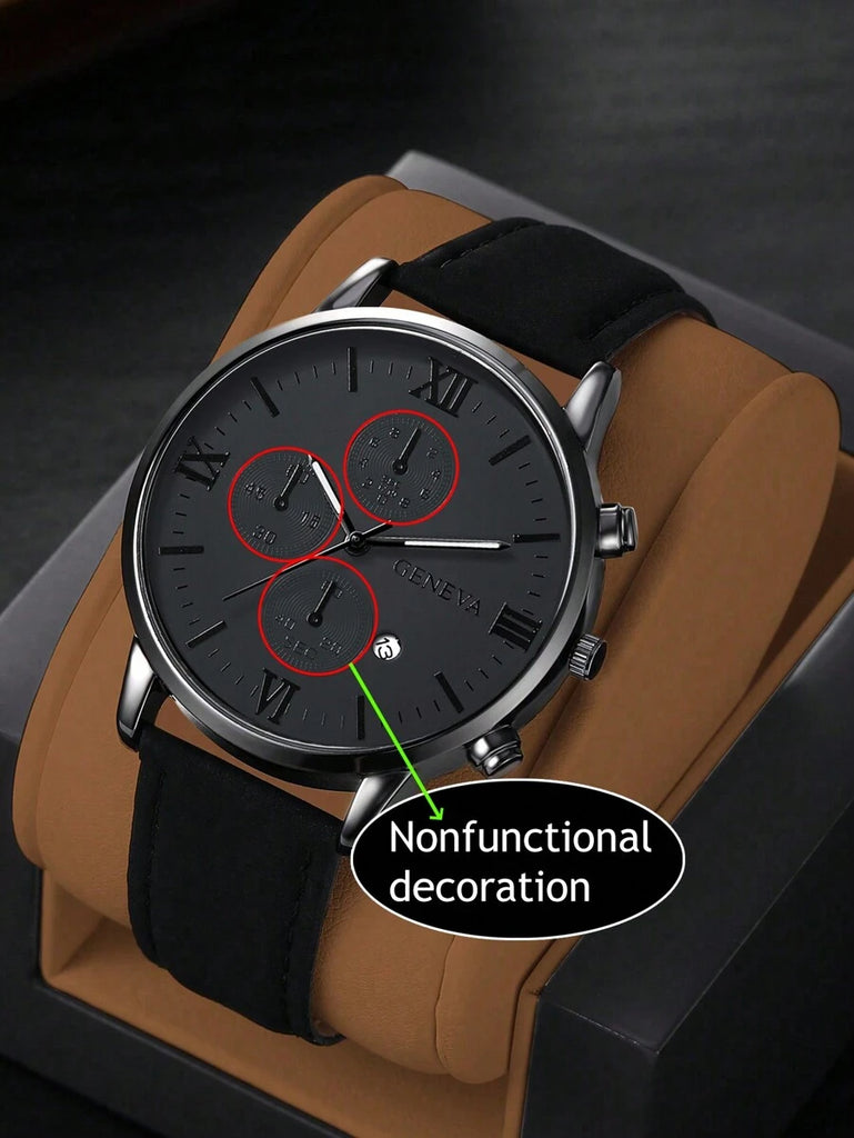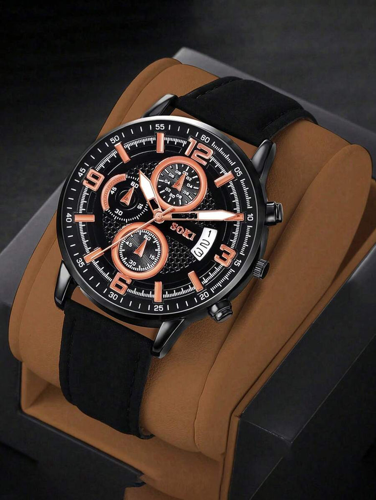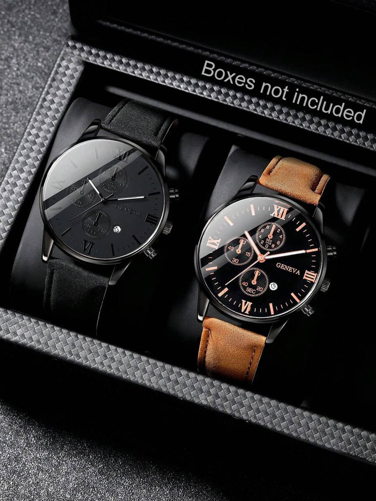 LIANDU LIANDU National Day 2pcs Set Men's Wristwatch Fashion,Casual,Simple,Numeral Calendar Dial Quartz Wristwatch,Suitable For Everyday Wear, Thanksgiving, Halloween, Christmas, Birthday Parties, Ramadan, And As The Perfect Gift No Box