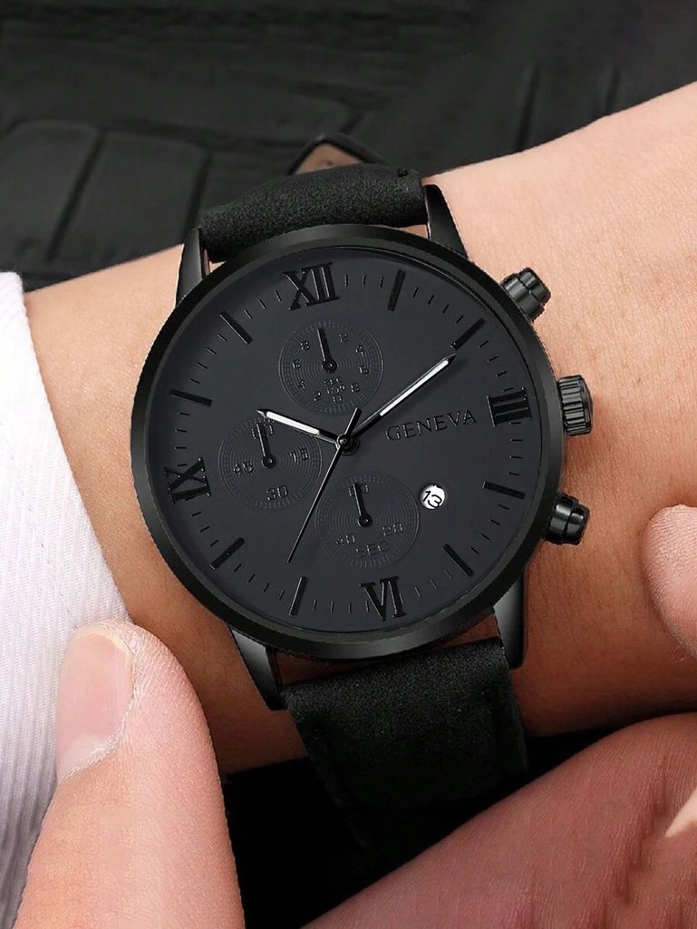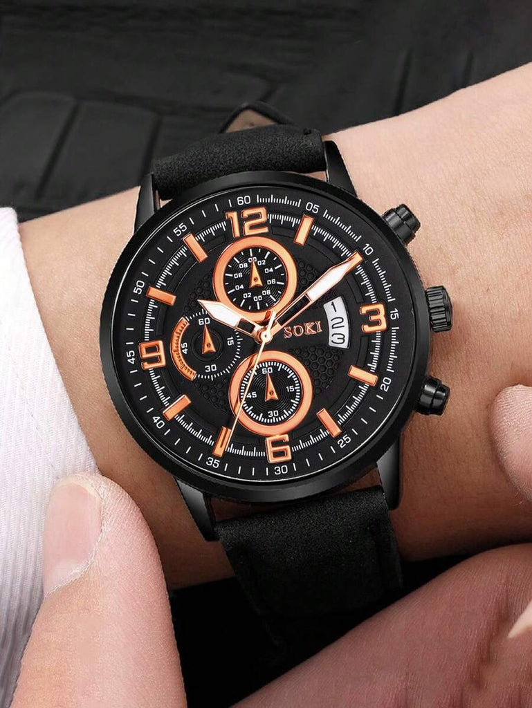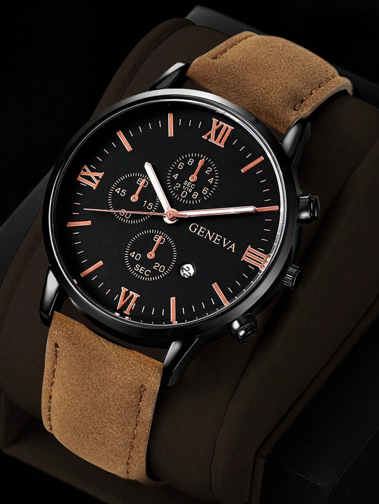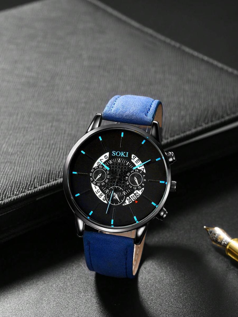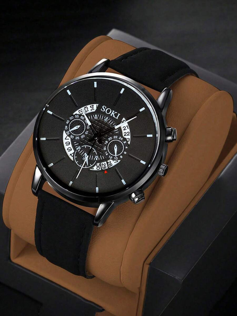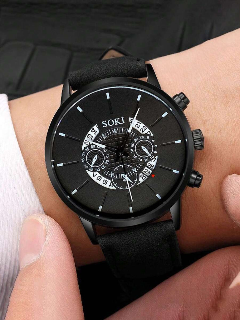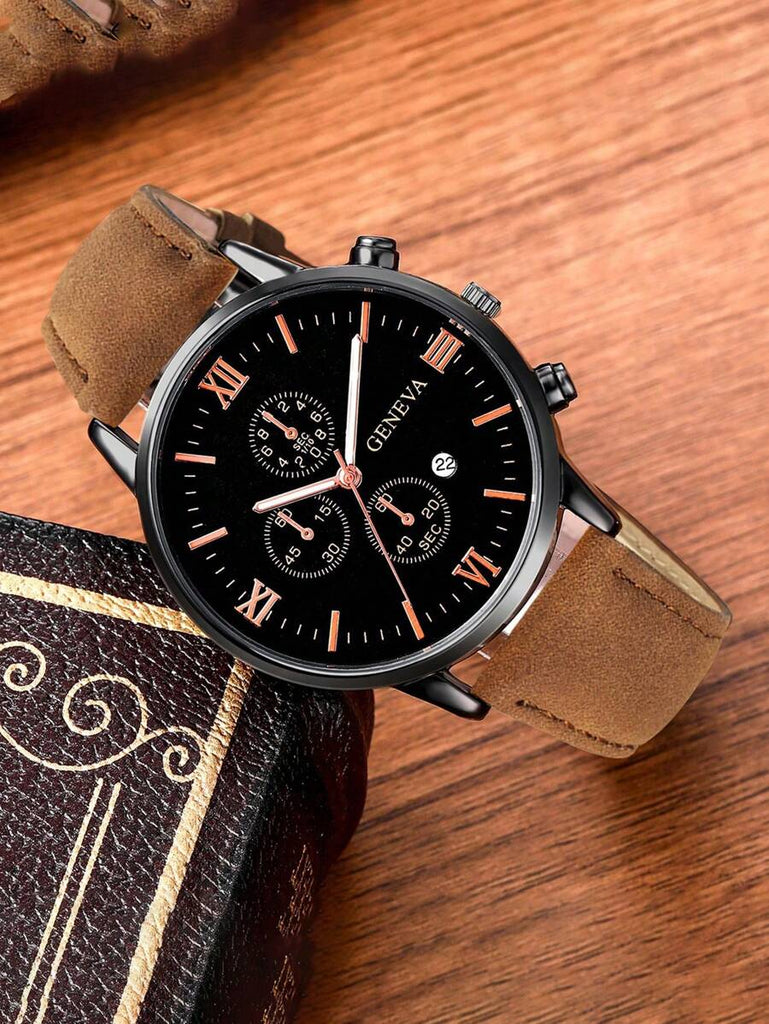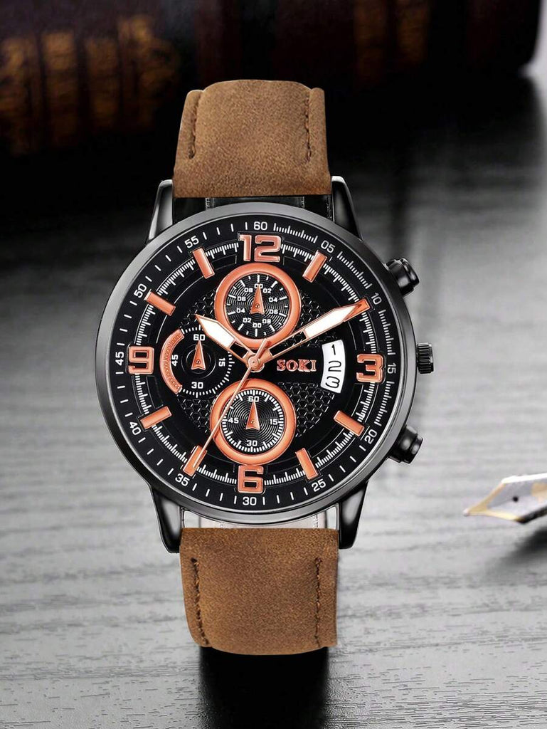 LIANDU LIANDU National Day 2pcs Set Men's Wristwatch Fashion,Casual,Simple,Numeral Calendar Dial Quartz Wristwatch,Suitable For Everyday Wear, Thanksgiving, Halloween, Christmas, Birthday Parties, Ramadan, And As The Perfect Gift No Box