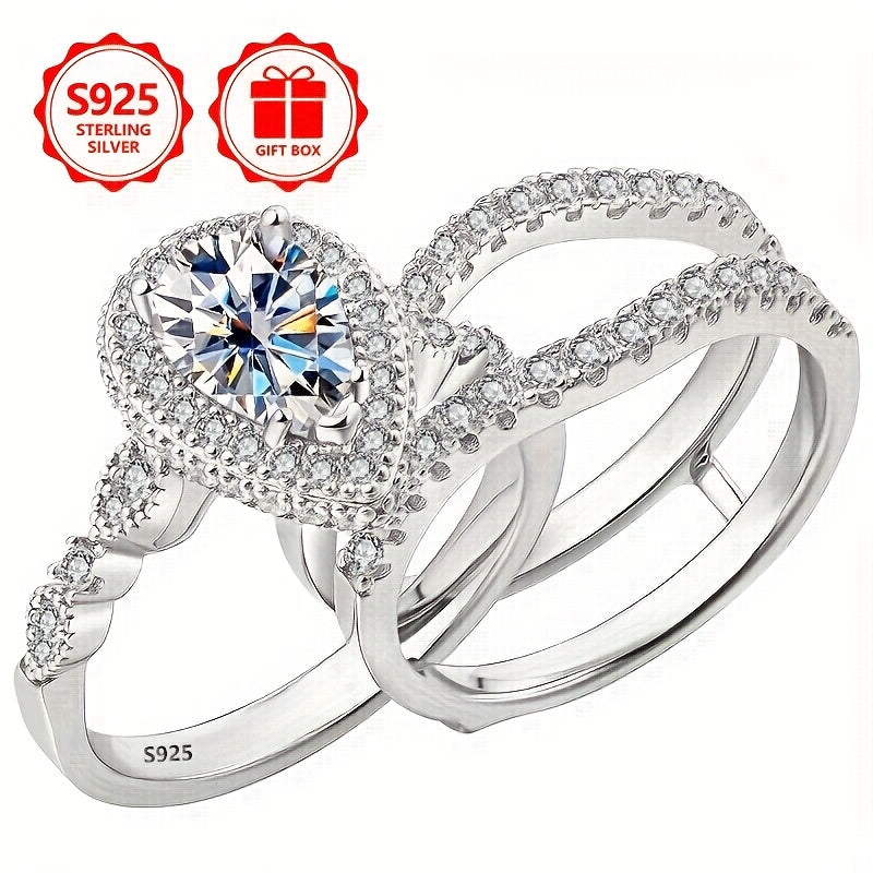 One 925 sterling Silvery Women's ring, stylish and unique design with embedded cubic Synthetic Zirconia, perfect for engagement or wedding, gift for friends or yourself