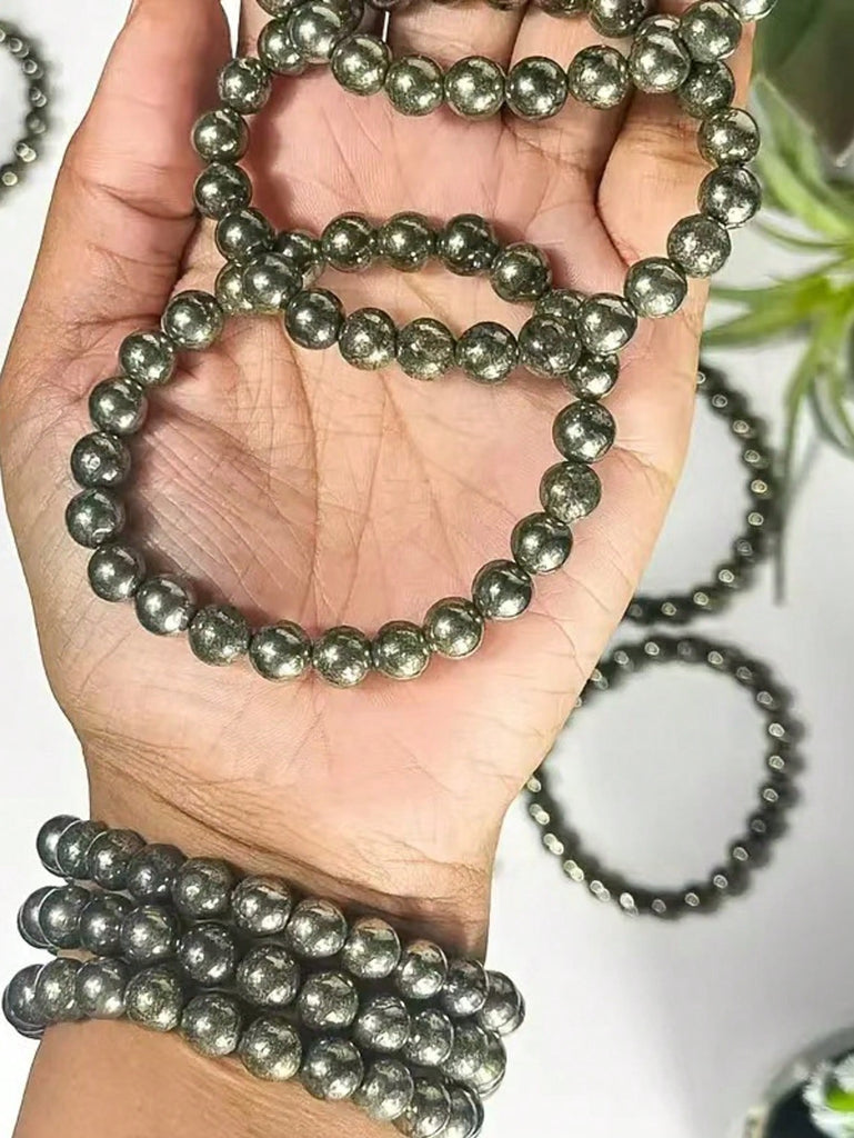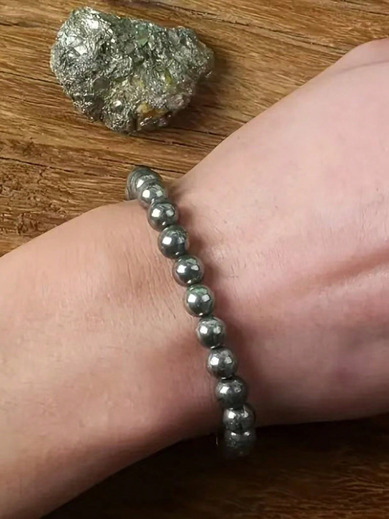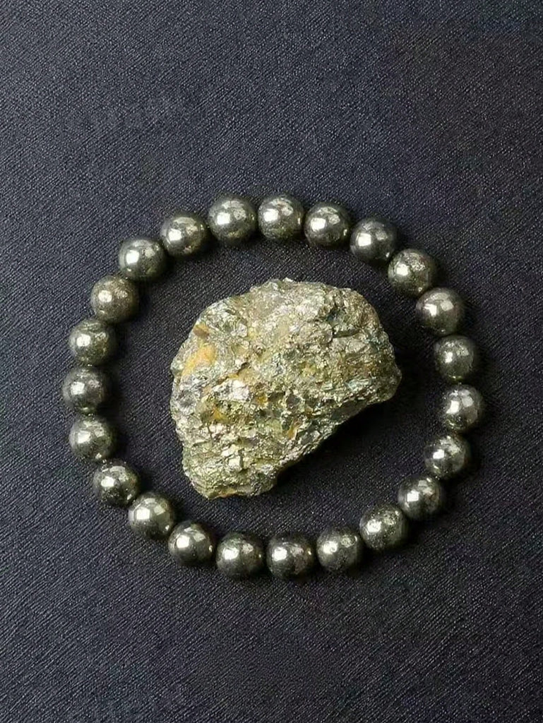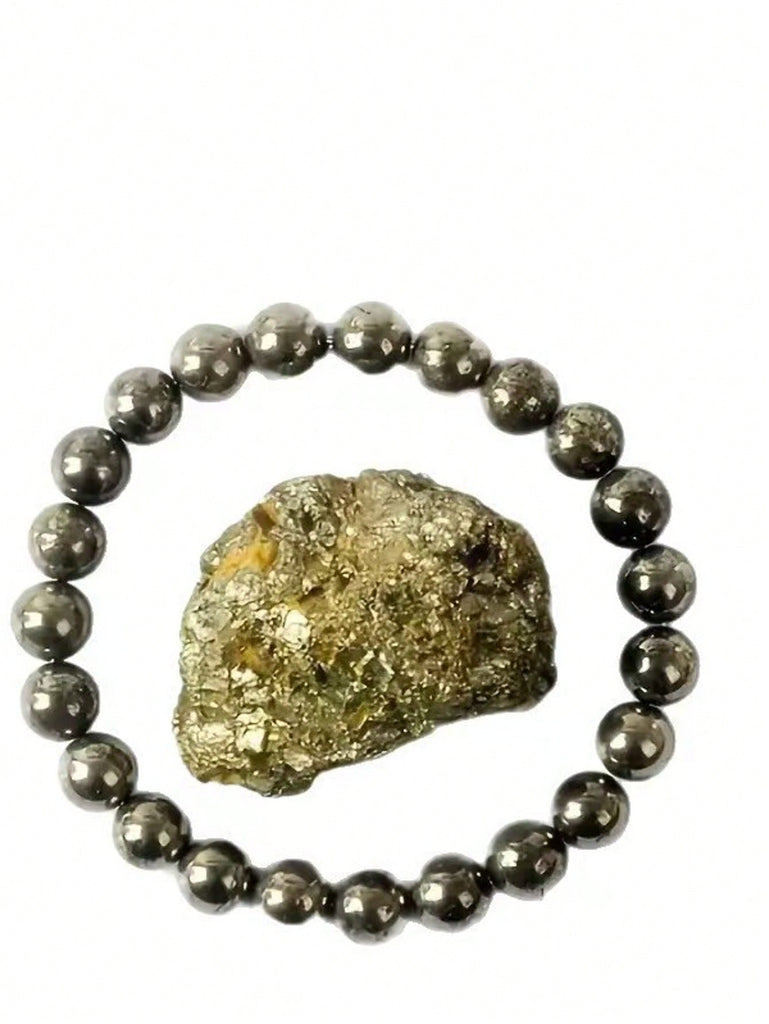 Original Energy Pyrite Bead Bracelet, Men's Natural Hematite Pyrite Stone Beaded Bracelet, Slimming & Health Jewelry, Bracelet, Natural Hematite Stone Bracelet, Non-Magnetic Beads, Charming Chakra Yoga Energy Beaded Bracelet, Accessories New Classic Blac