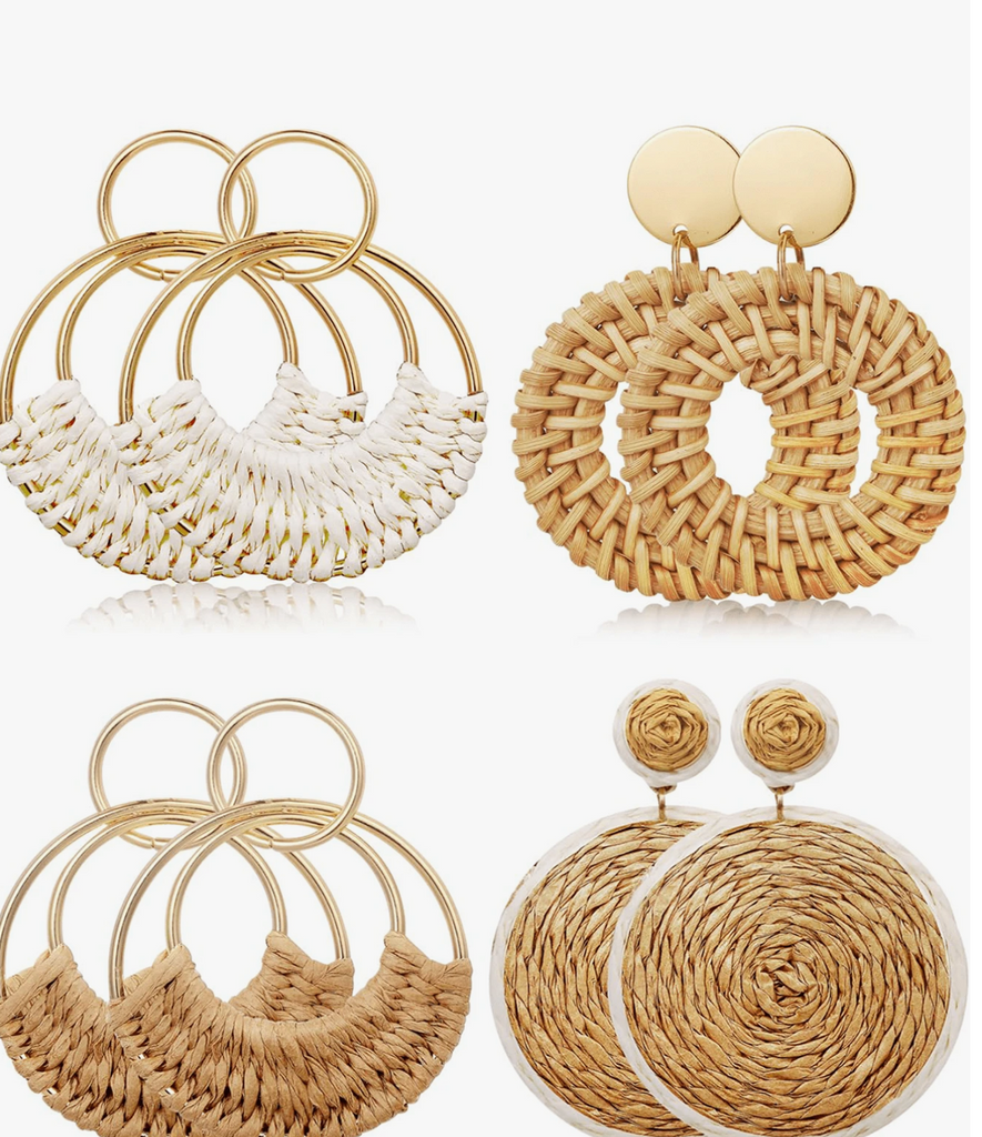Yanxyad Rattan Earrings For Women, Lightweight Geometric Statement Earrings For Women,