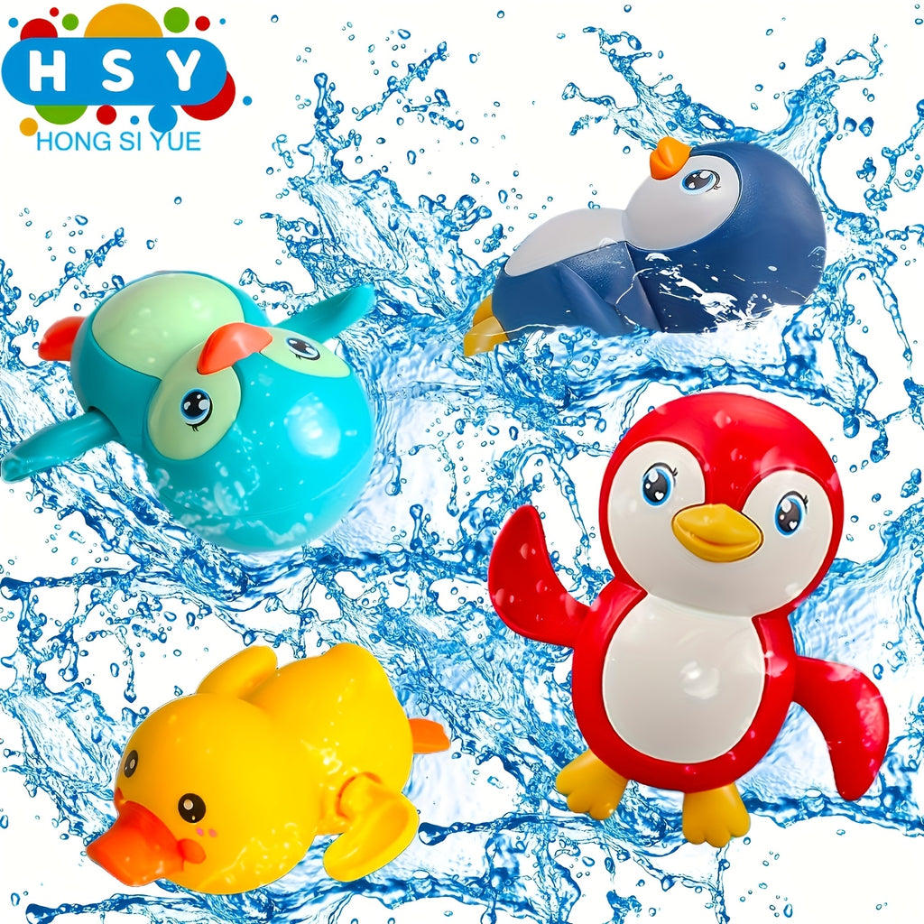 HONGSIYUE 4pcs Fun Baby Bath Toys Perfect for 1-3 Years Old Penguin Duck Bathtub Toy Pool Play Water Toy Best Swimming Shower Gift for Toddlers Boys and Girls, Black Friday One Christmas Halloween Present