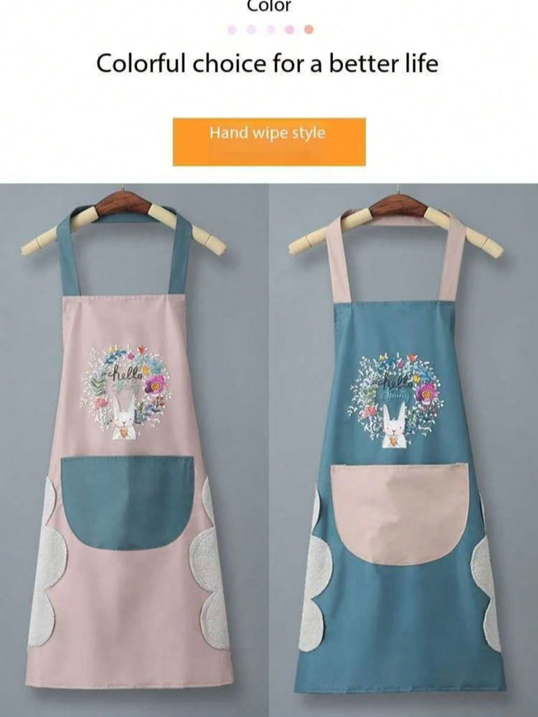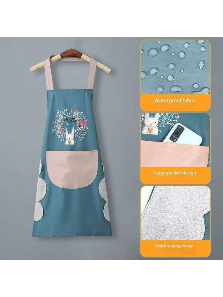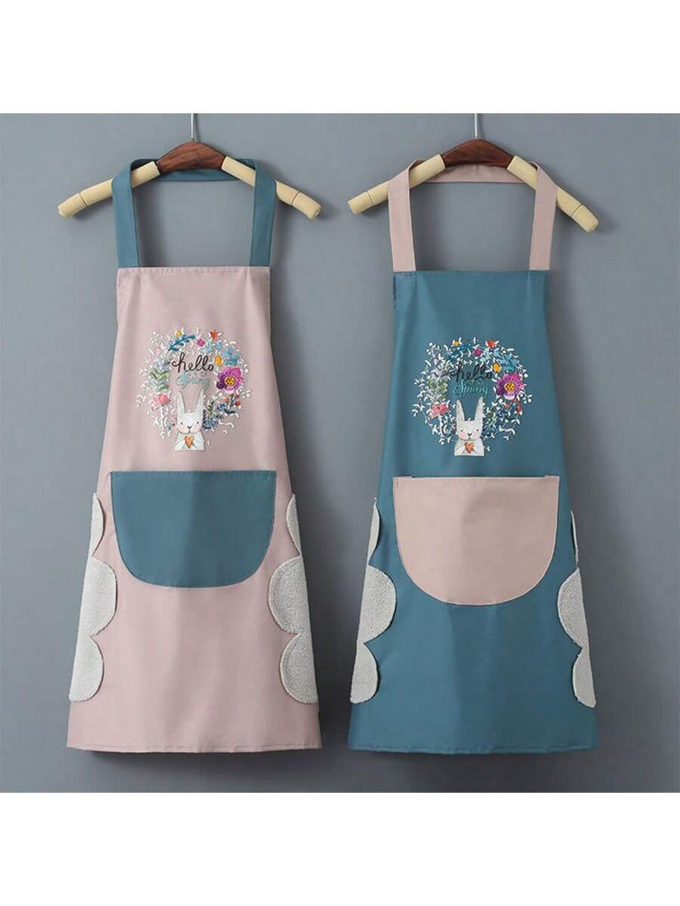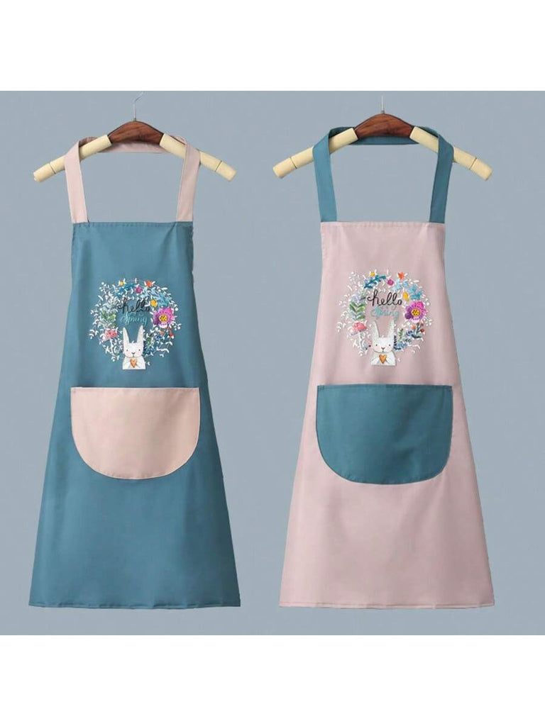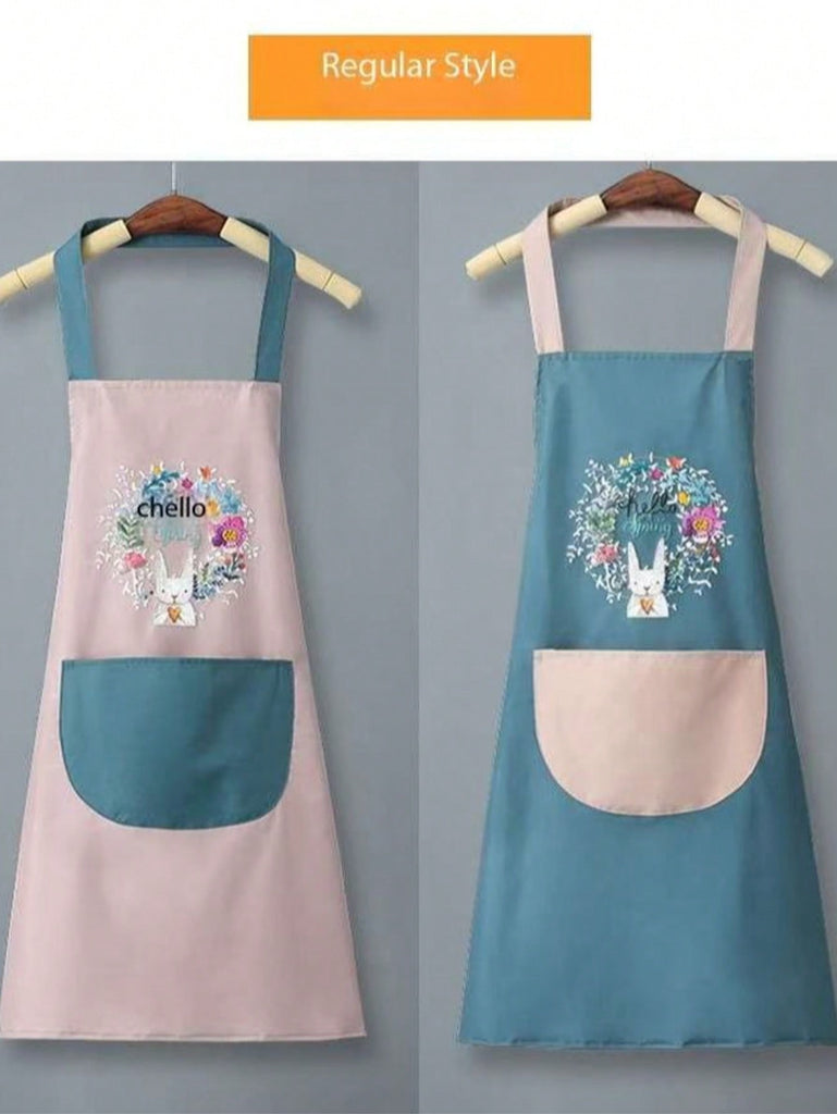 1pc Waterproof & Oil-Proof Cooking Apron With Cute Rabbit Pattern