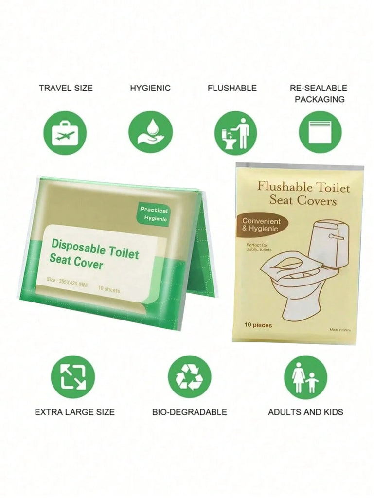 10 Pieces/Pack Disposable Toilet Seat Covers, Water-Soluble Portable Toilet Seat Covers, Portable Travel And Business Toilet Cushions, Toilet Covers, Essential Accessories For Airplane Travel, Camping, Bathroom Accessories, Bathroom Supplies Bag For Schoo