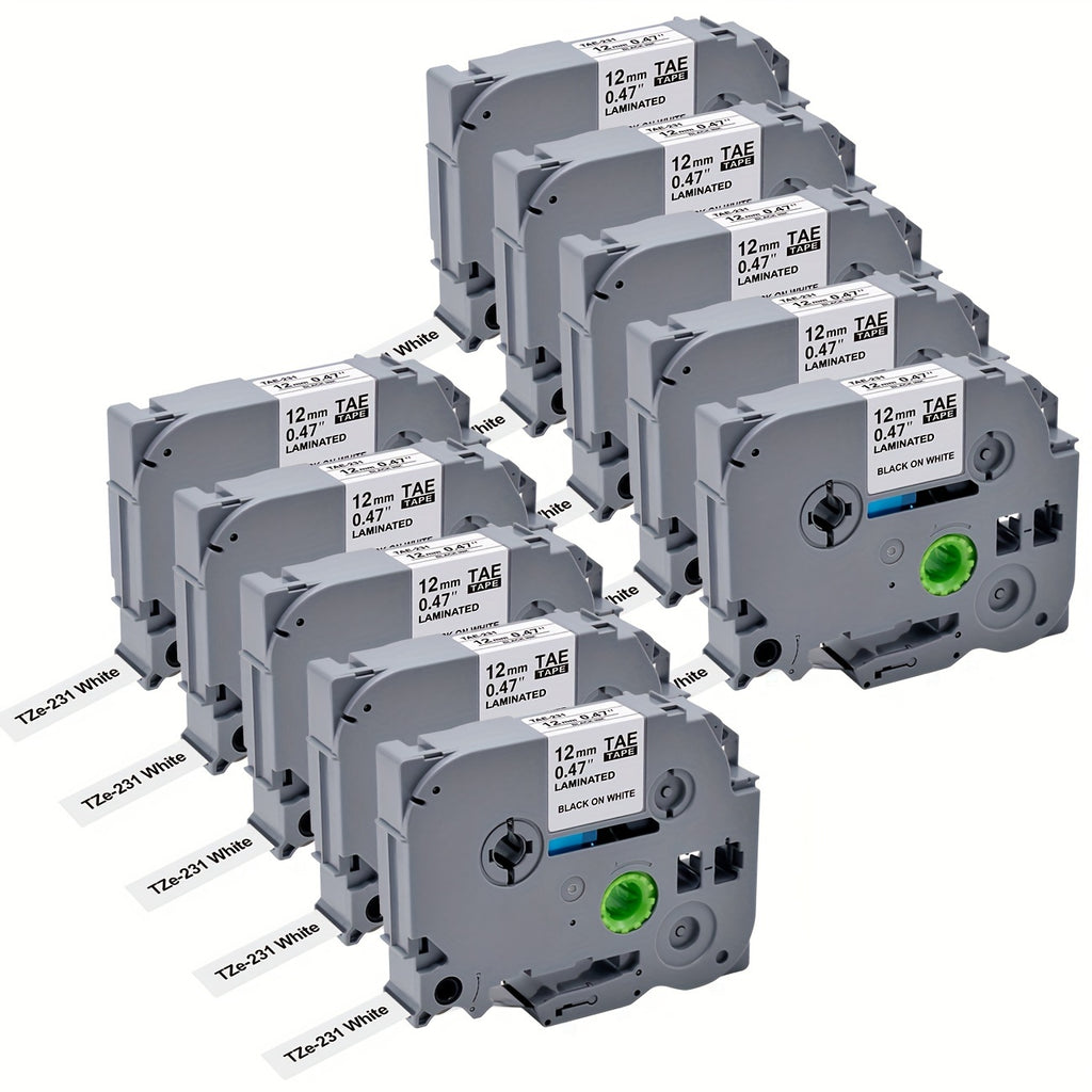 10pcs TZe-231 Replacement For Brother Label Tape 12mm Black On White TZe231 AZe-231 P-Touch 12mm 0.47 Labelling Tape Cassette For Brother P-Touch PT-H101C PT-P300BT PT-E100 E200 PT-H105 H45.36KG PT-H105
