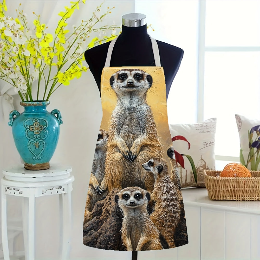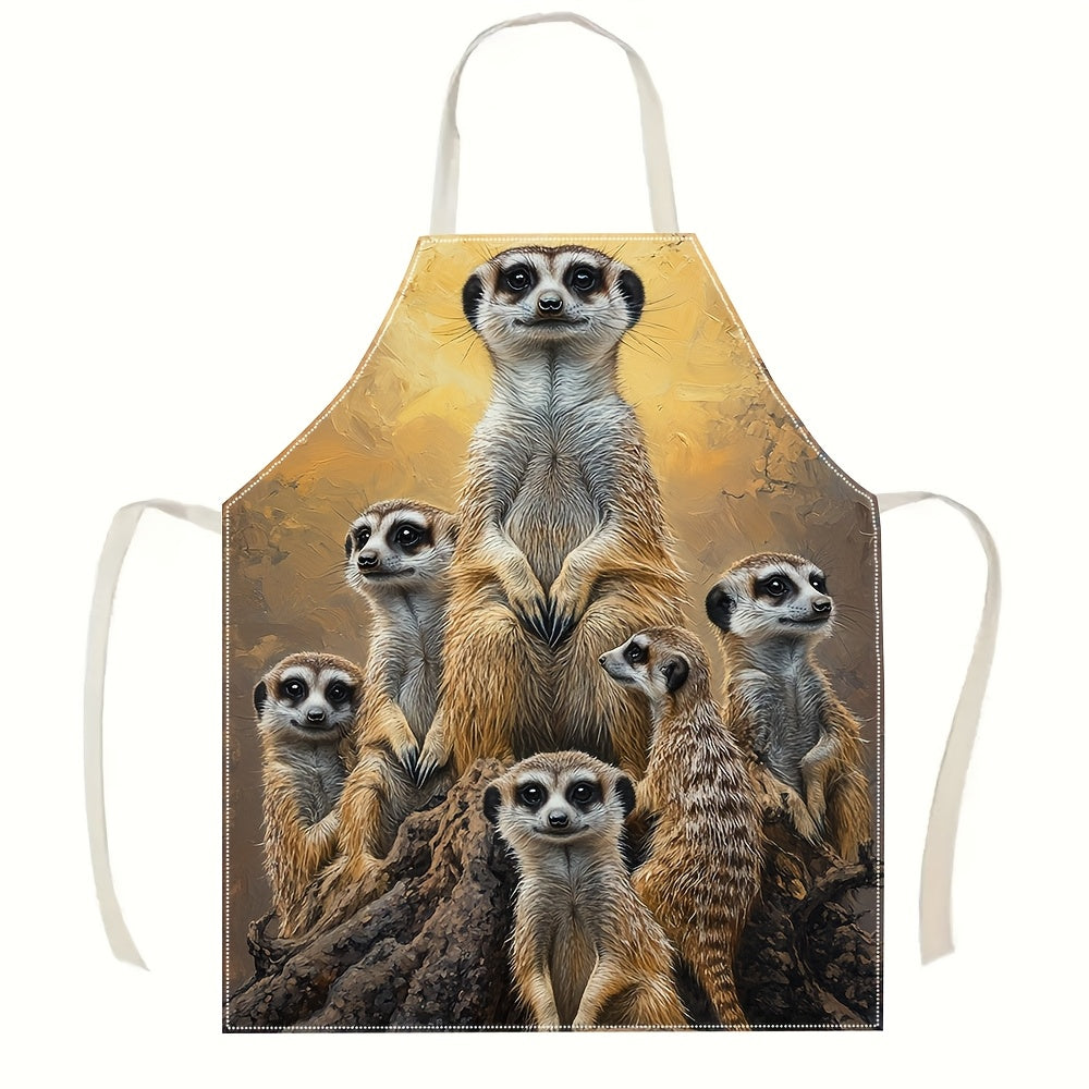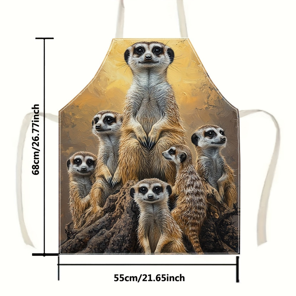 1pc 2D only a print stylish durable apron apron for gardening cooking Meerkats surrounded cooking kitchen chef aprons for women men home kitchen kitchen supplies(without embroidery) WQdL8489