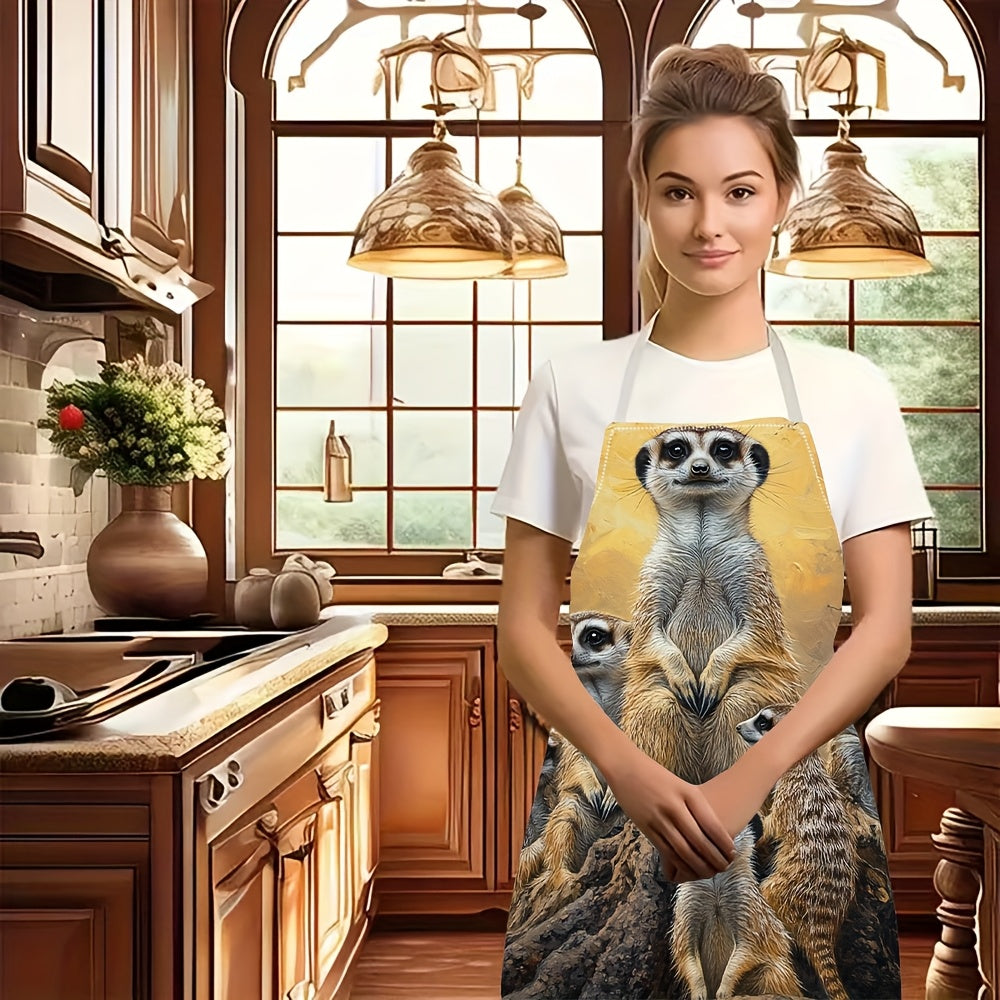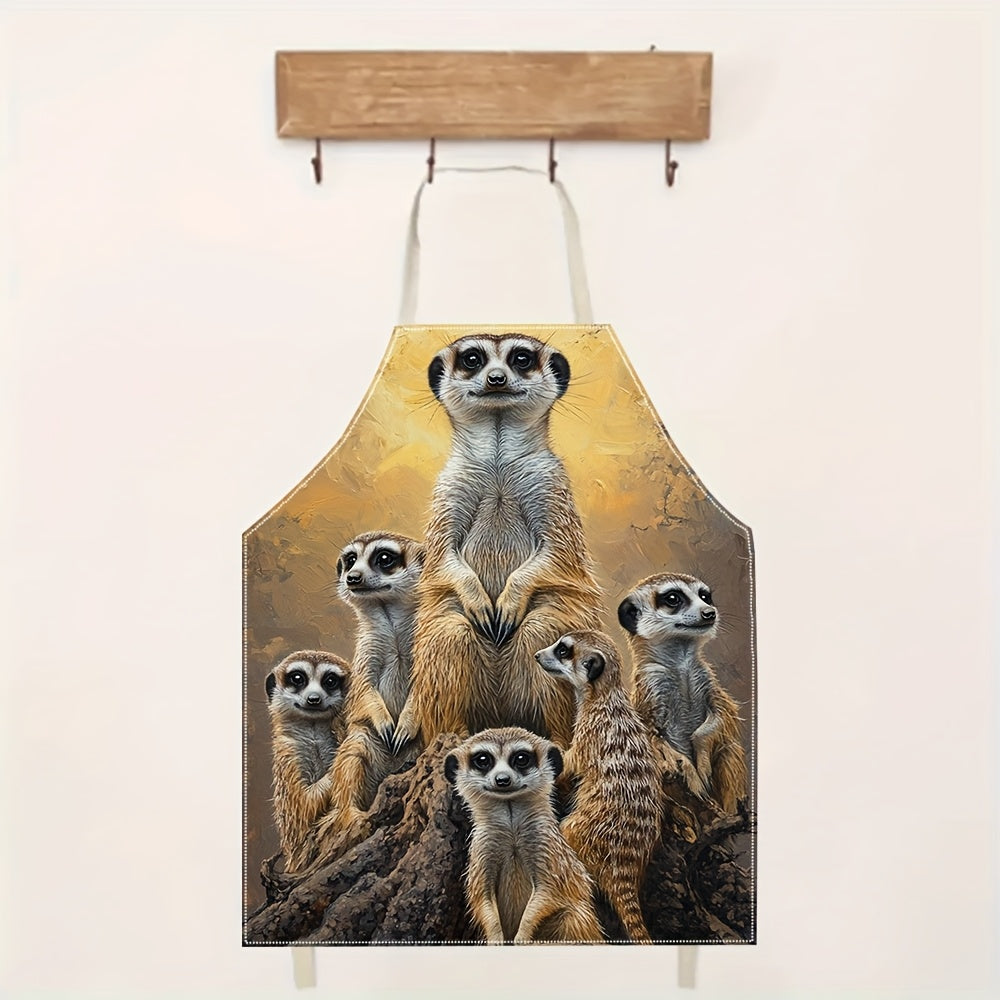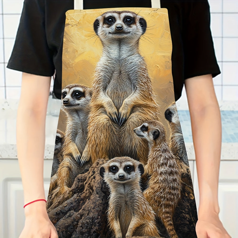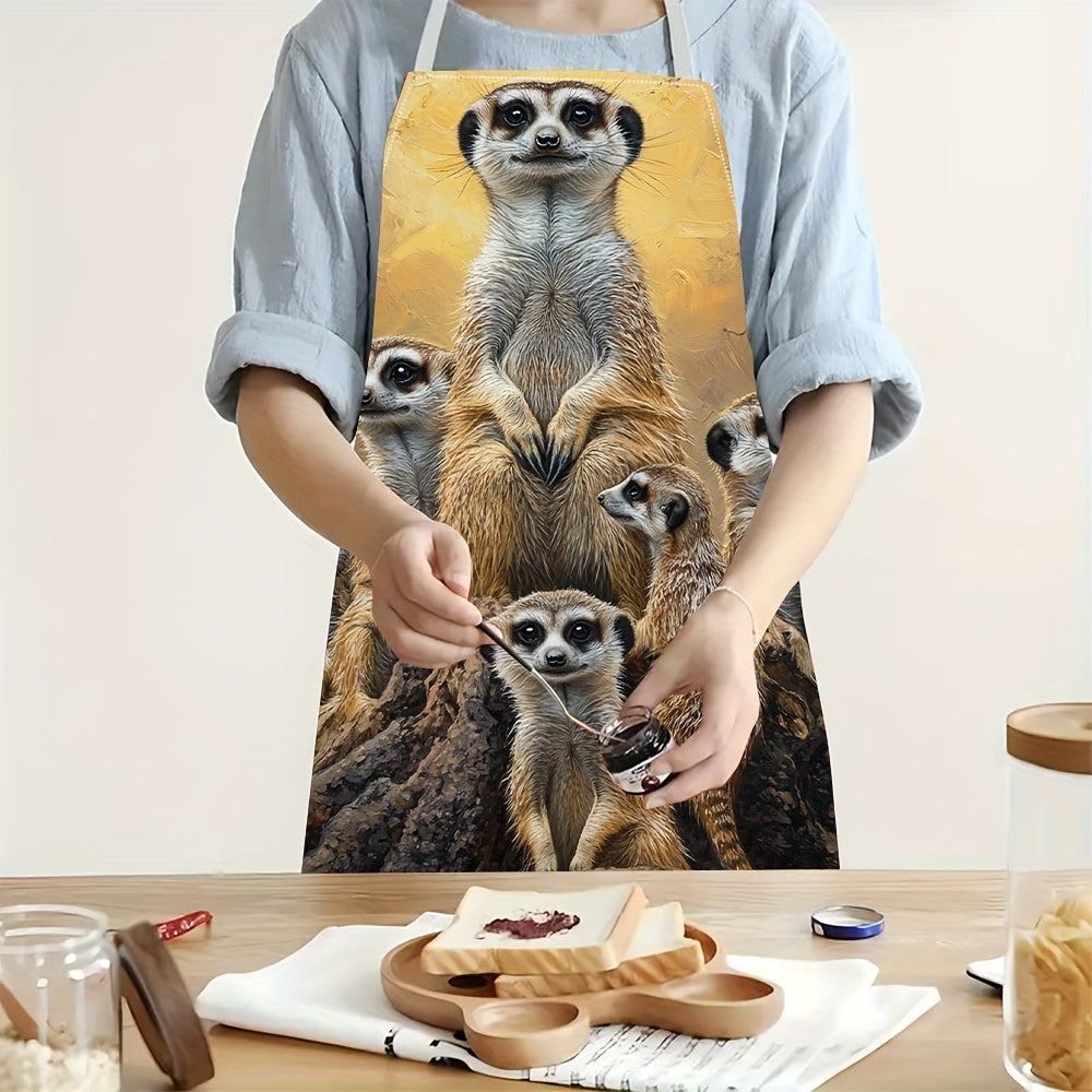 1pc 2D only a print stylish durable apron apron for gardening cooking Meerkats surrounded cooking kitchen chef aprons for women men home kitchen kitchen supplies(without embroidery) WQdL8489
