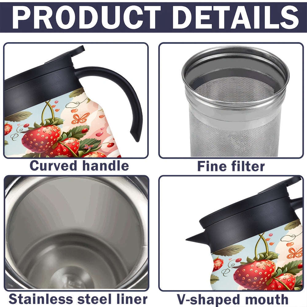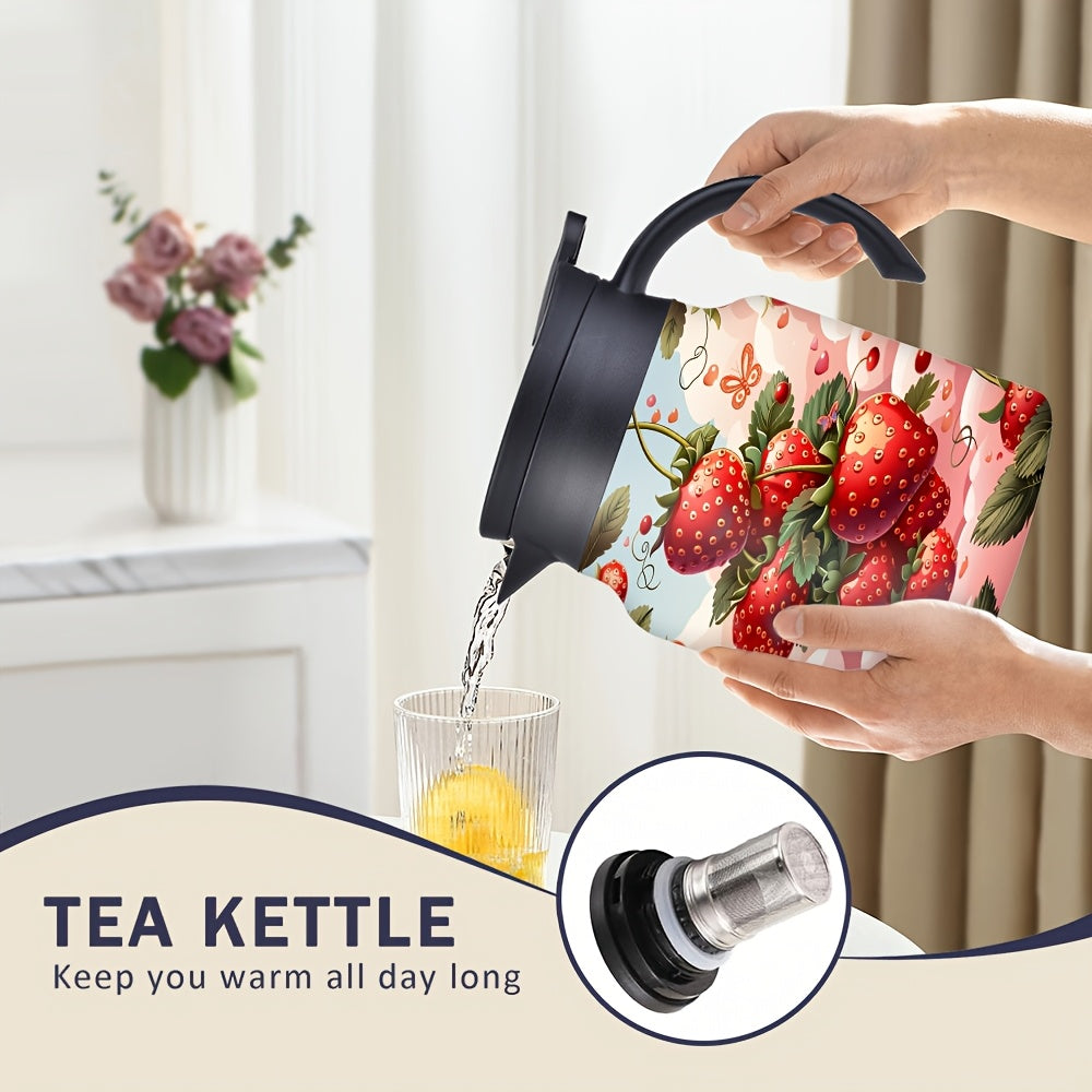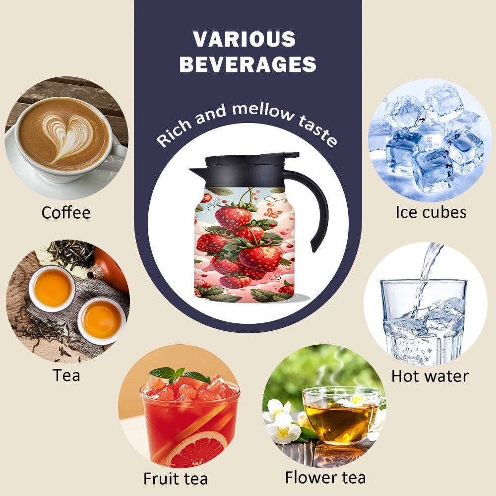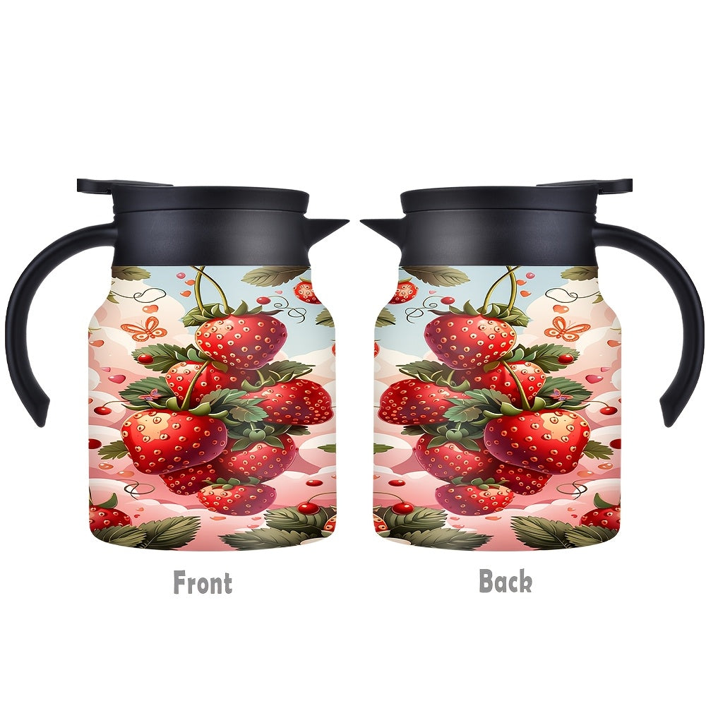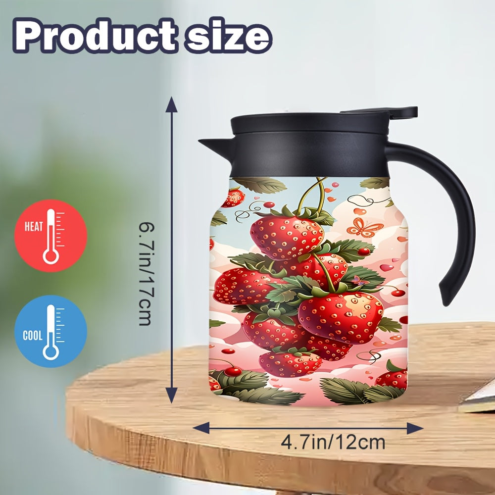 1pc/34oz/1000ml/Insulated Flask,Double Walled Insulated Coffee Pot,Stainless Steel Tea Kettle with Handle And Lid,Strawberry Pattern Design Perfect for Holiday Celebrations,Anniversary Gift Surprise,Valentine's Day Gifts