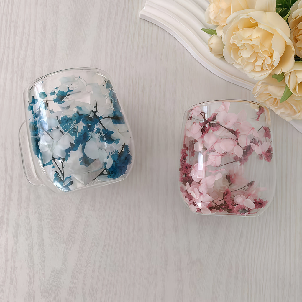 1pc Double-Walled Glass Cup with Real Dried Flowers - High Borosilicate Glass, Ideal for Coffee and Tea - Perfect for Home, Office, or Bar Use
