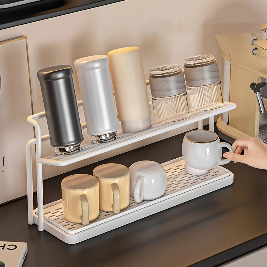 1pc Heavy-Duty Iron Cup Holder Organizer - Space-Saving Countertop Shelf with Drainage Tray, Sturdy Two-Tier Cup Rack for Kitchen, Office, Cafe - Easy-Clean Design for Coffee Mugs, Cups, Glasses - Ideal for Home & Commercial Use, Kitchen Organizer, Sleek