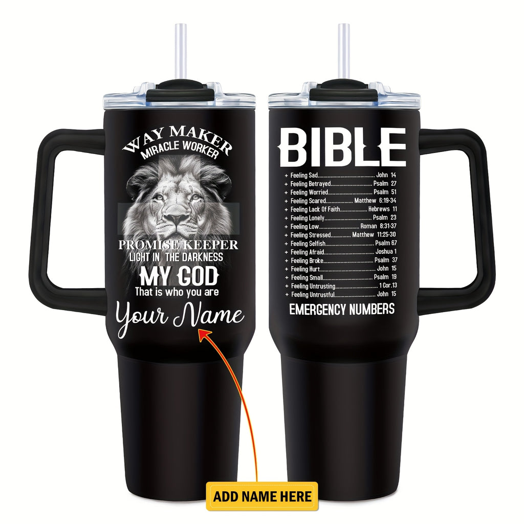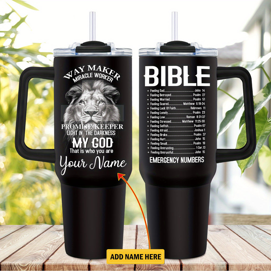 1pc Personalized Christian Tumbler Gifts for Christians on Christmas Birthday Valentines 40oz Stainless Steel Insulated Lion Religious Coffee Mug Travel Thermos Cup Gift for Men Women Bible Numbers Mugs, Animal Lovers Gifts for Men, Thanksgiving