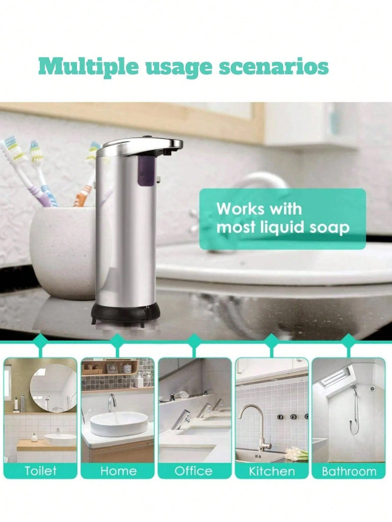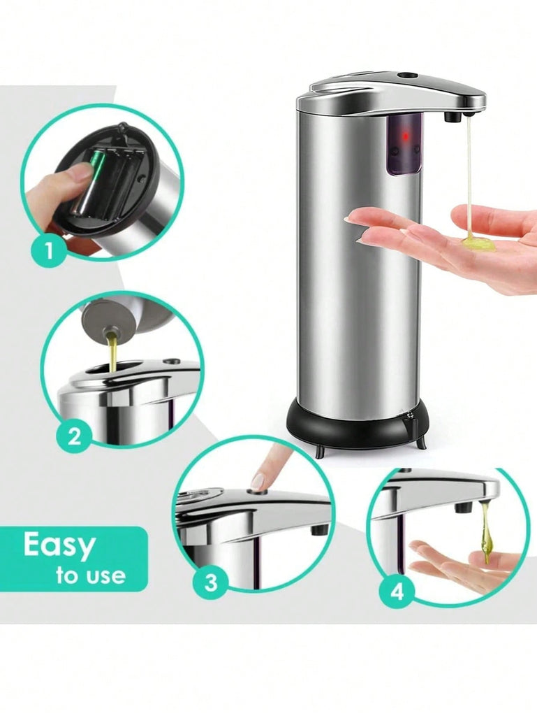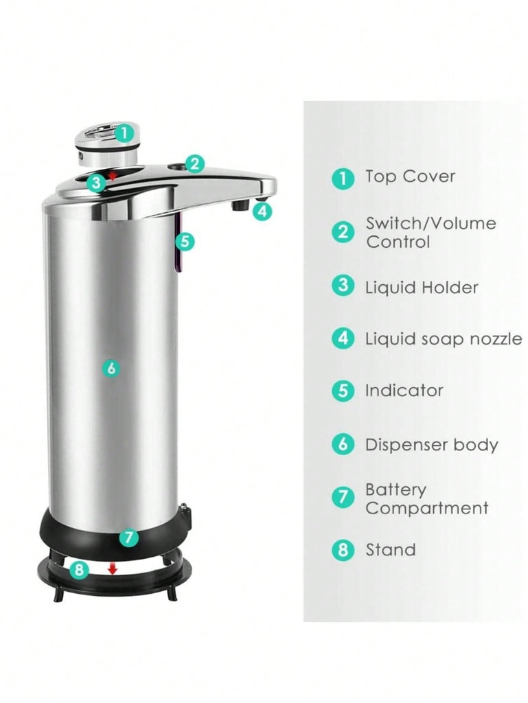 1pc Silvery Induction Soap Dispenser, Automatic Soap Dispenser, Mobile Induction Soap Dispenser For Home Bathroom Kitchen