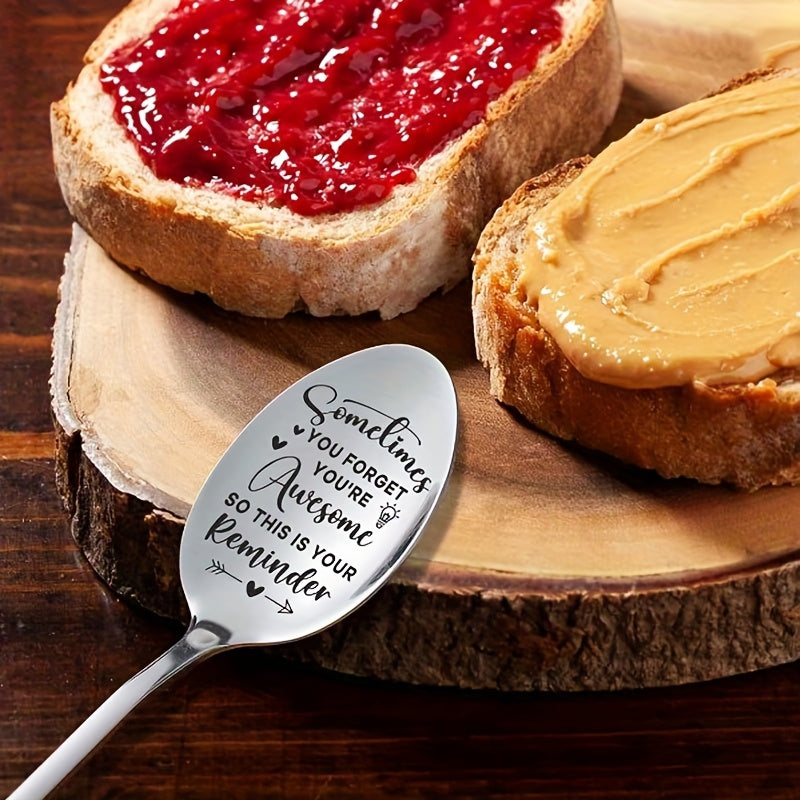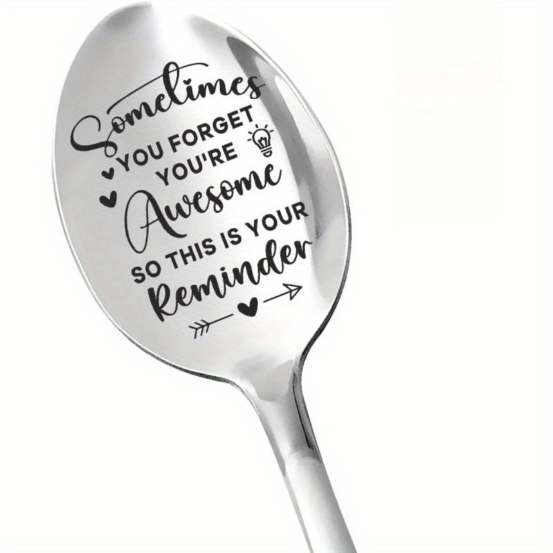 1pc "Sometimes You Forget You're Awesome" Engraved Stainless Steel Spoon - Funny Coffee & Ice Cream Spoon with Inspirational Message, Perfect Gift for Friends, Coworkers, Men & Women, Birthday or Christmas Present, Coffee Spoon