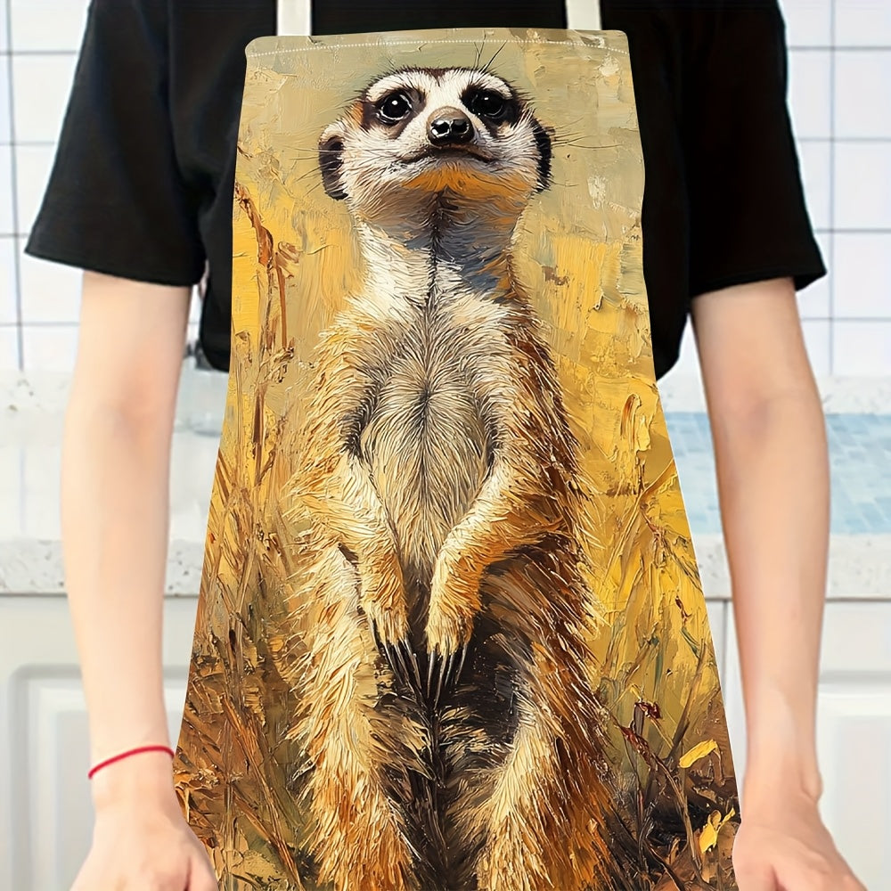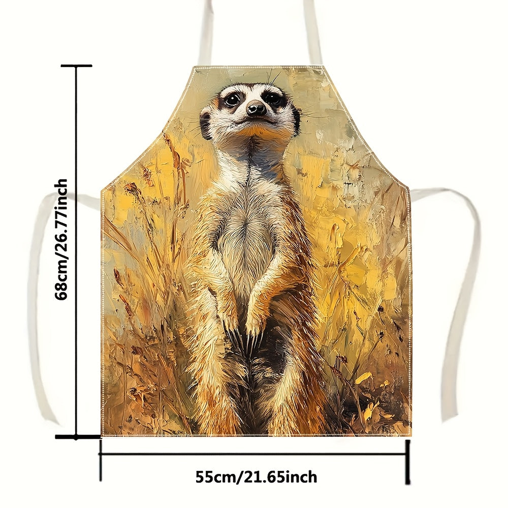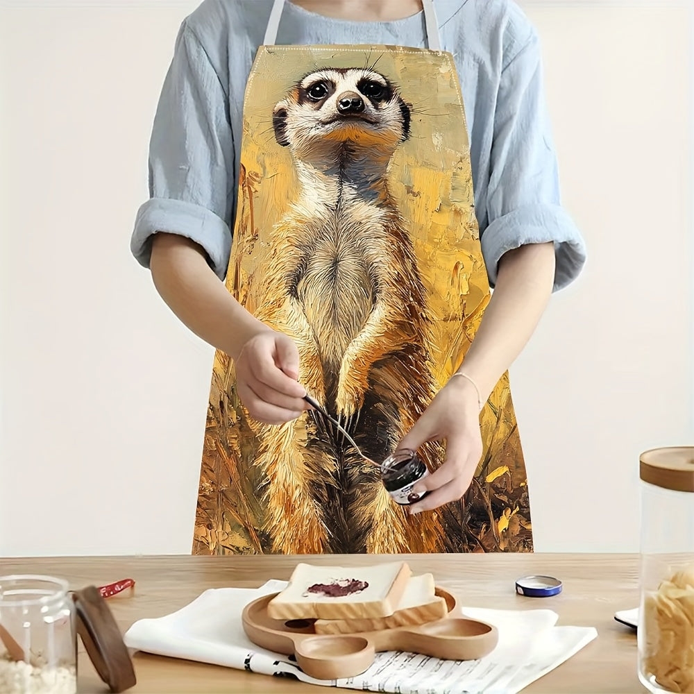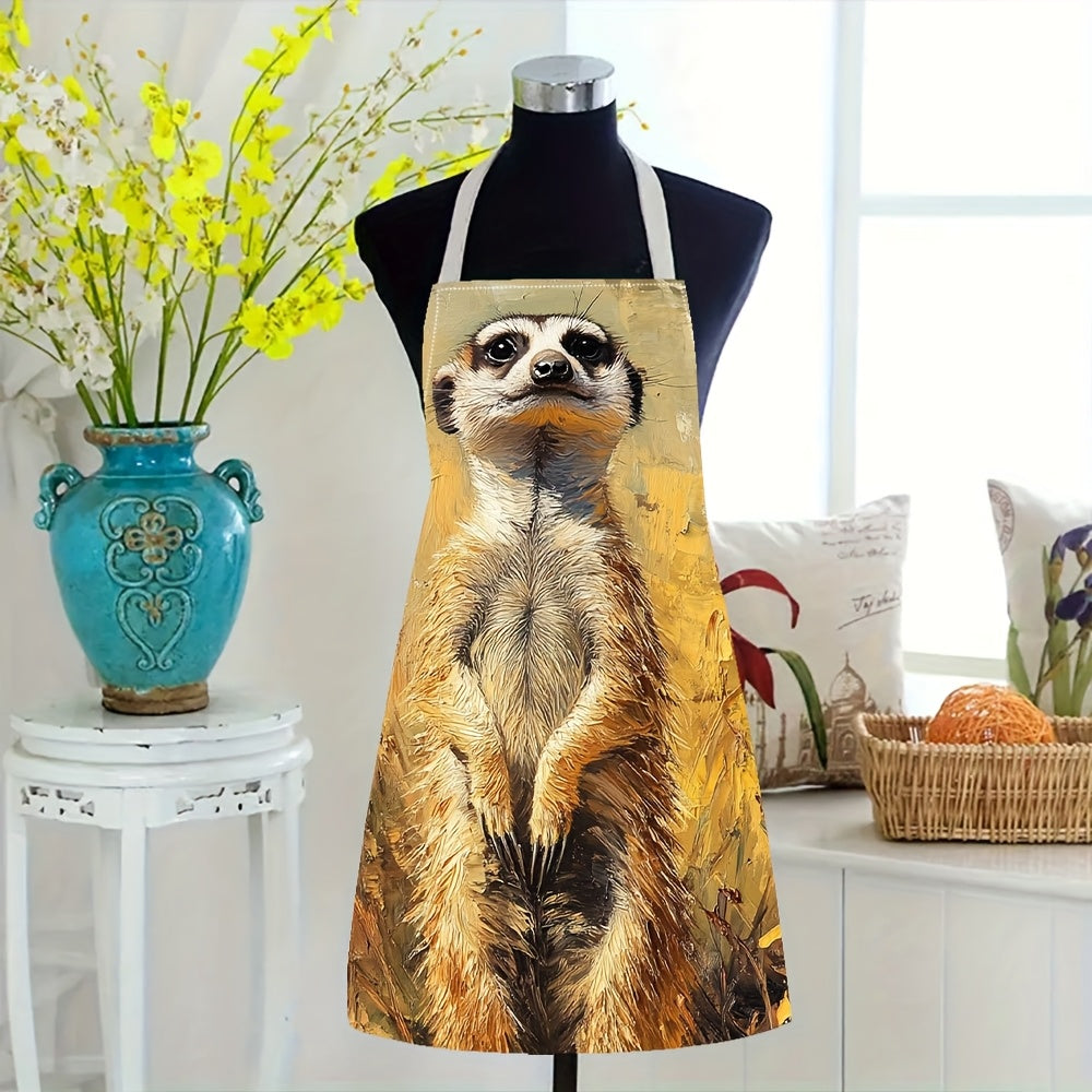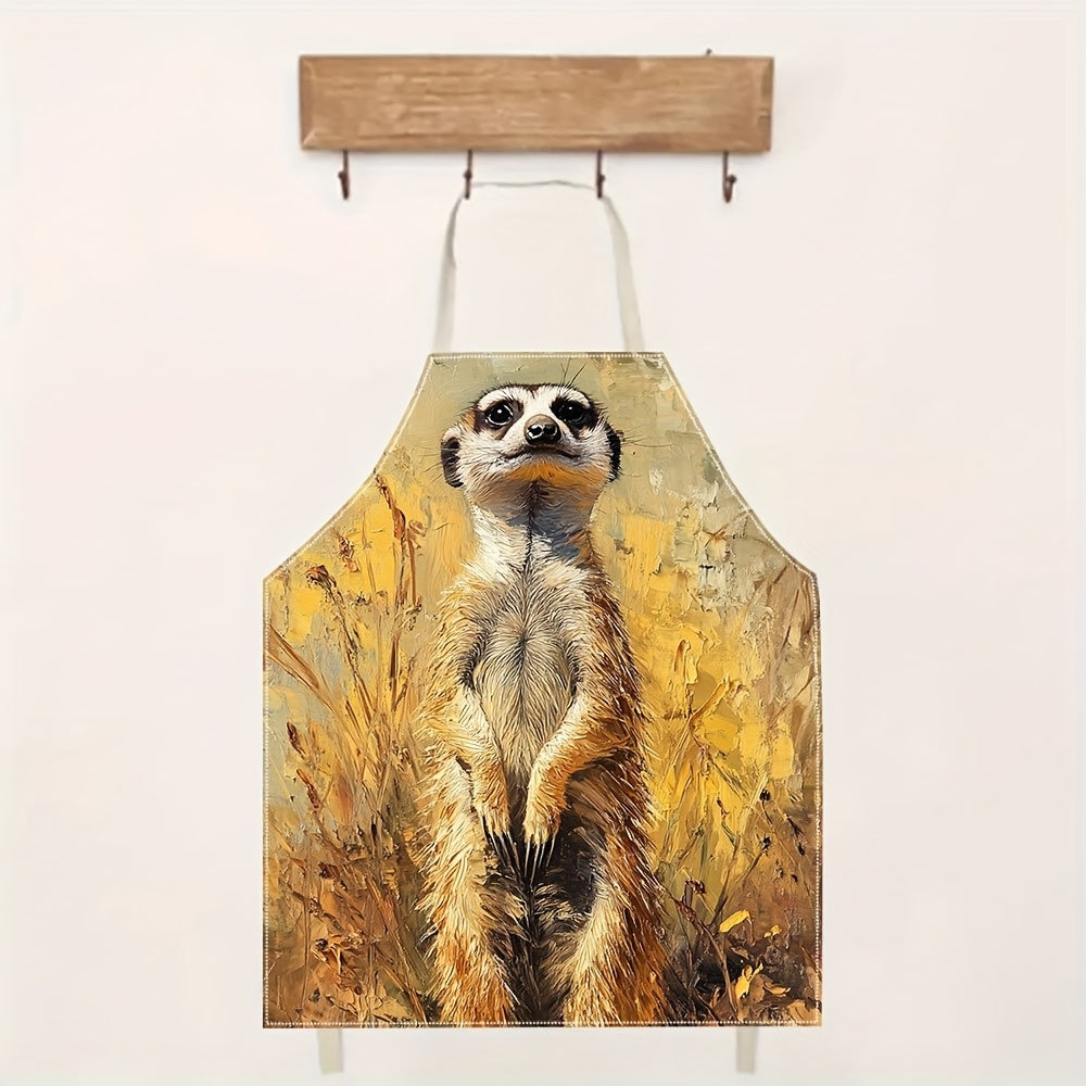 1pc Stylish Meerkat Linen Apron - Durable, Over-the-Shoulder Design for Gardening & Cooking, 68.0x54.99 cm, Home Cleaning & Kitchen Use, Kitchen Apron|Playful Design|Adjustable Strap, Meerkat Kitchen Accessories