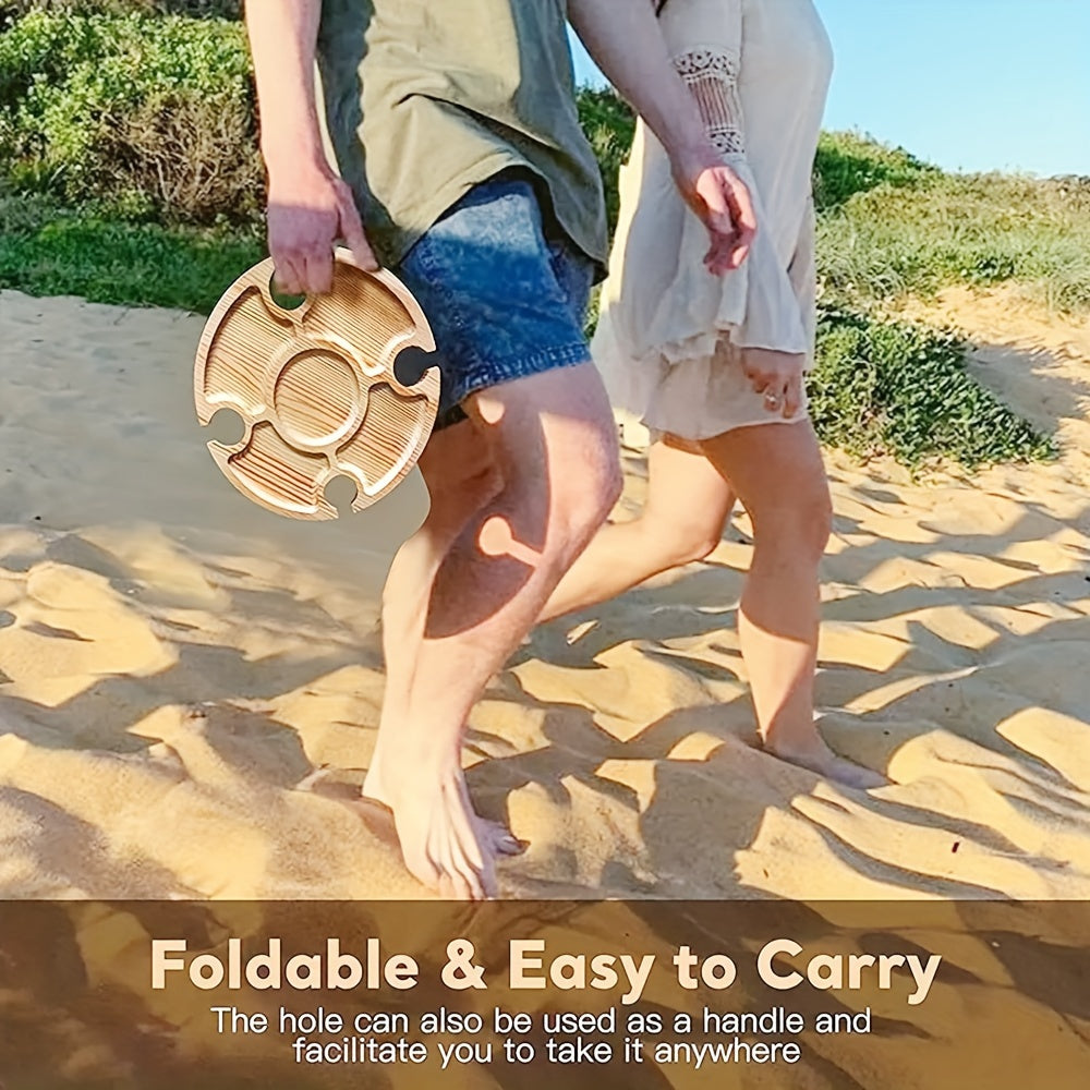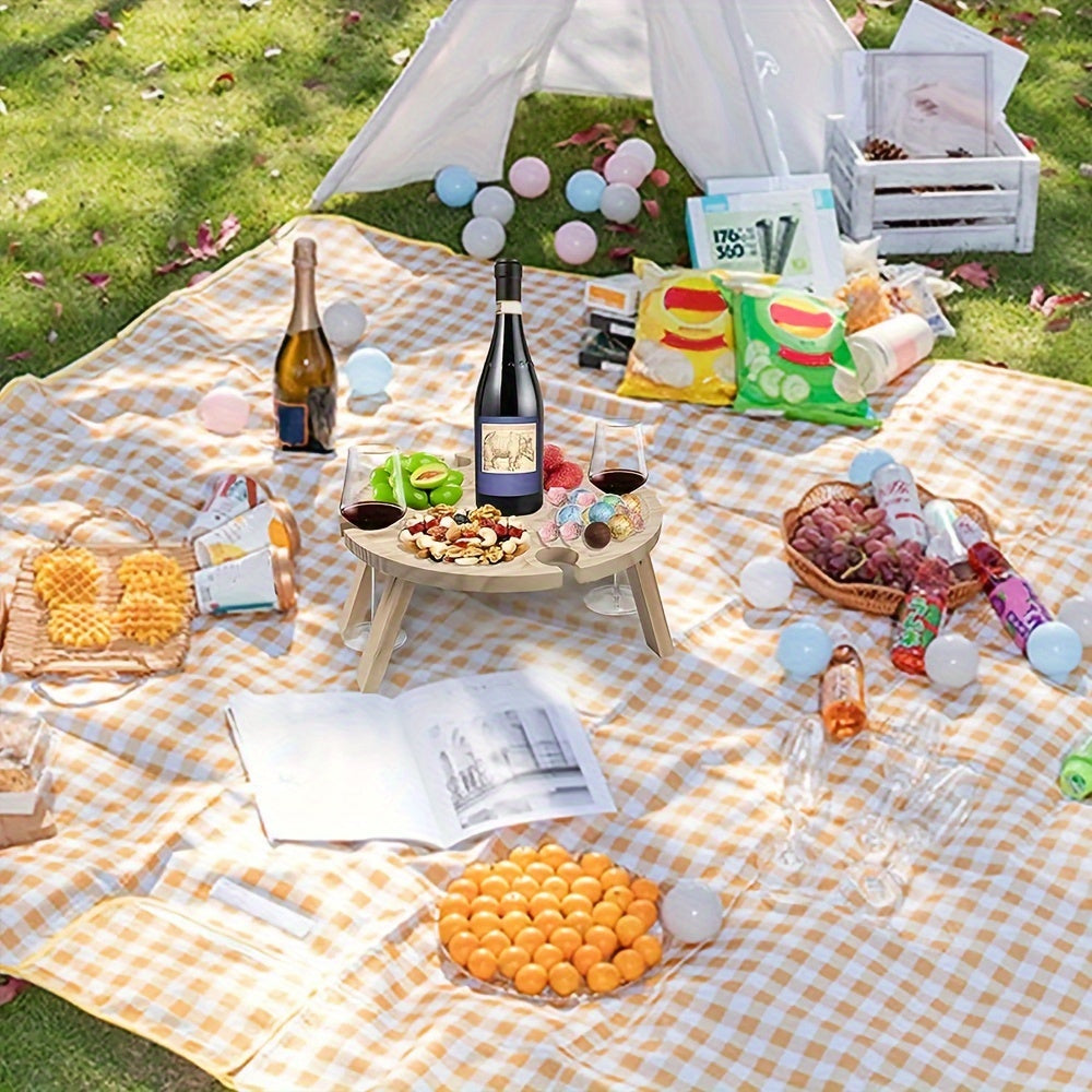 1pc Wooden Outdoor Convenient Folding Table, Casual Snack Table Fruit Table Wine Holder Table, Beach Barbecue Table, Picnic Table, Suitable For Outdoor Activities Camping Gathering Party, Birthday Gift Christmas Gift