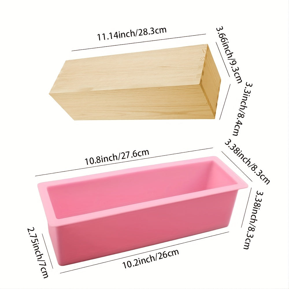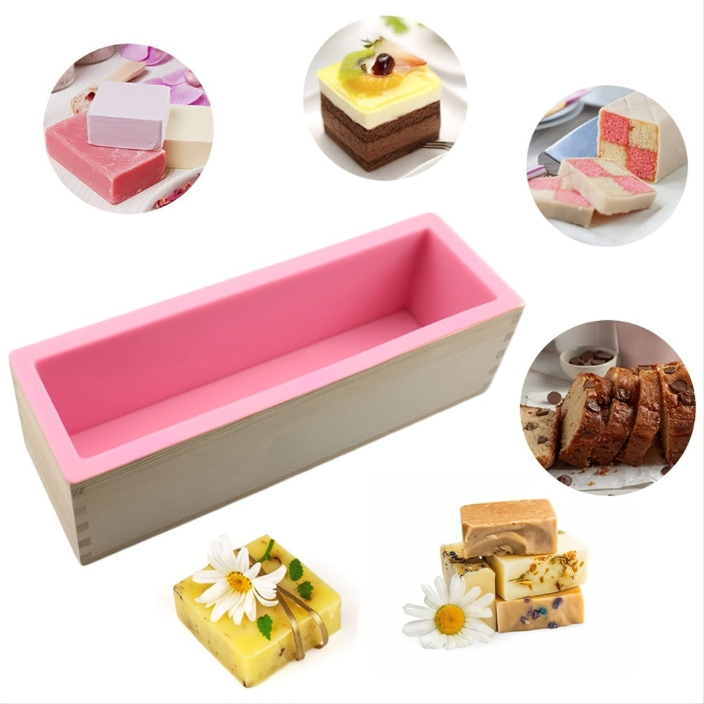 1pcs 42oz Rectangle Silicone Soap Mold - Rectangle Bread Mold Handmade Soap Making Tool With Wooden Box For DIY Soap Cake Making