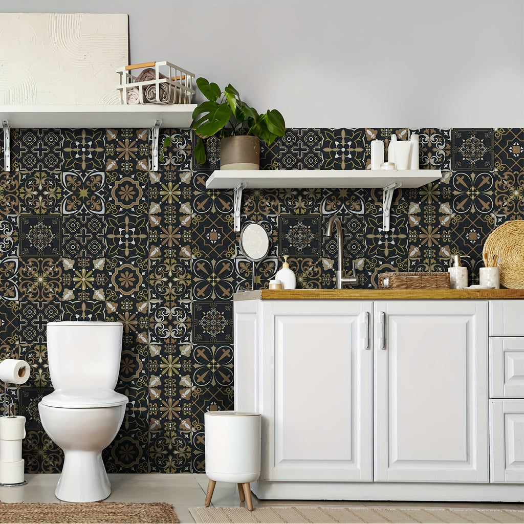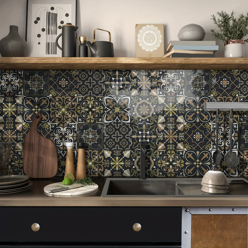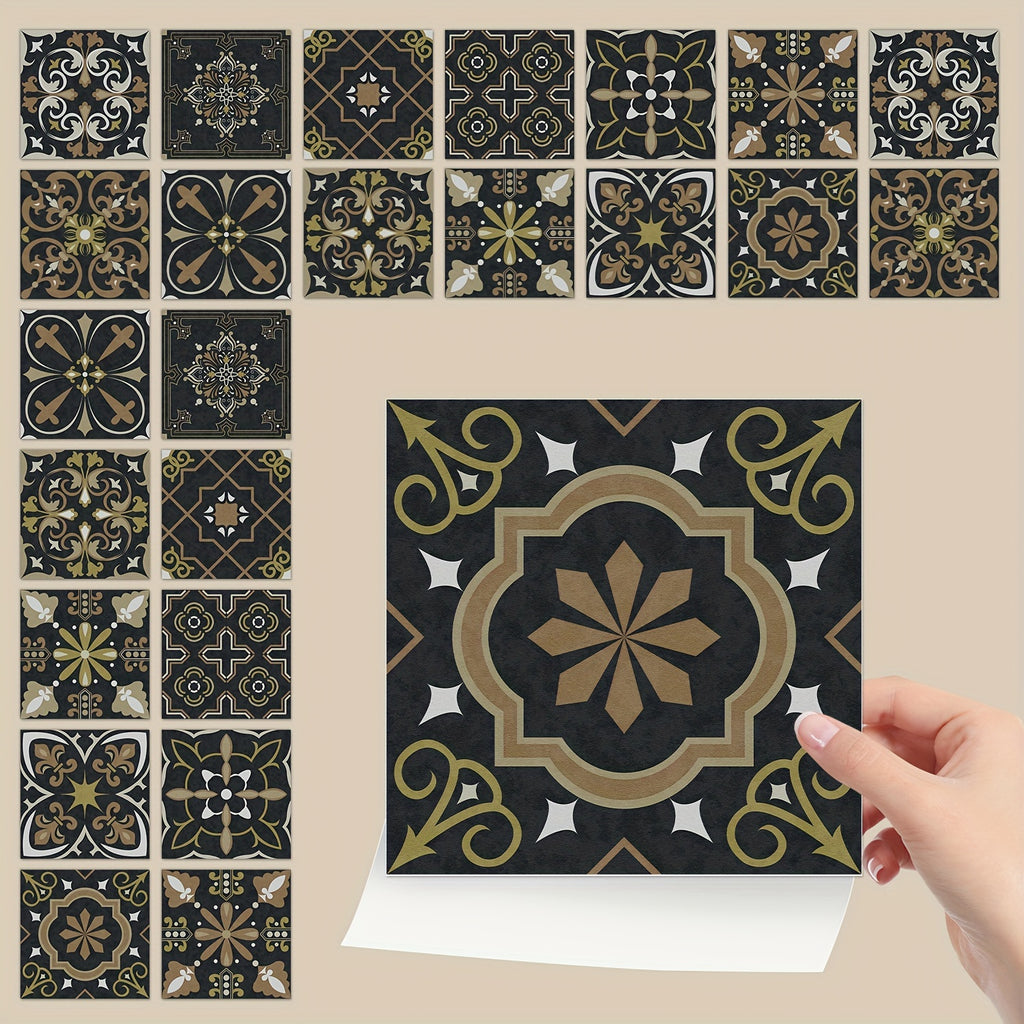 24pcs Bohemian Floral Peel & Stick Wall Decals - Waterproof, Heat-Resistant Vinyl Tiles for Living Room, Kitchen, and Home Decor, Flower Run, Self-Adhesive, Wall Decorations
