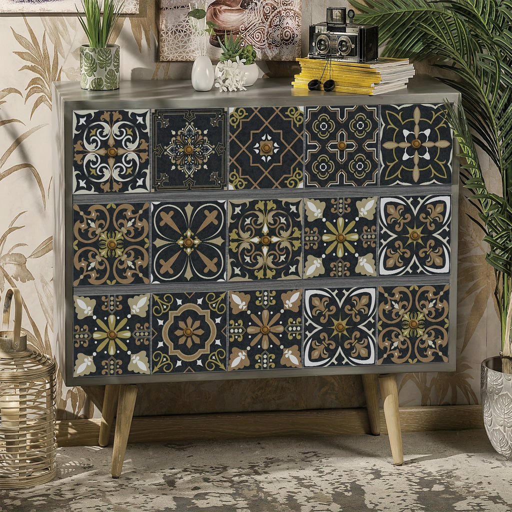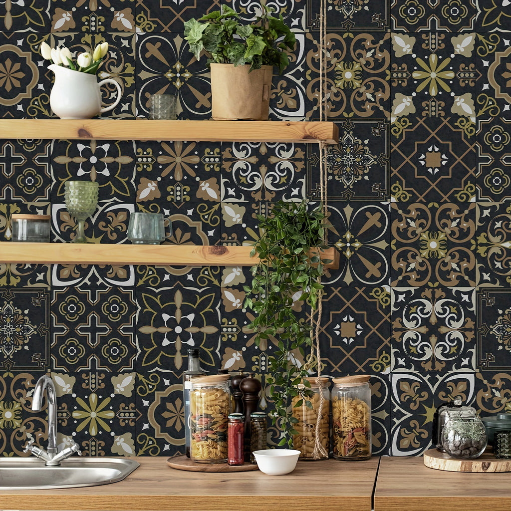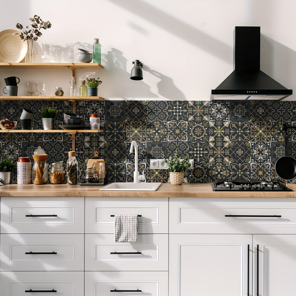 24pcs Bohemian Floral Peel & Stick Wall Decals - Waterproof, Heat-Resistant Vinyl Tiles for Living Room, Kitchen, and Home Decor, Flower Run, Self-Adhesive, Wall Decorations