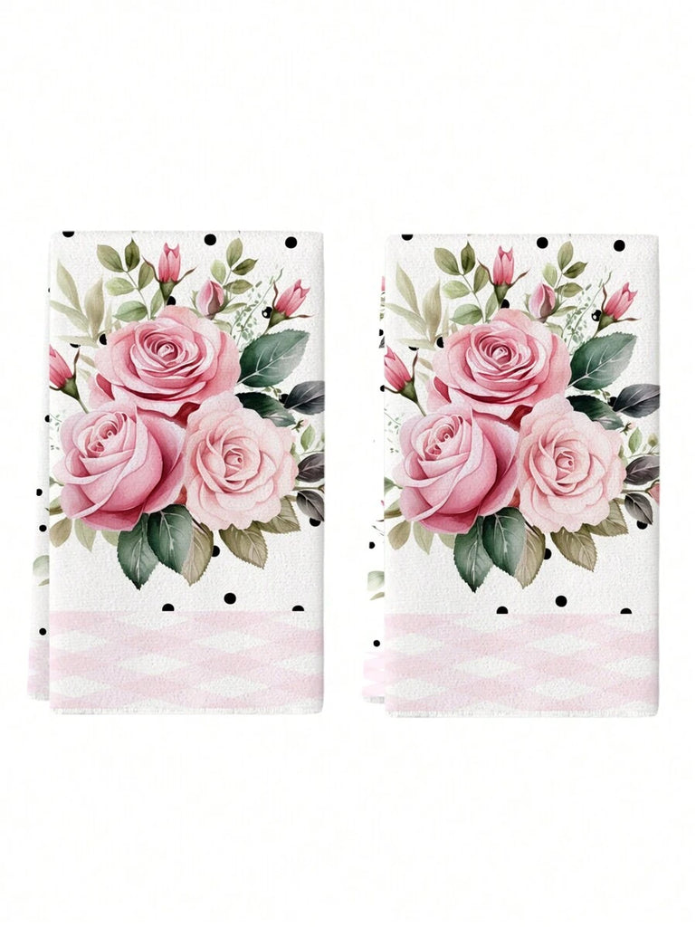 2pcs Pink Rose Sunflower Lemon Hand Towels Elegant Flower Rose Comfortable Soft Polyester Microfiber Towels For Home Hotel Bathroom