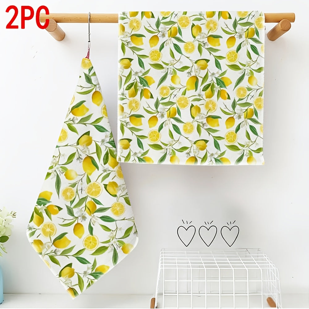 2pcs Square Hand Towels Featuring a Lemon Floral Design, Exquisite Towels Suitable for Washing Your Face, Drying Hands, And Perfect for Use in The Kitchen, Living Room, Dining Table, Etc. Ideal for Home Use, Graduation Gifts, Holiday Parties