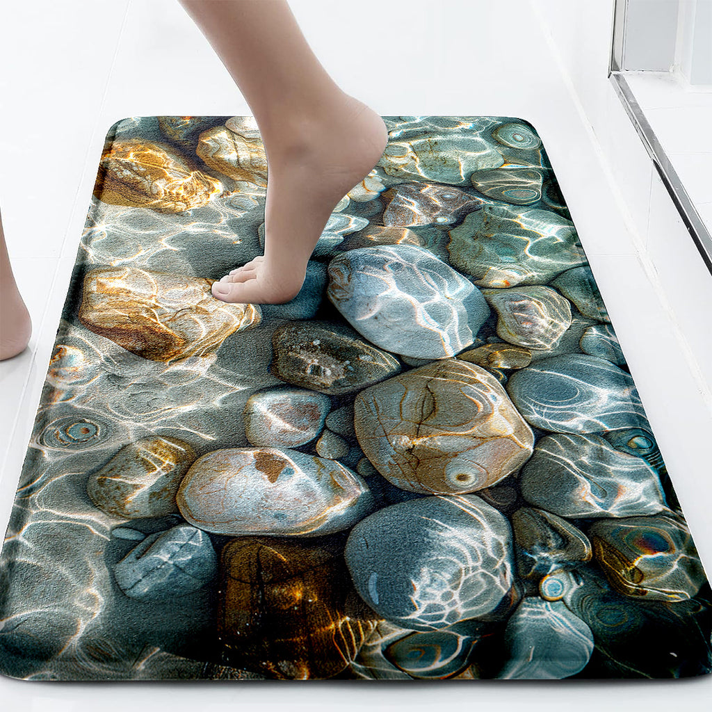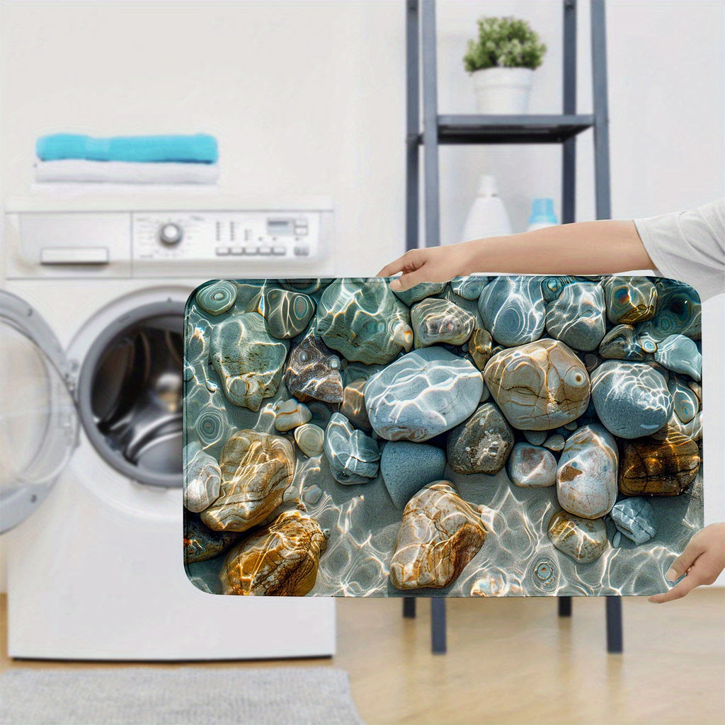3pcs River Bed Stone Print Bathroom Mat Set, Thickened Non-slip High Quality Machine Washable Mat, Bathroom Decorations, The Set Includes Bath Blanket, Bath Mat and Toilet Lid Cover Spring Summer Valentine'S Day Christmas Decoration