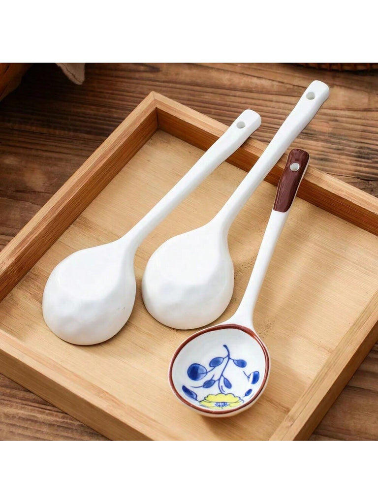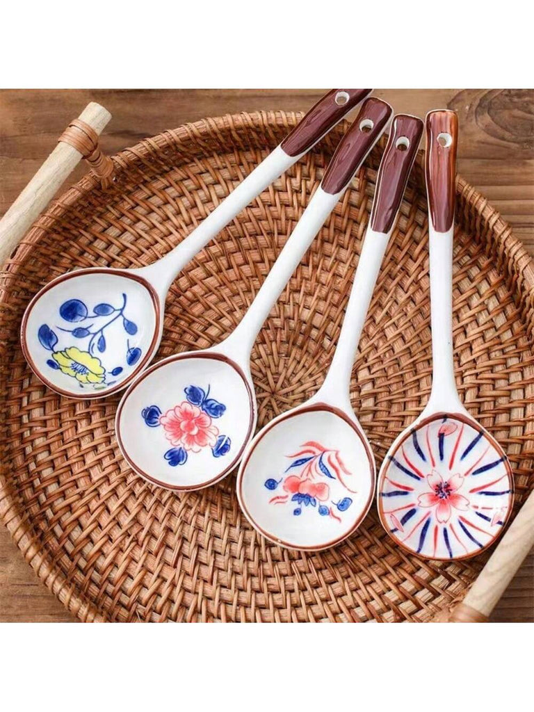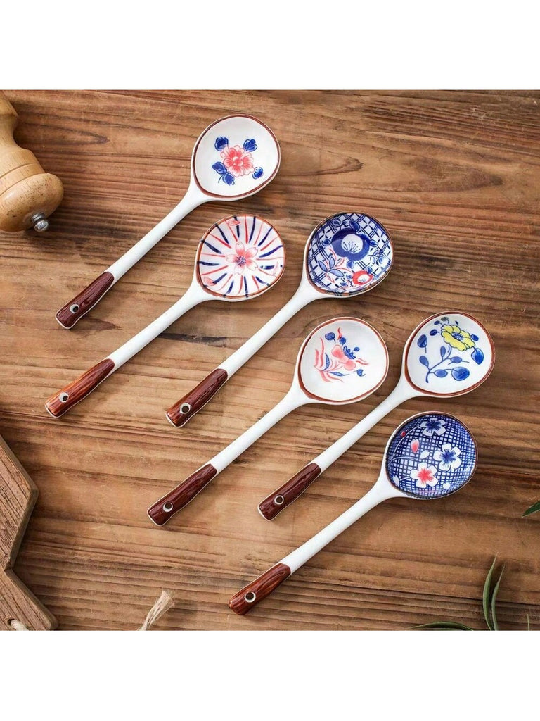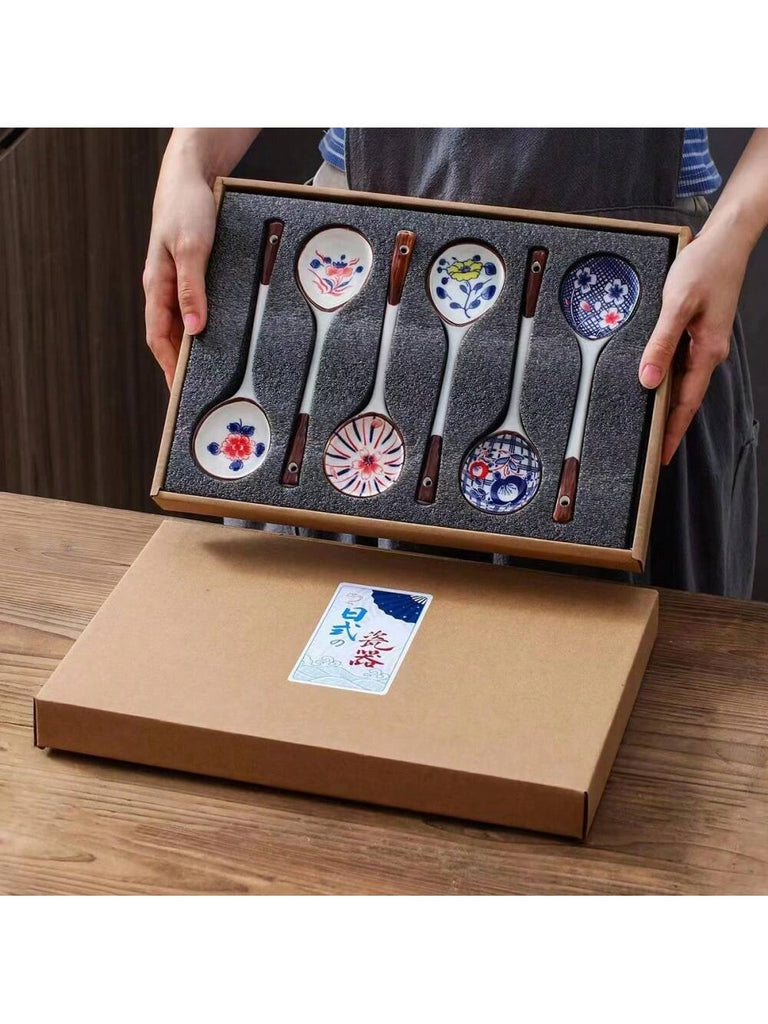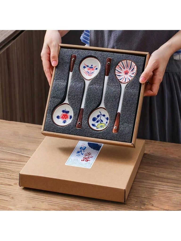 4/6pcs Creative Ceramic Dessert Spoon Set, Soup Spoon, Ceramic Soup Spoon, Creative Milk Spoon, Noodle Spoon, Modern Stirring Spoon, Reusable Spoon, Washable Dessert Spoon, Gift Box Packaging, Suitable For Gifting During New Year For Tableware Renovation