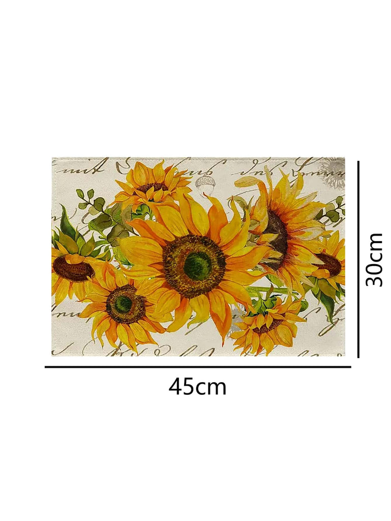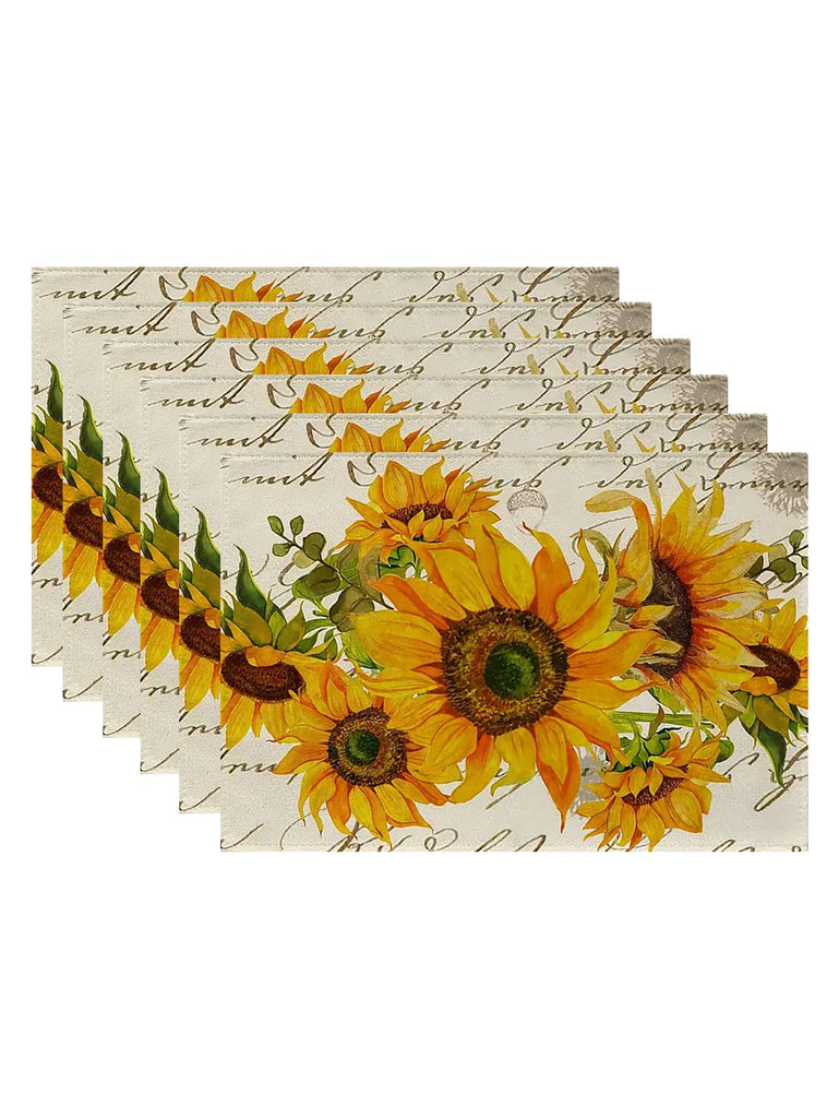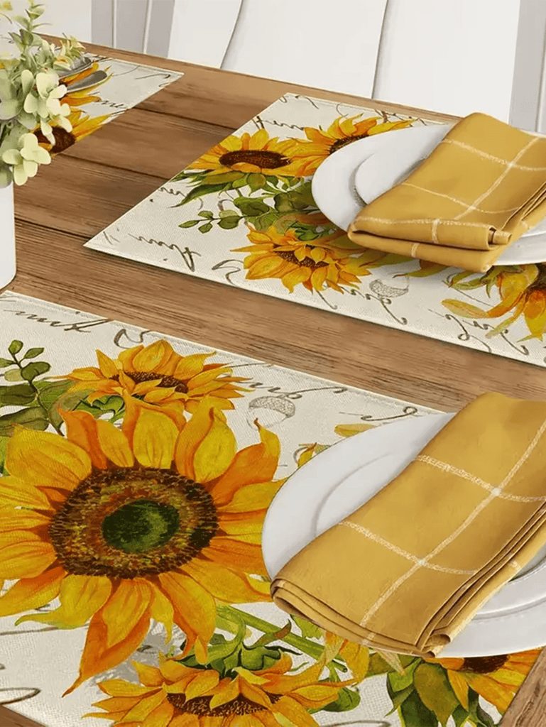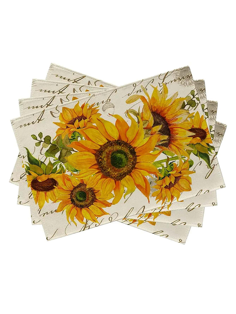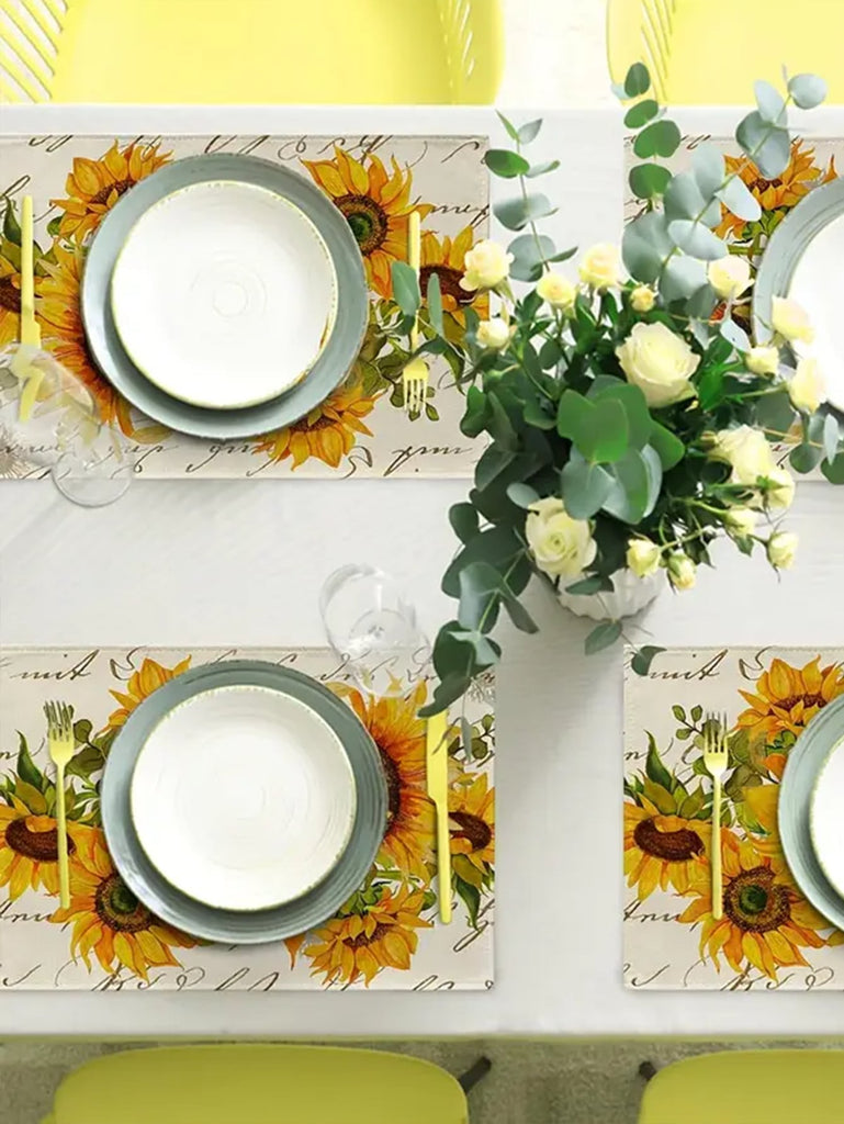 4pcs/6pcs/Set Sunflower & Eucalyptus Leaf Design Place Mats, Rustic Style Home Kitchen Table Decor