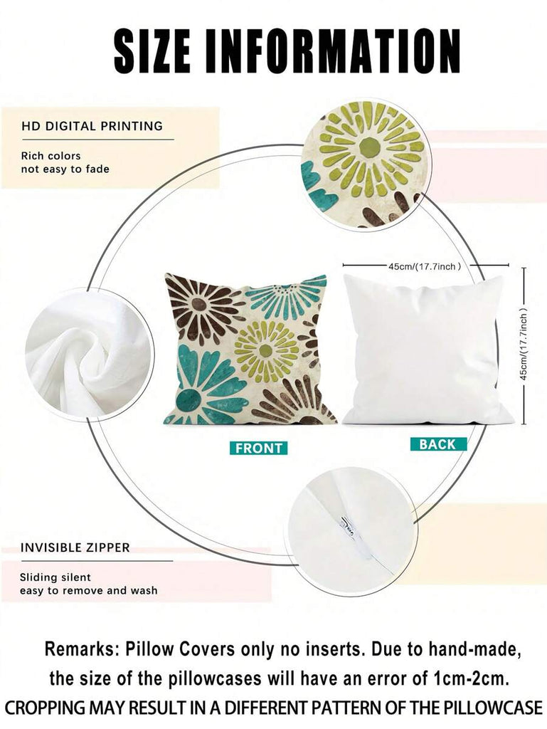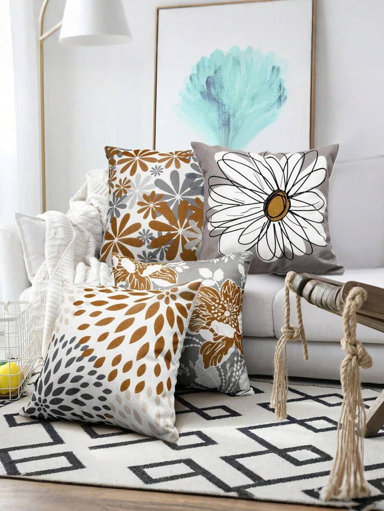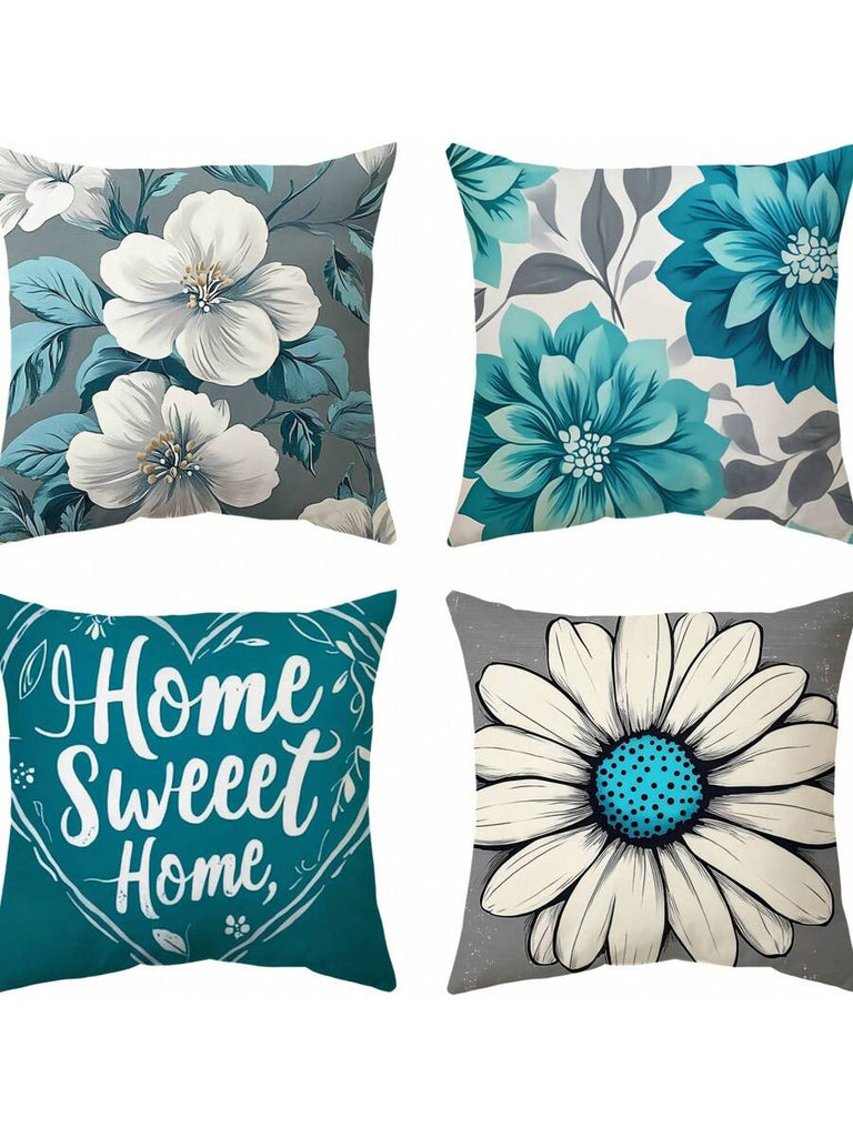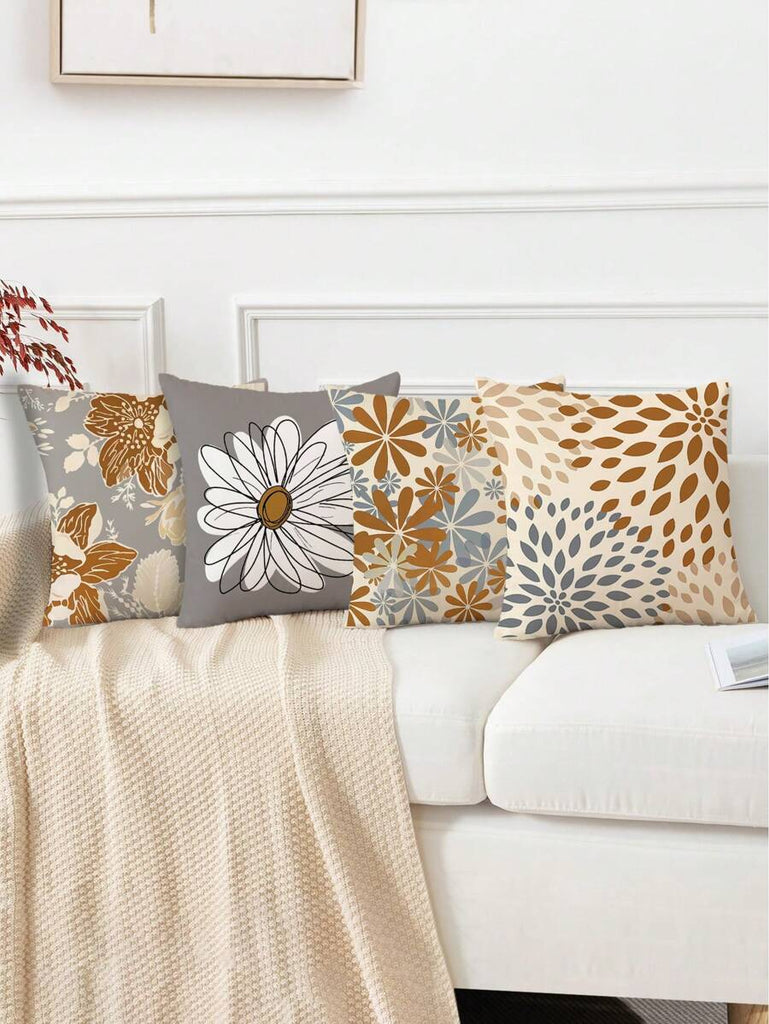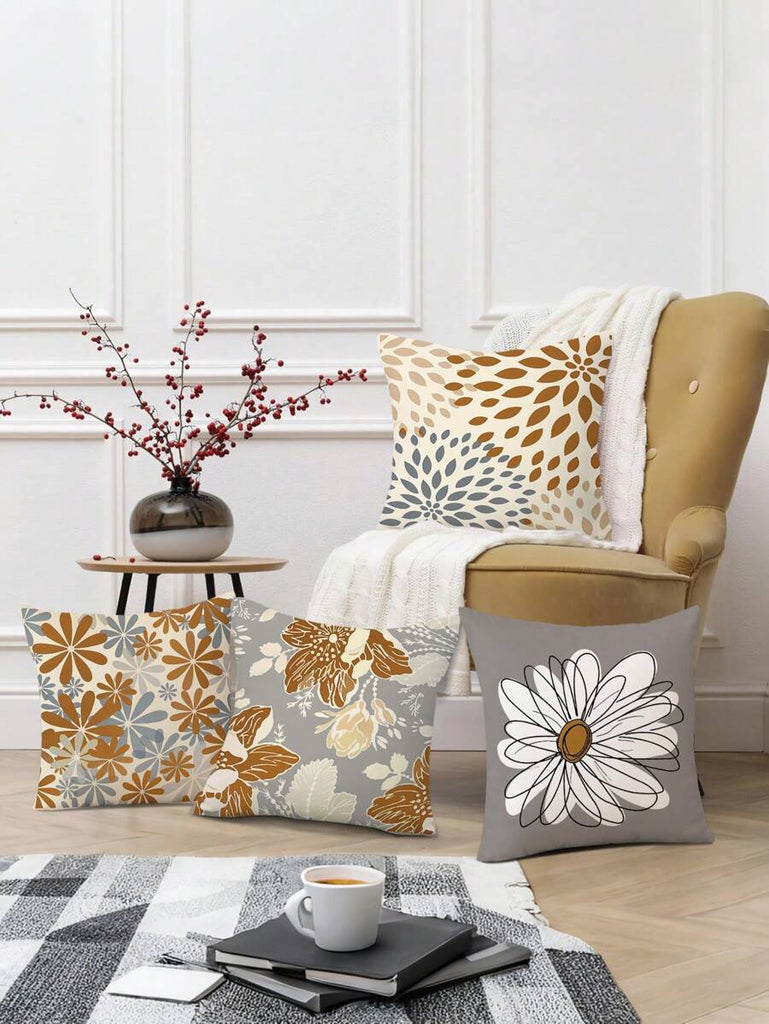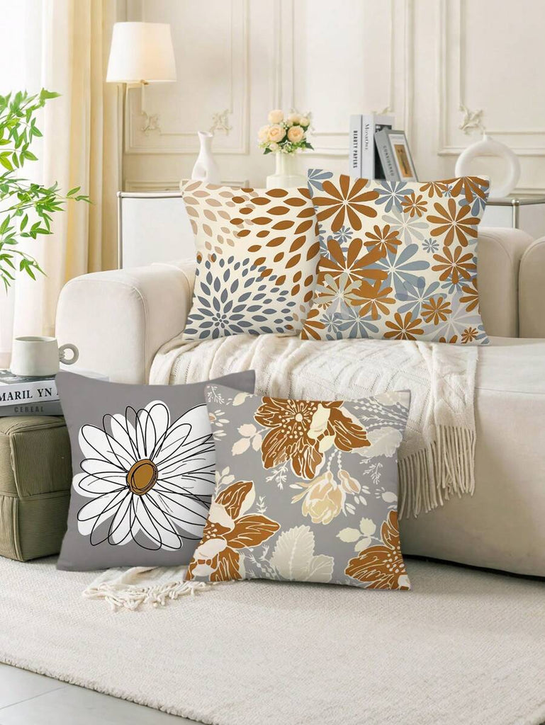 4pcs Geometric Floral Print Pillow Case, Soft Velvet Hidden Zipper Cushion Cover, Suitable For All Seasons, Without Pillow Insert, Gift For Home, Bedroom, Living Room