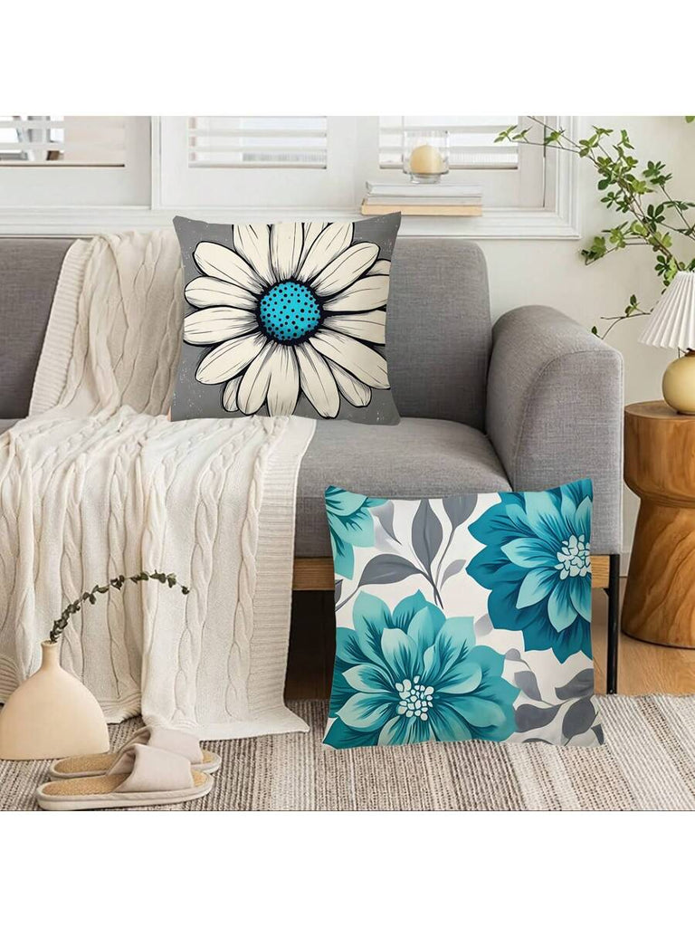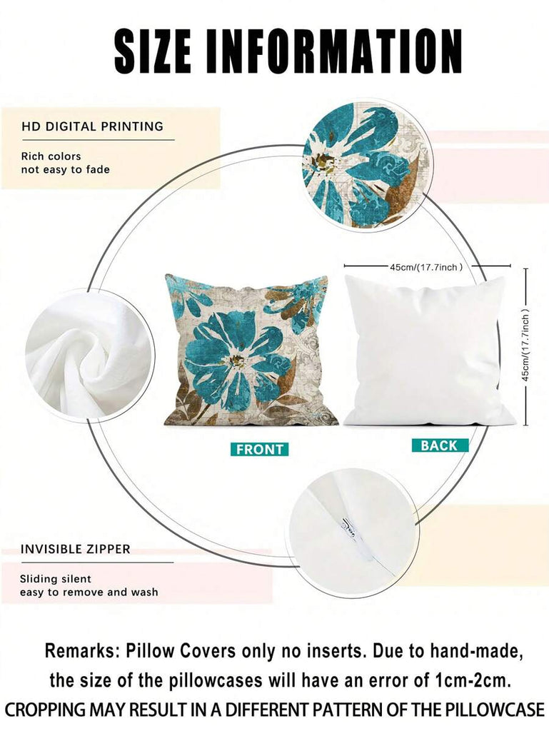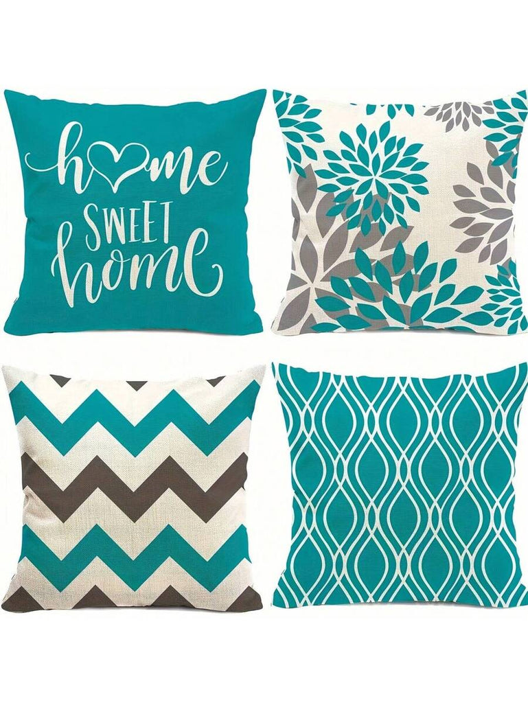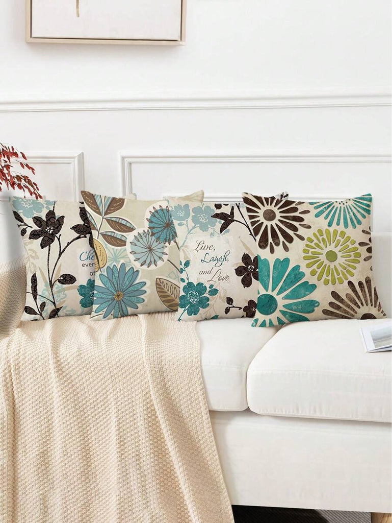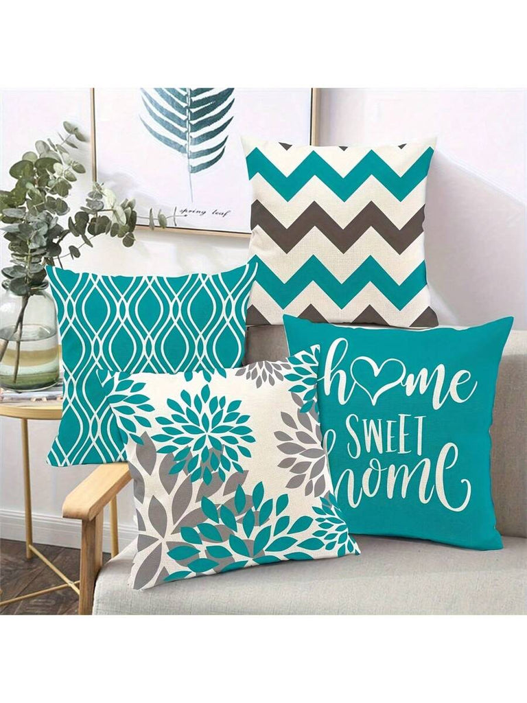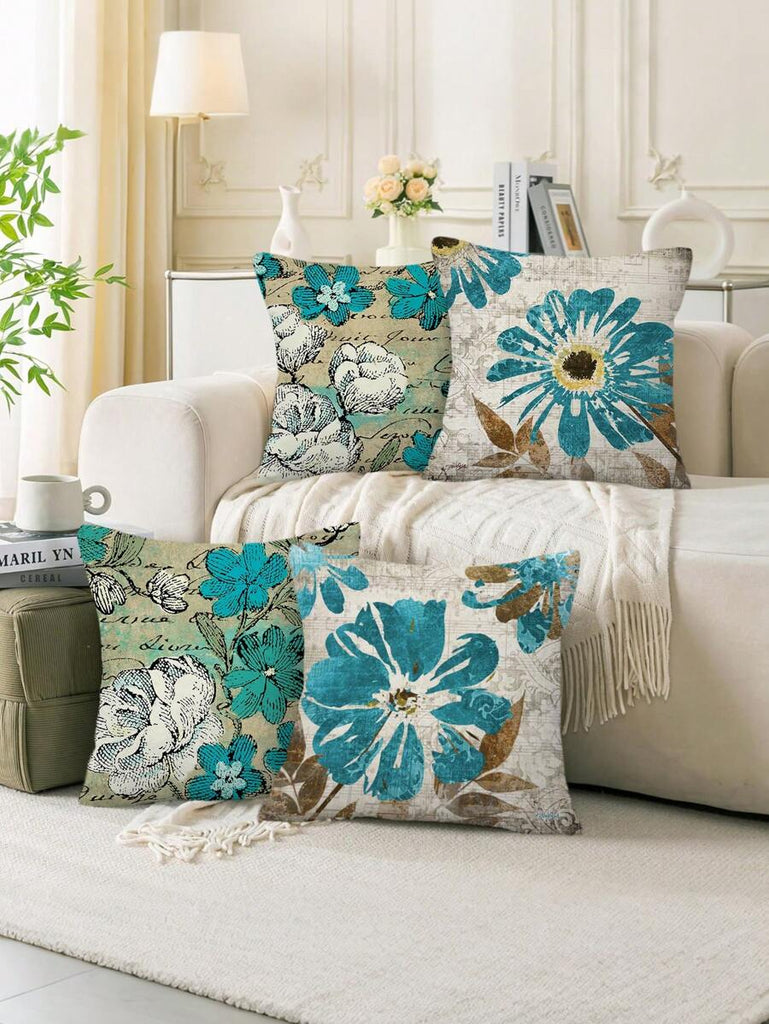 4pcs Geometric Floral Print Pillow Case, Soft Velvet Hidden Zipper Cushion Cover, Suitable For All Seasons, Without Pillow Insert, Gift For Home, Bedroom, Living Room
